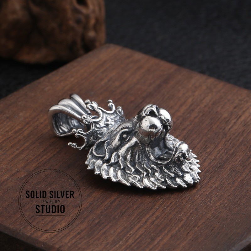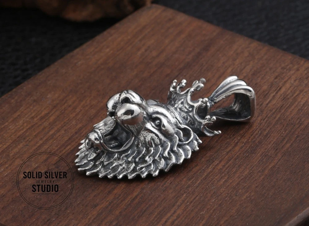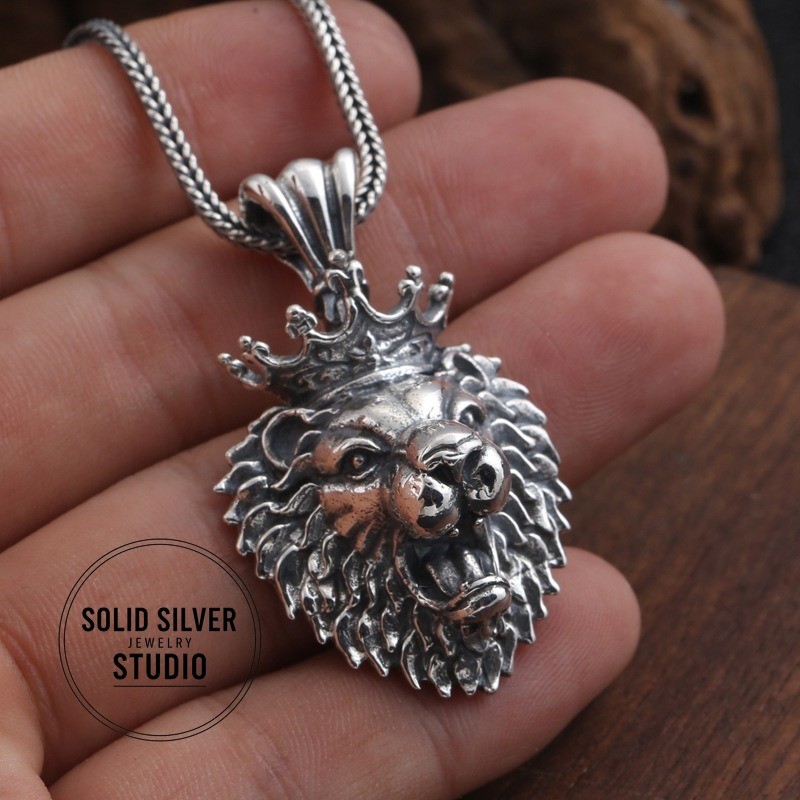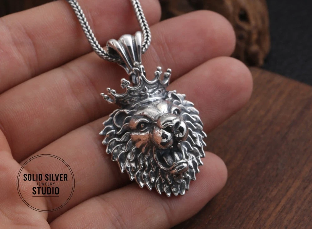 Sterling Silver Crowned Lion King Head Pendant Rule your domain with this incredible, heavyweight crowned lion pendant. A bold statement of power, courage, and royalty, masterfully crafted in solid silver. This is a truly substantia l piece of silver artistry. Forged from solid 925 sterling silver, this pendant features a fierce, roaring lion's head, complete with a full, intricate mane and a royal crown. The entire piece has a deep, oxidized finish that gives it an impressive, antiqued look and makes every single detail of the lion's fur and expression leap out. This is a pendant designed to be noticed. Key Features & Specifications ✔️ Solid 925 Sterling Silver: A genuine, stamped S925 piece built for a lifetime of wear. ✔️ King of the Jungle Design: A powerful, roaring lion head wearing a royal crown. ✔️ Extremely Heavy & Substantial: Weighs an impressive 15.9 grams (approx. 0.56 oz). ✔️ Large Statement Size: Measures approximately 1.38 inches tall by 1.1 inches wide (35mm x 28mm). ✔️ Extra-Large Bail: The integrated 7mm bail opening is designed to fit heavy or thick chains, like Franco or rope chains. ✔️ Incredible Detail: From the individual strands of the mane to the roaring expression, the craftsmanship is top-notch. Condition Brand New, Excellent Condition. This pendant is new and has never been worn. The darker, antiqued finish is an intentional part of the vintage "Thai Silver" aesthetic, designed to enhance the rich details of the sculpture. What's Included (1) Solid 925 Sterling Silver Crowned Lion Head Pendant Please Note: The chain shown in photos is for demonstration purposes only and is NOT included. FREE SHIPPING! Your item will be packed with care and shipped out promptly. 30-DAY HASSLE-FREE RETURNS Buy with confidence! If you're not 100% satisfied, simply send it back for a full refund. The perfect gift for a Leo, a leader, or anyone who embodies the spirit of the lion. Click 'Buy It Now' to claim this masterpiece!