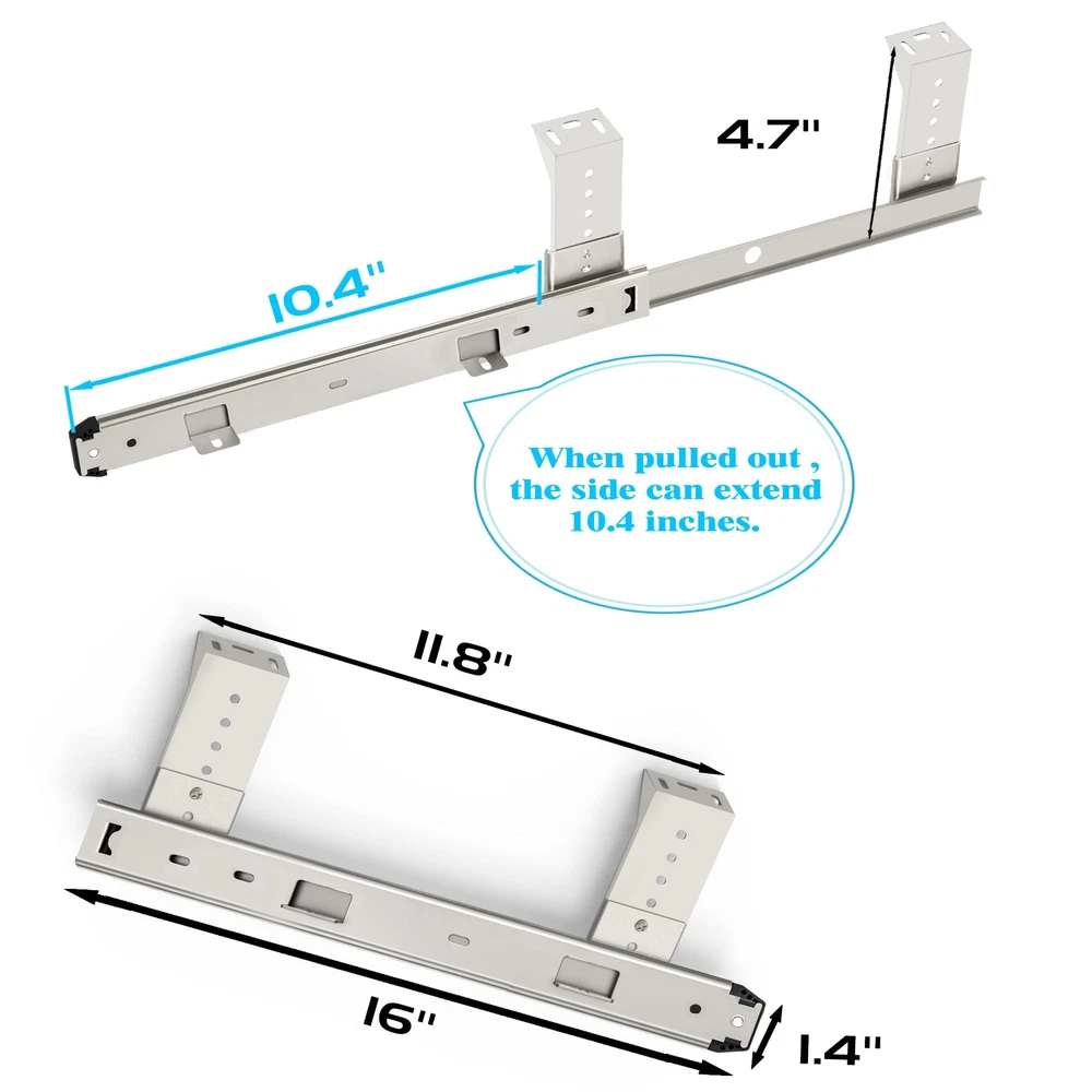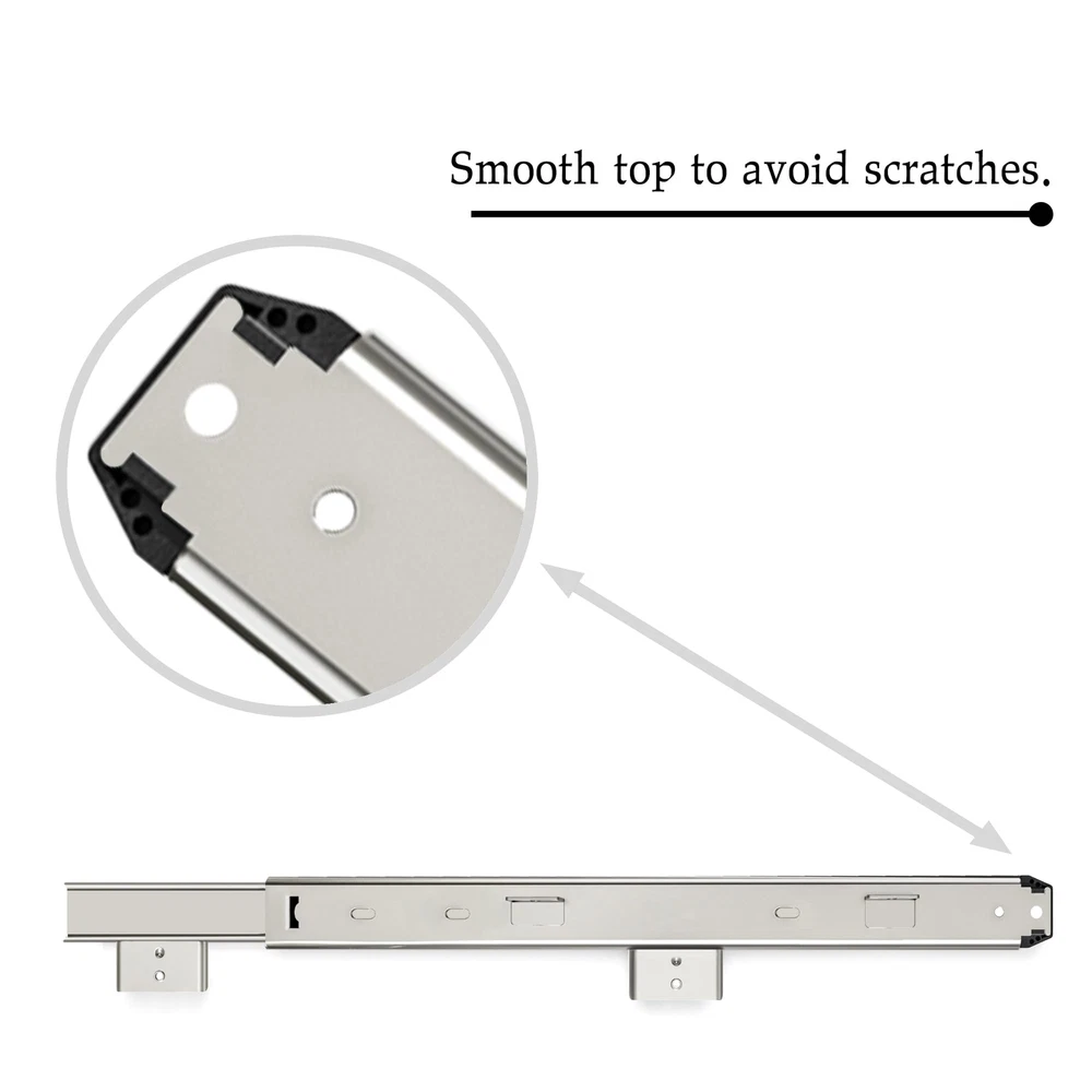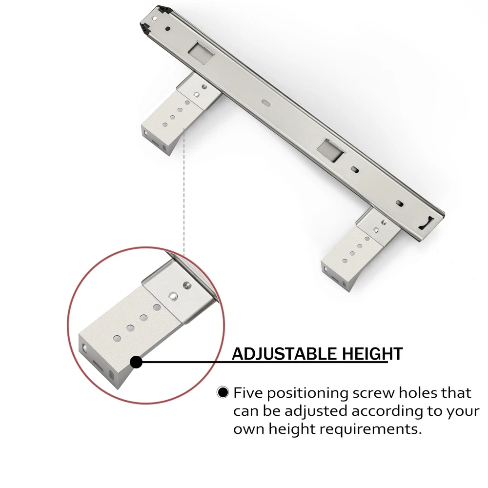 Heavy Duty Thickness Steel Construction Ball Bearing Slides is an ideal choice for mounting on your office desk, cabinet, furniture hardware , kitchen drawer, keyboard drawer,tools organizer accessories,dresser drawer tracks , fixture and more usages. Strict supervision of quality: Our manufacturing plant has strict quality control methods to ensure our products meet the highest standards. Our mission is to always provide the best service to our customers with industry’s leading prices. If you have any question, please do not hesitate to us and we will spare no effort to resolve your problem. Specification: Material: Steel Color: Sliver Weight: 2.42 Capacity: loads up to 40lbs. Package include: Keyboard slides : 1 pair Adjustable hight bracket: 4 Small screws : 4 Wood screws : 12 1. VARIOUS APPLICATION: 16 inches slides can be applied to your office desk, cabinet, furniture hardware , kitchen drawer, keyboard drawer,tools organizer accessories,dresser drawer tracks , fixture and more usages. 2.HIGH QUALITY AND STURDY MATERIAL : Strict structure, bold thick material,Made of sturdy 1.5mm/0.059inch heavy duty cold rolled steel construction with black coat finish which is more powerful than ordinary slides. 3.HUMANIZED DETAIL DESIGN : Equipped with steel ball bearings and cushions to ensure smooth sliding of the slides, reduce noise and achieve quiet performance.Moreover, 6 adjustable holes heights to meet different person's height requirements. 4.EASILY TO INSTALL: It takes only a few minutes to install the slides. Max Capacity: up to 40 lbs. Package includes: mounting brackets X 4, small screws X 4, wood screws X 12. 5.Our mission is to always provide the best service to our customers with industry’s leading prices. If you have any question, please do not hesitate to us and we will spare no effort to resolve your problem.