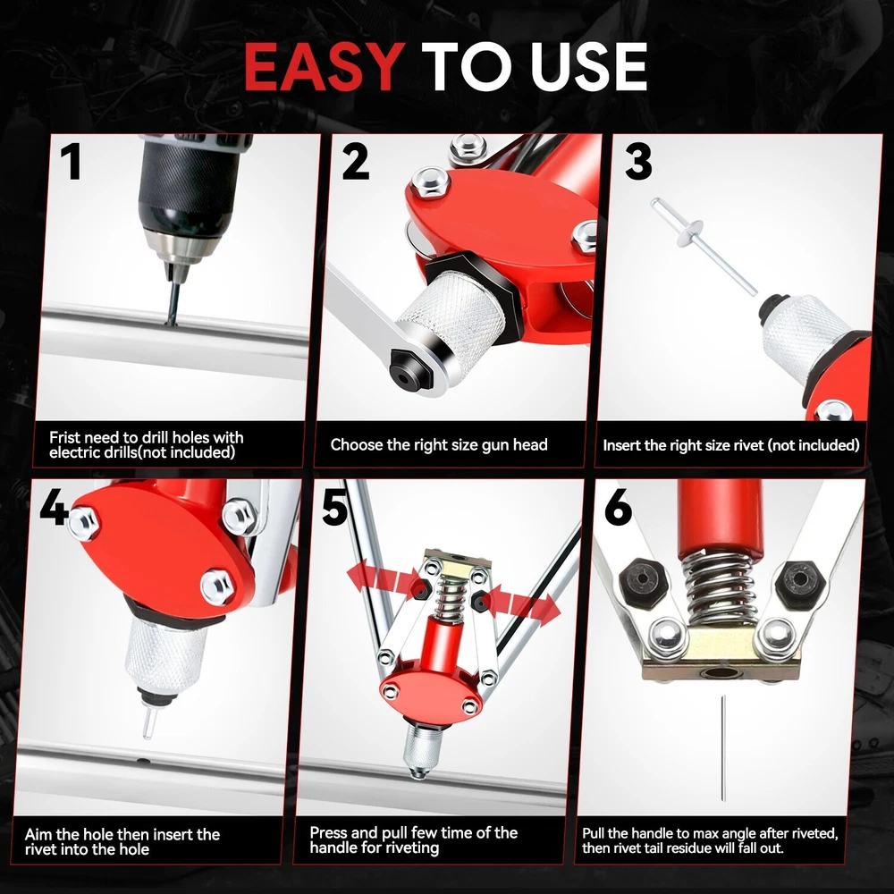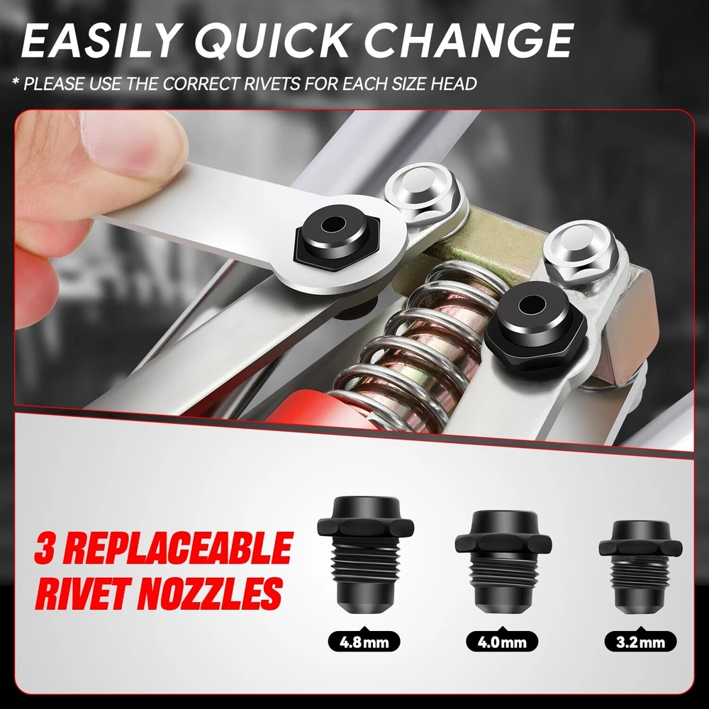 Welcome to Speed Daddy Store Home About Us Feedback Add To Favorites New Arrivals Ending Soon Contact Us Heavy Duty 17" Rivet Gun Wrench Tool Kit Set for Riveting Decoration Metal Plate Product Description Rivet Nut Tool Kit is designed to offer a convenient and efficient solution for fastening applications across various industries. This kit contains everything you need to install rivet nuts quickly and securely. Suitable for use in various industries, including automotive, aerospace, manufacturing, construction, and more. It's an ideal choice for professionals and DIY enthusiasts alike. Specifics and Features : Made of High-Strength Metal Hand Riveter Designed With Padded Rubber Grips Meets your work requirements: Includes 3 Guide Nozzle(3.2 mm 1/8in, 4 mm 5/32in, 4.8 mm 3/16in); 1 X Wrench; 1 X Rivet Gun Easy Storage and Management: We Have Customized a Storage Box For Your Convenience For mounting various types of fasteners: Such as Body Modification, Furniture Decoration, Riveting Projects, Bicycle Accessories Product Dimensions:17 x 4.8 x 1.5 inches Includes : 17"Hand Rivet Set 3 Guide Nozzle 1 x Wrench 1 x Rivet Gun Notes : 100% Brand New Professional Installation is Highly Recommended Installation Instruction is NOT Included Shipping Payment Returns Terms & Conditions Feedback Contact Us DOMESTIC LOWER 48 US STATES: FREE SALES TAX: CA ONLY VERY IMPORTANT: Double check shipping address. We are not responsible for incorrect or undeliverable addresses. Please use Shipping & Payments tab on top of page for shipping details for your location. Shipping to PR, HI, AK and PO Box addresses will be charged the same as shipping to Canada. GU, VI, SAIPAN will be charged the same as international shipping rate. For Canada shipping please select the lowest price. We do not offer expedited shipping. US Territories such as GU, VI, SAIPAN will be charged the same as CANADA shipping rate. Transaction will be held until a full shipping amount received. Some of the packages cannot be delivered to a PO Box. Customer is responsible to ensure PO Box address given is deliverable by the shipping company. Package will be held until a valid physical address is provided. Customer assumes shipping charges incurred in shipping to undeliverable address. International buyers are responsible for all customs duties, taxes, and other applicable fees incurred by the country's customs/border regulations. Please contact customs for more information. We ship 98% of all orders the same or next business day after payment received/cleared. Please understand that once orders are shipped, we cannot control the transit times thereafter. Most orders will ship via USPS First Class/Priority Mail or FedEx/UPS or the best suitable carrier for the specific size of the product. We are not responsible for any changes to address after item has been shipped. Item will be shipped out within 24 hours after payment cleared, except for weekends and holidays. PayPal e-check takes 3-7 business days to be processed. We will not ship until an e-check has been cleared. 30 Days Free Returns, please notify us within 30 days after you've received your order. Please email us or call us to obtain a RMA (Return Merchandise Authorization) number from us, and have the RMA number written on the return package. Items to be returned must be in resalable condition. All returns are for refund ONLY. No exchange accepted. For emissions related items, please check with your local jurisdiction for emission specific requirements before purchasing. All items do not come with installation instruction unless otherwise specified. If item is questionable, please consult your local professional/mechanic before making purchase. Shipping DOMESTIC LOWER 48 US STATES: FREE SALES TAX: CA ONLY VERY IMPORTANT: Double check shipping address. We are not responsible for incorrect or undeliverable addresses. Please use Shipping & Payments tab on top of page for shipping details for your location. Shipping to PR, HI, AK and PO Box addresses will be charged the same as shipping to Canada. GU, VI, SAIPAN will be charged the same as international shipping rate. For Canada shipping please select the lowest price. We do not offer expedited shipping. US Territories such as GU, VI, SAIPAN will be charged the same as CANADA shipping rate. Transaction will be held until a full shipping amount received. Some of the packages cannot be delivered to a PO Box. Customer is responsible to ensure PO Box address given is deliverable by the shipping company. Package will be held until a valid physical address is provided. Customer assumes shipping charges incurred in shipping to undeliverable address. International buyers are responsible for all customs duties, taxes, and other applicable fees incurred by the country's customs/border regulations. Please contact customs for more information. We ship 98% of all orders the same or next business day after payment received/cleared. Please understand that once orders are shipped, we cannot control the transit times thereafter. Most orders will ship via USPS First Class/Priority Mail or FedEx/UPS or the best suitable carrier for the specific size of the product. We are not responsible for any changes to address after item has been shipped. Payment Item will be shipped out within 24 hours after payment cleared, except for weekends and holidays. PayPal e-check takes 3-7 business days to be processed. We will not ship until an e-check has been cleared. Returns 30 Days money back, please notify us within 30 days after you've received your purchased item. All return requests must be submitted through your eBay account. You have to obtain a RMA (Return Merchandise Authorization) number from us, and have the RMA number written on the return package. Buyers pay for return shipping fee. Items to be returned must be in resalable condition. All returns are for refund ONLY. No exchange accepted. Returns for refund are subject to a 20% restocking fee. Terms & Condit