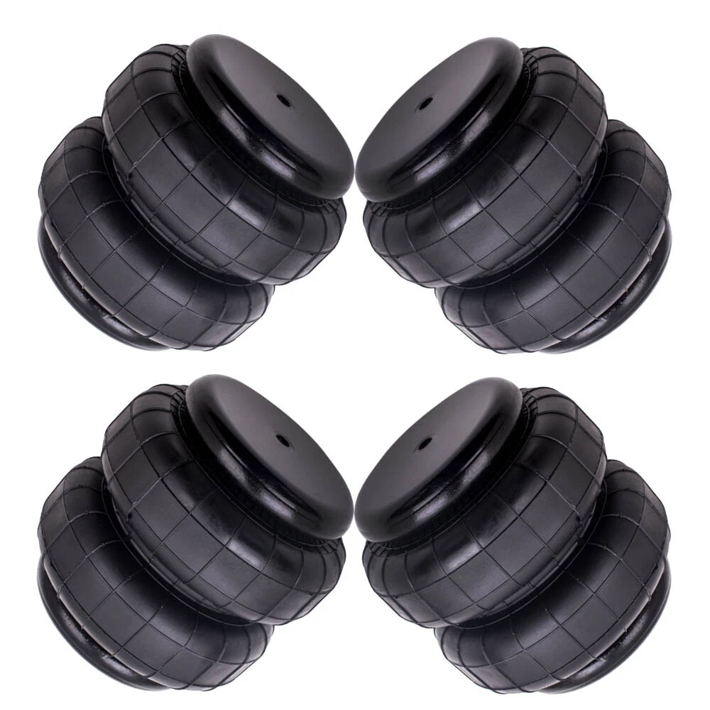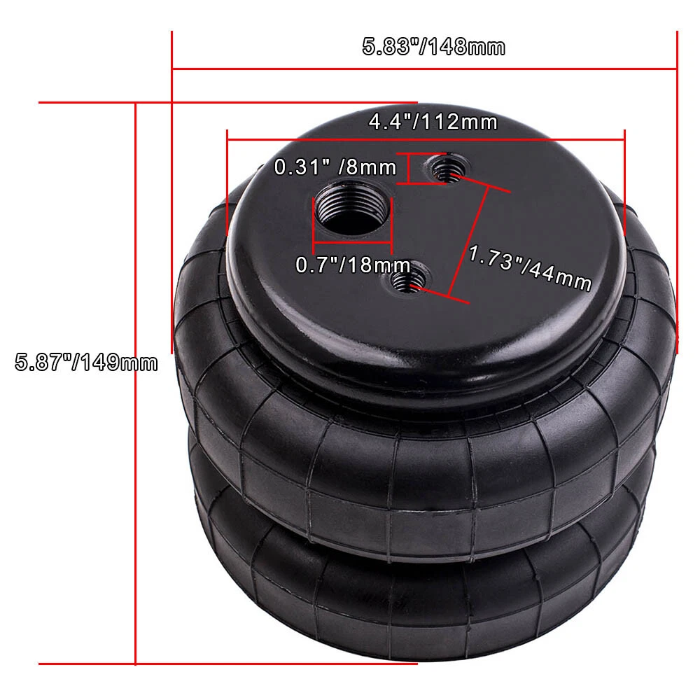 Introduction: Car air suspension spring bag is one of the most popular suspension kits available, it delivers some of performance and convenience for all types of vehicles. Air bag suspension kits raise the vehicle high enough to compensate for any extra weight. This helps to keep the vehicle level while towing and hauling and prevents rear sagging, bottoming out, and excessive pressure on your tires. We provide a full assortment of air suspension spring bags for all your suspension need! Standard 2500 lb Air Spring Bags Part 1/2"npt Single Port Air Shock Suspension Fit for: Universal Air Suspension Bags for Ford50/F250, for GMC Sierra, for Chevrolet Silverado, for Dodge Ram 1500 2500 3500, etc Please confirm whether the air spring bag parameters below (especially height, diameter, bolt specifications) are consistent with ours before purchasing. (Fits for most brand trucks) Specifications: Min height: 65mm Max height: 175mm Working stroke: 110mm Loading. at 3.0bar: 2.88KN Loading. at 7.0bar: 7.25KN Single air port size: 1/2NPT Install hole size:3/8-16UNC Top plate diameter:113mm Air spring bag body diameter:145mm Air spring bag capacity: 2500LBS Condition: Brand New Quantity: 4 pieces in one set. (for rear / front left or right) Features: - Features with heavy duty double convoluted crimped design which allows safe and comfortable load capacity up to 2500 pounds. - Hold up to 350 PSI. - Test more than 3 million times. - Air Tightiness testing. - Gives the driver more control of ride. - Built to strict quality control standards. - Designed for Comfort Suspension. Notice - These air suspension bags are aftermarket ones. They will replace the original air spring bags. - Please double check the picture and drawing carefully before purchasing to ensure you will get the right struts. Code: MXR02FXSY Notice:California Prop 65 Warning