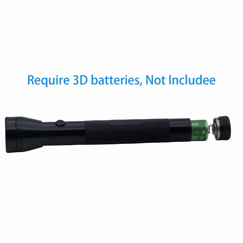 Single Mode:Just only single mode operation,easy to use。Simply turn it on and enjoy a powerful beam of light. No complicated settings or modes required. BRIGHT:Our heavy-duty 3 D LED flashlight provides an impressive 500 lumens of bright light.Whether you are outdoors or experiencing a power outage at home, this flashlight will be your reliable companion. Long Endurance:3 PCS high quality D cell batteries can providing Max 10 hours of lighting time.(Battery not included) Sturdy: Aluminum alloy case is very sturdy, drop-proof and waterproof TRUSTWORTHY: This heavy duty flashlight is built to last with our commitment to quality. We offer a satisfaction to ensure that you can count on the performance and durability of this important tool.