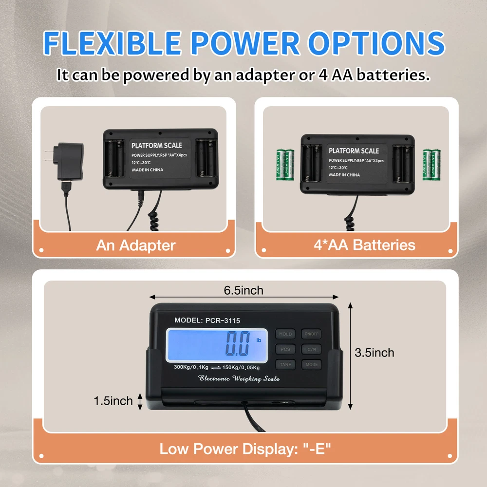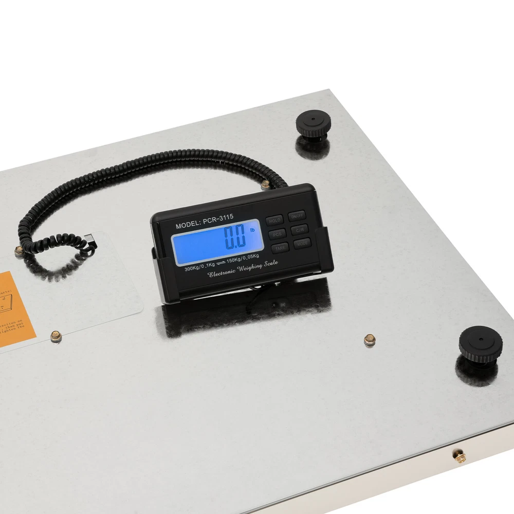 Heavy Duty 300kg Veterinary Industrial Freight Scale Livestock Scale 103*53cm Description Description This animal digital scale is an accurate weighing tool for pets, which can help owners grasp the weight change of their pets, adjust their diet and exercise plan in time, and keep their pets in a healthy state. It offers the convenience of switching between three weighing units to suit your needs. In addition, it is suitable for weighing larger animals within 660lbs, and also can be applied in food, agriculture, shipping, etc. Key Feature Two Weighing Modes: You can choose the weighing ranges at will, including 0-150kg(0.05kg Accuracy) or 0-300kg(0.1kg Accuracy) for weighing different items. Different weighing modes are designed for various animals and provide higher accuracy for you. Strong Weighing Capacity: It measures 40.5*20.6*1.7inch, and can weigh animals with 660lbs at maximum to fulfill your needs to weigh large domestic and farm animals. You can have an accurate and clear view of your pet's weight. Durable and Sturdy: The countertop is made of 201 stainless steel with a thickness of 1.7inch and one high-quality PP handle that is not easy to deform after long-term use. Easy to Clean: The smooth and flat surface makes it simple to clean. When it is dirty, you can wipe off the stain with a wet towel directly. Flexible Power Options: The animal scale can be powered by an adapter for continuous weighing or by 4 AA batteries for easy use anywhere. You can choose any one to meet your specific needs. User-friendly Design: An easy-to-read LCD screen of the monitor is enhanced by a clear backlight that ensures effortless visibility even in low-light conditions. It also offers the convenience of switching between three weighing units(kg/oz/lb/lb:oz) to suit your needs. Mind-saving Use: The overload protection and low battery indication make this animal digital scale more reliable to use. Dual Installation: The LCD display can be placed on the desktop because of a support or hung on the wall because of two holes on the back for flexible readings. Details Scale Feet: The four support feet are made of rubber and alloy material to keep stability on different surfaces. Portable Handle: The PP material handle on the scale side helps you move it for weighing wherever you want. Protective Film: The protective film on the surface avoids transportation damage. Please remove it before using it. Black Monitor: It has an ABS material shell and six different function keys to suit your various weighing needs. Application It is suitable for domestic and farm animals and also can be used in pet stores, pet hospitals, postal services, shipping, warehouses, etc. as long as the items weigh is more than 0.88lbs and less than 660lbs. Monitor Function Keys ON/OFF: Turn on or turn off the scale. MODE: Select units of weighing(kg/lb/oz/lb:oz). TARE: Subtract the weight of vessel or container, and restore the readout to zero. HOLD: Keep the weighing value. C/R: Switch the weighing capacities. PCS: Count the quantity of the items. How to Use Tear off the protective film. Remove the screws of the back cover. Take out all accessories. Install 4 scale feet. Plug in the power or install 4pcs AA batteries. Turn on the power switch and the LCD screen will automatically display "0.00". Place pet or other items on the scale and wait for the display to stop flashing to get weight data. Specification Color: Silver Style: Simple and Modern Material: 201 Stainless Steel, PP, ABS, Rubber, Alloy Voltage: 110-240V Plug: US Standard Power Source: Power Adapter or 4pcs AA Batteries Assembly Required: Yes Max Weighing Capacity: 300kg/660lbs Min Weighing Capacity: 0.4kg/0.88lbs Monitor Mounting Type: Freestanding; Wall Mounted Weighing Range: 0-150kg/0-330lbs(0.05kg/0.11lbs Accuracy), 0-300kg/0-660lbs(0.1kg/0.22lbs Accuracy) Weighing Units: kg/oz/lb/lb:oz Monitor Screen Type: LCD Gross Weight: 14.5kg/32lbs Net Weight: 11.75kg/26lbs Product Size: 103*52.5*4.5cm/40.5*20.6*1.7inch Monitor Size: 16.5*9*4cm/ 6.5*3.5*1.5inch Package Size: 114*66*8cm/44.8*26*3.1inch Package Included 1*Animal Digital Scale 1*Black LCD Monitor 1*Power Adaptor 4*AA Batteries 4*Scale Feet 1*English Manual All Accessories for Assembly Note Open the cover on the back of the product and you will see all accessories. Please allow the slight color difference caused by the shooting light and 1-3cm error due to manual measurement, and make sure you do not mind before you order. Payment Delivery details Terms of sales About us Contact us Payment We accept ebay payment 。 Fees such as import duties, taxes are not included in the item price or shipping costs. These charges are the buyer's responsibility. Delivery details Shipping: 2-9 working days to: USA Terms of sales We maintain high standards of excellence and strive for hundred percent customer satisfaction. Feedback is very important to us. We hope that you contact us immediately before you give neutral or negative feedback, so that we can address your concerns. It is impossible to address issues if we do not know about them! About us Your satis faction is our ultimate goal. We work hard to earn your trust and future business. Our certified technicians have tested each item before shipping. The unit comes with 1 year limited warranty on all manufacturing defects. a) If you receive a defective item, you may return it or ask for a discount. Please contact us within 14 days after you receive the package. b) What you returned must be intact and in its original packaging as re? u. Customer is responsible for shipping costs of the returned item. c) We will cover the cost of shipping back t with the shipping rate indicated in the registration page. We will send you a new unit or refund the full payment you paid. Thank you. Contact us Business Hour Business Hour: Monday To Friday: 8:30 AM to 5:00 PM (Beijing China time) Due to time zones, our reply to your questions may not be immediately. But within above working time, w