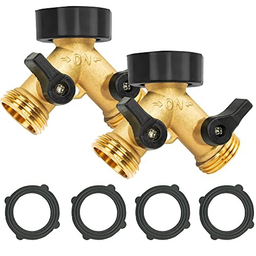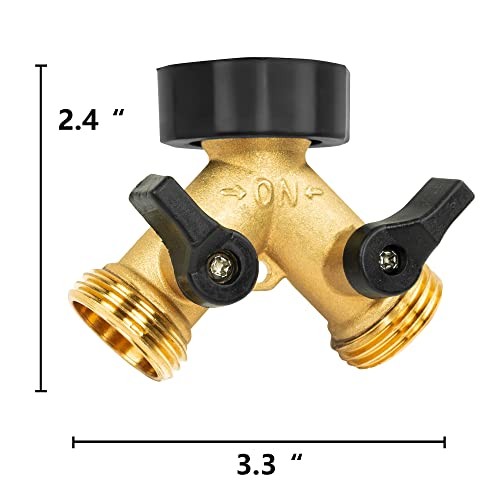 Return Policy Fast Delivery Trusted seller 2 Pack Brass Garden Hose Splitter 2 Way, Hose Y Splitter 3/4 Inch Heavy Duty Brass Hose Connector Tap Splitter, Hose Spigot Adapter 2 Valves with Rubber Washers Product Description Standards Dimensions: Our water hose splitter fits for most 3/4 inch US standard faucet and garden hose, premium thread design for easy connection. 2 Way Hose Outlets : Garden hose splitter connects least to two hoses to one faucet and very convenient for you to control the work in different places at the same time. Fit for all standard 3/4 diameter connection. High Quality Brass Material: The brass hose splitter covered with TPR rubber makes it more touchable. Made of 100% solid brass body with ABS shut-off switch, solid and durable, corrosion proof and has a long service time. Save Your Time and Your Energy: Converts a single water outlet into 2 ways, very convenient for you to control the work in different places at the same time. Split 1 Spigot Into 2 Outlets: Run 2 hoses from the same spigot with 2 way heavy duty hose splitter, and you can even connect more hoses to your backyard sink, drip irrigation, sprinkler timer system, hose end tap timer with more faucet splitter. Made for home, garden and backyard use. Shipping Returns Payment Shipping Shipping is FREE to all addresses other than APO/PO boxes in the lower 48 states. All our stock ships from US-based warehouses. Shipped via USPS or UPS (depending on location and package weight) Unless stated otherwise, all orders will ship within 24-72 hours of your payment being processed. Check our feedback to see the great reviews of FAST shipping we offer. Returns Seller does not accept returns Payment We currently accept payment via eBay managed payments only. Once payment is cleared, we will dispatch your shipment within 1-3 business days. Please refer to the "Shipping" tab for more information regarding shipping speed to your destination.
