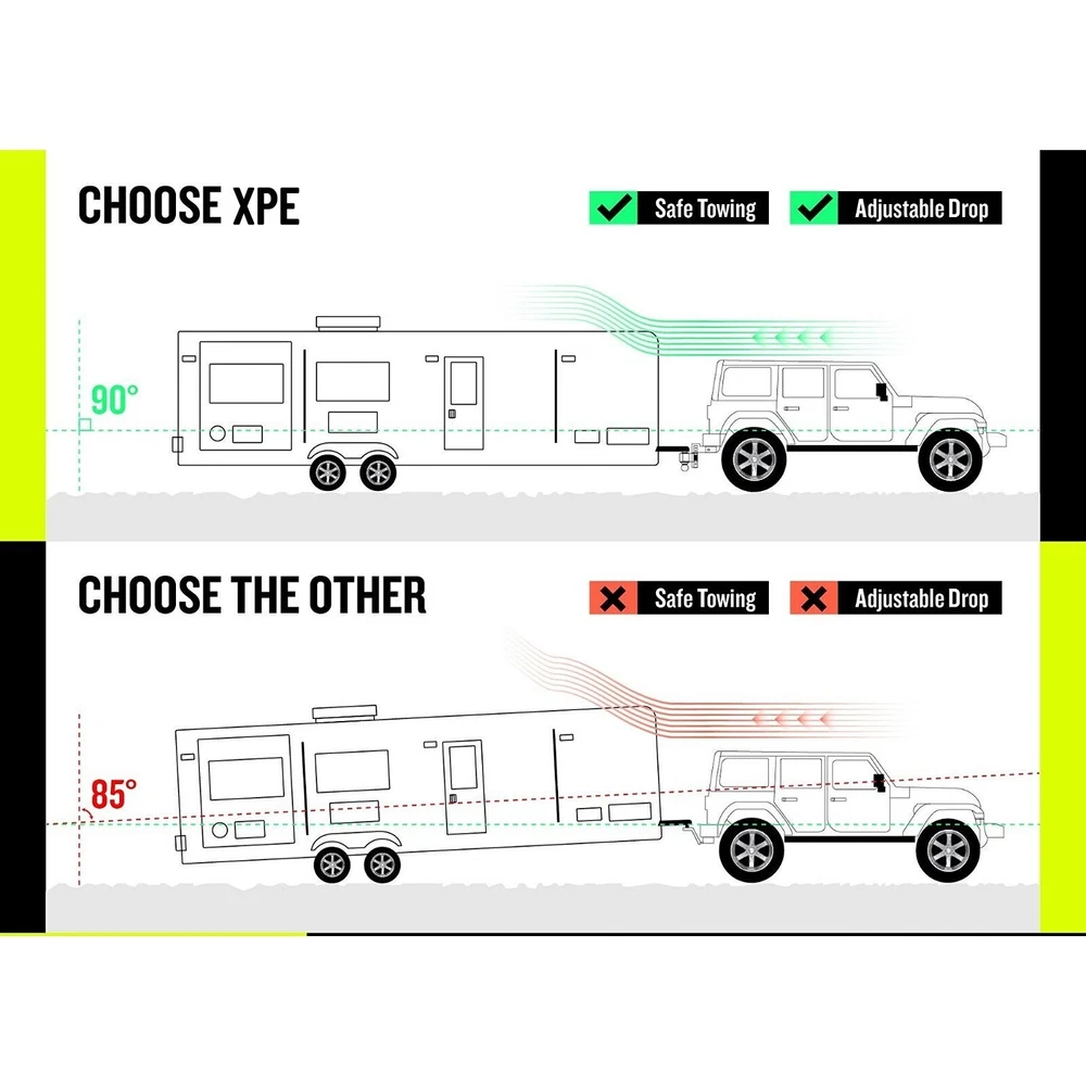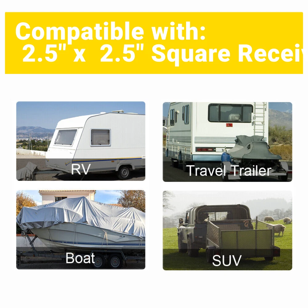 Item Description Material: Aluminum Ball Size: 2" and 2-5/16" Adjustable Height: 6" Drop Distance (Adjusts in 1" Increments) Loading capacity: 2" Ball-8,000 lbs; 2-5/16" Ball -18,500 lbs Pin Hole Diameter: 5/8" Compatible with: Vehicles with 2.5 " Hitch Mounts Package Includes:Adjustable Steel Tailer Shank, Hitch Ball ( 2" And 2-5/16"), 2 Anti-theft Pin Locks With 2 Keys