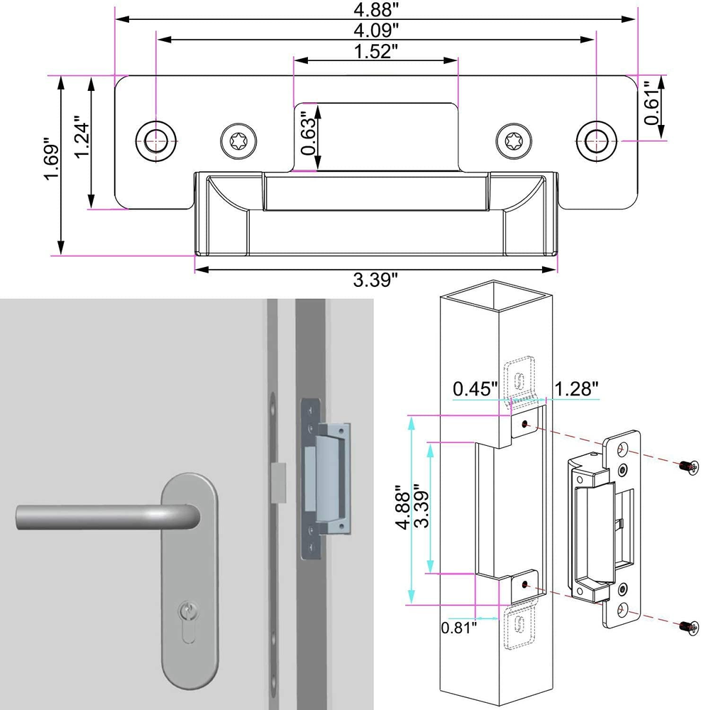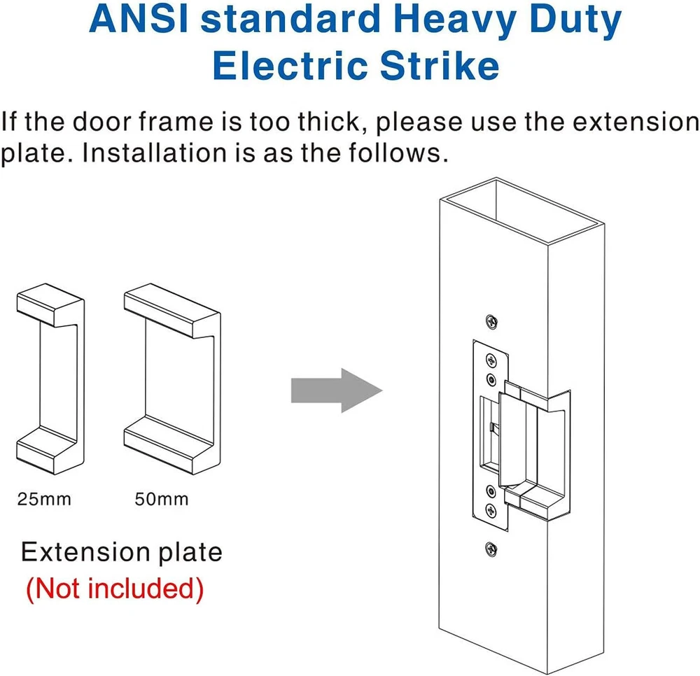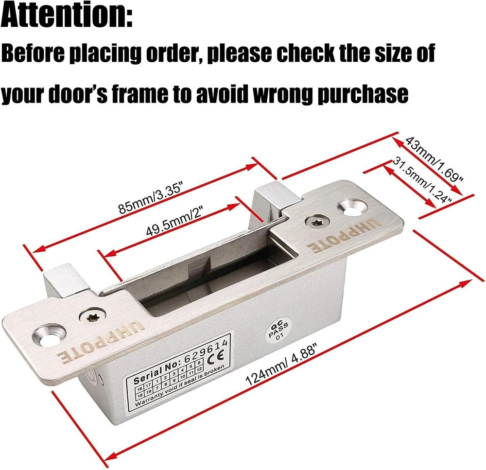 Store New Arrivals Add to Favorite View Feedback Contact ANSI Standard Heavy Duty Stainless Steel Finish Electric Strike Door Lock for Access Control Cylindrical Locksets - Input Voltage 24VDC Description Item model number UT0511-24V-138 Style Modern Power Source dc Country of Origin China Batteries Included? No Number of Pieces 1 Batteries Required? No Finish Painted Material Stainless Steel,Metal,Steel Controller Type Ring Finish Type Painted Item Package Quantity 1 Item dimensions L x W x H 4.88 x 1.72 x 1.38 inches Control Method App Item Weight 1.01 pounds Lock Type Electric Strike Lock Special Features Heavy Duty Special Feature Heavy Duty Part Number UT0511-24V-138 Color Silver Is Discontinued By Manufacturer No Shape Rectangular Voltage 24 Volts Recommended Uses For Product access control Included Components Electric Strike Lock Product Dimensions 4.88 x 1.72 x 1.38 inches ✅Field-selectable for fail-safe or fail-secure operation ✅2,200-lb (1000kg) Jaw strength, Tested to 500,000 cycles ✅Complete mounting hardware included, Screw terminals for ease of wiring ✅This Eelectric Door Strike can be used to convert cylindrical lock sets into an electronic access controlled locking system ✅Attention: Before placing order, please check the size of door’s frame to avoid wrong purchase Product Description Advantage: Converts cylindrical locusts into an electronic access-controlled locking system Field-selectable for fail-safe or fail-secure operation on the back Can be used with virtually any cylindrical door locking system Reversible non-handed design fits either right hand or left-handed doors Shallow design for use with most metal doors Powered by a solenoid, not a buzzer coil Stainless-steel keeper for strength and long life Door indoor use only Special design, easy to adjust the distance of the lock-tongue Testing to 1000000 cycles High-temperature painted, durable and beautiful article Designed for metal frame. Drill a hole, then install it directly. Attention: Strike lock needs to work with cylindrical lockset which should buy separately. Before placing order, please check the size of door’s frame to avoid wrong purchase. In order to protect the lock, please connect the diode during installation. This strike is not weatherproof and should only be installed indoors. Package include: 1 x Electric Strike Lock 1 x Install Kit 2 x Mounting Tabs 1 x Diode 1 x Manual Specifications: Input Voltage: 24VDC Current: 160mA Faceplate Dimensions (LxW): 4-7/8"x1-15/64" (124x31.5mm) Case Dimensions: 1-7/32"x3-11/32"x1-17/64" deep (31x85x32mm deep) Strike Opening: 11/16"x1-61/64"x3/4" deep (17.5x49.5x19mm deep) Holding Force: 1100lbs (500kg) Face plate Housing: Painted Steel Function: Built-out MOV Weight: 0.84lb (0.38kg) ABOUT US We offer the best prices around on high quality products. Our E-store includes media such as books, movies, music and games while offering electronics, toys, sporting apparel, clothing, tools, general home, garden items and more. SHIPPING We are always working hard to ensure your package arrives as soon as possible. Please understand that some factors like weather, high postal traffic, and the performance of shipping companies are outside of our control. We offer free shipping to the lower 48 states and ship within 2 business days of payment, usually sooner. We do not accept P.O. Boxes. Please provide a physical address. For shipping outside of the continental USA, we only use eBay's Global Shipping Program.The item is shipped to KY and then sent to the rest of the world. International customers are responsible for all duties and taxes. Continue to check out in order to calculate costs for shipping the item to your country. Messages regarding eBay's Global Shipping Program MUST be directed at eBay EXCLUSIVELY. RETURNS We offer a 30-Day Return Policy on items which you are not completely satisfied with. You have the option for a full-refund or an exchange of the item. No returns are available on items shipped outside of the USA. PAYMENT We accept PayPal. CONTACT US This page content is yet to come Please ad us to your favorite seller and visit again later Thank You CUSTOMER SATISFACTION We try our very best to make sure every customer is completely satisfied. If there's a problem, message us! We're happy to help. WE ACCEPT Copyright © 2021 AutoDS. | All Rights Reserved
