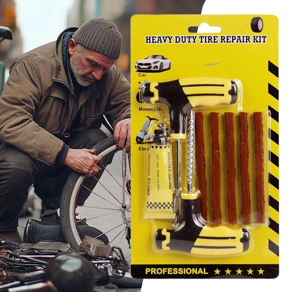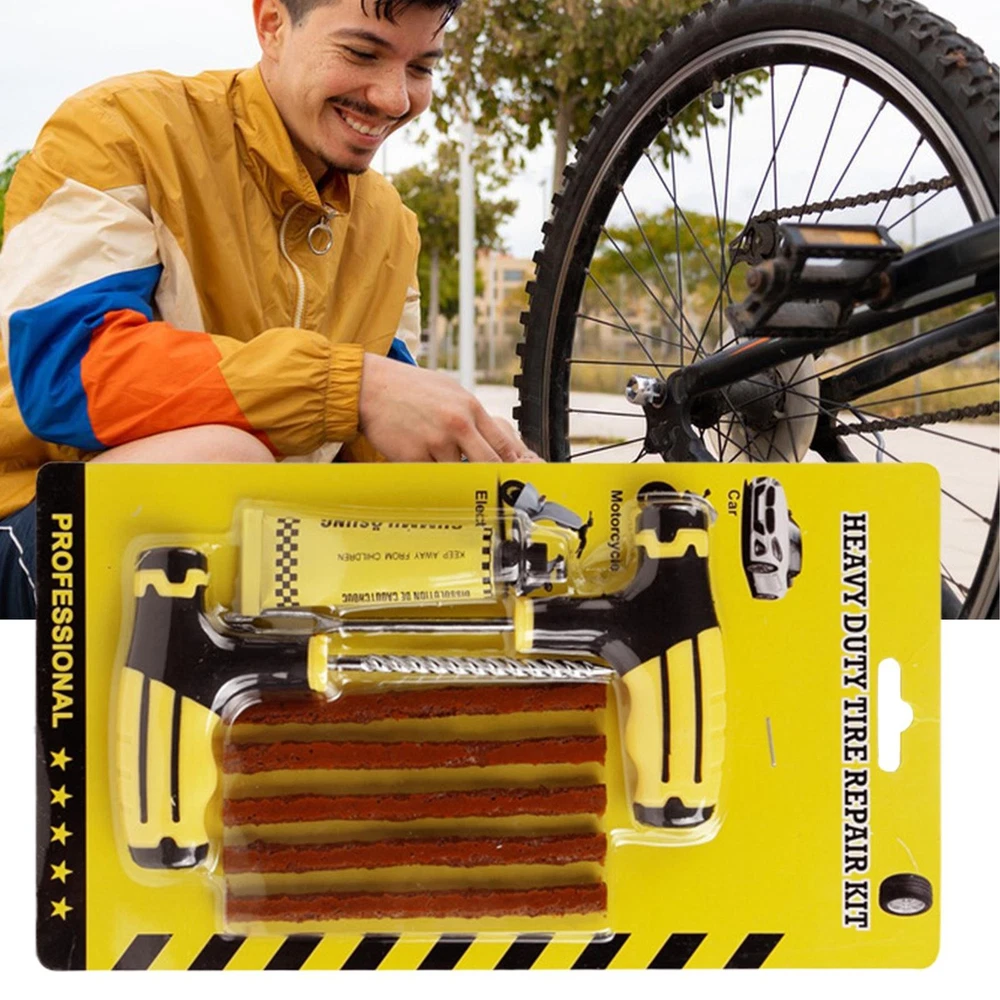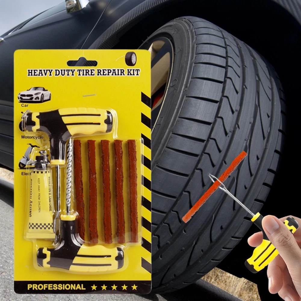 Tire Repair Kit With Plugs Car Plug Flats Patch Kit Fix Puncture Heavy Product Description Bullet Points: Contaminant-Blocking Design: Provides high-efficiency repair with great contaminant-blocking properties, achieving a pressure-stable fix through a tire-structure tight fit improved by sturdy high-tensile rubber strips designed for consistent reliability Easy Transport: Compact and portable tire repair solution designed with efficient slot organization, ensuring safe transit storage and seamless integration into vehicles for immediate access during emergencies Easy to Use: This kit is crafted for single-person use, enabling tool-assisted tire repairs through a three-step process that avoids wheel removal, cutting downtime efficiently and offering unmatched ease of use Wide Range of Uses: Delivers compatibility for motorcycles, SUV, and sedans, with a concentration on repairing 4-8mm cracks in varied scenarios, meeting the demands of routine commutes and extended travel through its versatile application range Crafted to Last: Engineered with sturdy material and advanced multi-layer bonding, it assures crack prevention, vibration resistant, aging and wear durability, plus temperature-shock resilience for reliable tire fixes anytime Designed to meet the demands of modern drivers, this tire repair kit combines portability and functionality with tools like a T-handle and sturdy fix accessories. Fitting motorcycles, trucks, ATVs, tractors, trailers, SUV, sedans, and golf carts, it is a must-have companion for travel and road trips, offering dependable support for unexpected tire repairs. Product specifications: Product name: Tire Repair Kit Product Color: black and yellow Product Material: stainless steel + rubber Product features: can be used on cars, motorcycles, and electric vehicles. Packing List: 1 Set x Tire Repair Kit Note: Due to different lighting and screen settings, the item color may be slightly different from the picture. Due to different manual measurements, please allow a 1-2cm difference in size. Payment 1.PayPal is a preferred Payment method. 2.You can make a Credit payment via Paypal.Paypal will let you use MasterCard,Visa to pay. 3.Payment should be completed within 3 days after auction closed, or unpaid dispute will be filed for an closing auction.An unpaid case will be filled after 4 days. Delivery details 1. We ship to many countries. 2. Delivery Time: Ship from China via Speedpak to US (takes 8-12 days) Ship from China via others shipping method to other countries (takes 15-60 days) 3. If you want to choose another address, please leave us a message on ebay.Please check your shipping address carefully before checkout,it can't be changed if order completed. Seriously promise:Refund or resend will be offered if item still not arrive in 7-10 business days. Just send us an email,we will give you a satisfied solution as soon as possible. Return policy 1.All item comes with Basic 3 Months Sellers Warranty, if item defective in 3 months,We will offer replacement without extra charger (including shipping fee) After we receive the defective item. If item Defective after 3 Month, Buyers can still send it back, We will contact suppliers or Manufactory for Warranty. Buyers Might Need pay the Shipping fee For resend the replaced item. 2.If item DOA(Dead of Arrival), Buyers can return it in 30 Days, we will replace it with new item after we receive DOA item. Please Contact us Before you sent the item back. 3.All item can be returned for exchange only. The buyer has responsibility for all return shipping including DOA or defective return. About Feedback When you receive the item and satisfied with the product, please leave positive feedback and 5 scores DSR. We will leave a 5 Scores DSR feedback for you. If, for any reason you are not satisfied with your purchase, please contact via Ebay Message and we will do our best to resolve it. Please don't leave neutral or negative feedback without any communition with .