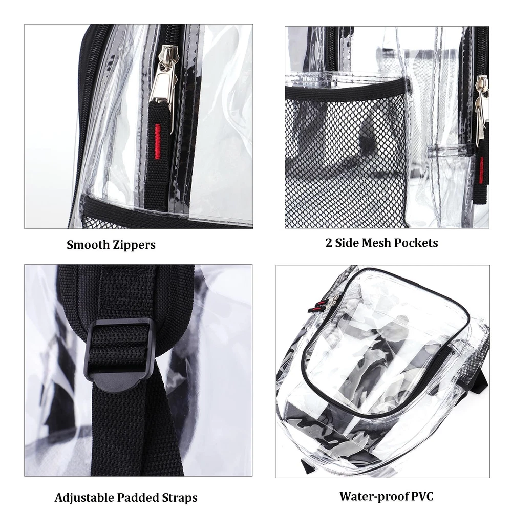 This clear backpack is a game-changer! Super sturdy and spacious, it holds everything I need for school, sports, or travel while staying totally see-through. The reinforced straps make carrying heavy books or gear comfortable, and the thick PVC material feels durable. Perfect for security checks, concerts, or just keeping my stuff organized—love how easy it is to find what I need without digging around!