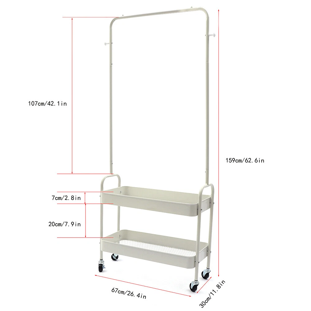 2-In 1 Garment Rack Clothing Rack With 2 Tier Metal Basket Rolling Storage Cart Clothes Organizer Description: The Product Adopts a Minimalist Humanized Design To Maximize The Use Of Space. There Are Wheels At The Bottom, Which Can Move Easily. Two Wheels Are Equipped With Brakes, Which Can Be Fixed When They Are Not Moving. It Adopts Carbon Steel Paint Baking Process, Which Is Not Easy To Rust. Specifications: Material : Baking Paint + Carbon Steel Color: White / Black / Pink Total Load: 50kg Style: Nordic Style Product Size:67*30*159cm/26.4*11.8*62.6in Hanging Rod Height: 107cm / 42.1in Interval Between Two Layers: 20cm / 7.9in Guardrail Height: 7cm / 2.8in Packing Size: 71*34*12cm Net Weight:3.8kg Gross Weight: 4.6kg Application: Indoor Hallway, Living Room, Bedroom, Dressing Ro Heavy Duty Closet Organizer Metal 1Bar Garment Rack Clothes Hanger Storage Shoes 2-In 1 Garment Rack Clothing Rack With 2 Tier Metal Basket Rolling Storage Cart Clothes Organizer Description: The Product Adopts a Minimalist Humanized Design To Maximize The Use Of Space. There Are Wheels At The Bottom, Which Can Move Easily. Two Wheels Are Equipped With Brakes, Which Can Be Fixed When They Are Not Moving. It Adopts Carbon Steel Paint Baking Process, Which Is Not Easy To Rust. Specifications: Material : Baking Paint + Carbon Steel Color: White / Black / Pink Total Load: 50kg Style: Nordic Style Product Size:67*30*159cm/26.4*11.8*62.6in Hanging Rod Height: 107cm / 42.1in Interval Between Two Layers: 20cm / 7.9in Guardrail Height: 7cm / 2.8in Packing Size: 71*34*12cm Net Weight:3.8kg Gross Weight: 4.6kg Application: Indoor Hallway, Living Room, Bedroom, Dressing Room, Laundry Room Or Student Dormitory Features: It Is Made Of High-Quality Carbon Steel, Which Is Not Easy To Deform And Durable. The Simple Design Does Not Occupy Land And Meets The Daily Storage. Breathable Storage Basket, Drainage, Ventilation And Moisture-Proof. Raise The Storage Basket To Easily Place Medium-Sized Items Such As Handbags And Storage Boxes, Which Is Not Easy To Fall. Thick Pipe, Firm And Stable, Anti-Skid Bottom Corner, Silent And Noise Free. Reasonable Structure And Strong Bearing Capacity. There Are 4 Wheels At The Bottom, 2 Of Which Are Equipped With Brakes, Which Can Be Easily Moved And Fixed. Packing List: 1x Rack Note: Due To The Lighting Effect Of The Product, The Picture Color Is Slightly Different From The Real Object. Please Understand. Please Allow An Error Of 1-3cm Due To Manual Measurement. Please Do Not Hesitate To Contact Our Customer Service If You Have Any Problems During The Installation And Use Of The Product. Payment Delivery details Terms of sales About us Contact us Payment We accept ebay payment 。 Fees such as import duties, taxes are not included in the item price or shipping costs. These charges are the buyer's responsibility. Delivery details Shipping: 2-9 working days to: USA Terms of sales We maintain high standards of excellence and strive for hundred percent customer satisfaction. Feedback is very important to us. We hope that you contact us immediately before you give neutral or negative feedback, so that we can address your concerns. It is impossible to address issues if we do not know about them! About us Your satis faction is our ultimate goal. We work hard to earn your trust and future business. Our certified technicians have tested each item before shipping. The unit comes with 1 year limited warranty on all manufacturing defects. a) If you receive a defective item, you may return it or ask for a discount. Please contact us within 14 days after you receive the package. b) What you returned must be intact and in its original packaging as re? u. Customer is responsible for shipping costs of the returned item. c) We will cover the cost of shipping back t with the shipping rate indicated in the registration page. We will send you a new unit or refund the full payment you paid. Thank you. Contact us Business Hour Business Hour: Monday To Friday: 8:30 AM to 5:00 PM (Beijing China time) Due to time zones, our reply to your questions may not be immediately. But within above working time, we will reply your email within 24 hours. If it's non-workdays, please kindly be patient and wait till Monday. Please contact us with ebay message. Please feel free to contact us if you have any questions. Monday To Friday: 8:30 AM to 5:00 PM (Beijing China time) Due to time zones, our reply to your questions may not be immediately. But within above working time, we will reply your email within 24 hours. If it's non-workdays, please kindly be patient and wait till Monday. Please contact us with ebay message. Please feel free to contact us if you have any questions. Brand Unbranded Feature 1 Great Durability,Exquisite Appearance,High-quality Feature stable performance and high quality Manufacturer Warranty 3 Years shipping notice Can not ship to Puerto Rico,Alaska/Hawaii Assembly Required Yes Features W/2 Tier Metal Basket MPN Does not apply Item Height 159cm Item Length 67cm Item Width 30cm Material Baking Paint + Carbon Steel Total Load 50kg Style Nordic Style Product Size 67*30*159cm/26.4*11.8*62.6in Hanging Rod Height 107cm / 42.1in Interval Between Two Layers 20cm / 7.9in Guardrail Height 7cm / 2.8in Packing Size 71*34*12cm Net Weight 3.8kg Gross Weight 4.6kg Application Indoor Hallway, Living Room, Bedroom, Dressing Room Type Rack UPC Does not apply