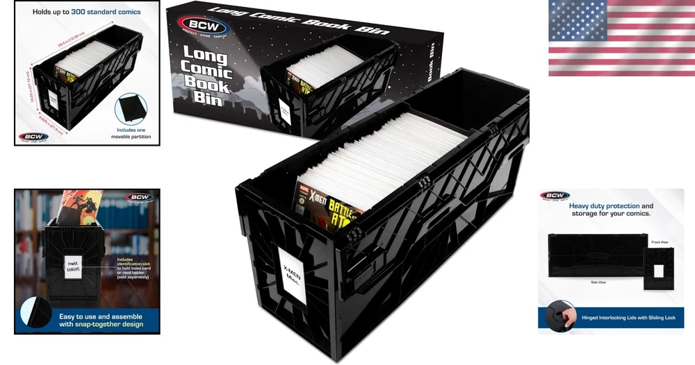 Heavy Duty Comic Book Bin - Stackable, Water-Resistant Organizer for 300 Comics ‹ › ‹ › ‹ › ‹ › ‹ › ‹ › ‹ › ‹ › ‹ › Heavy Duty Comic Book Bin - Stackable, Water-Resistant Organizer for 300 Comics Features: Holds up to 300 standard-sized comics Assembled dimensions: 12.25 x 8.625 x 28.5 inches 5 pack of long bins for huge storage capacity Durable snap-together construction designed to stack up to 6 high Made from heavy-duty and acid-free plastic for long-lasting preservation Convenient identification slot for easy bin labeling Includes one movable partition for customized comic storage Engineered with interlocking panels and sliding locks for enhanced security Effortless comic organization with easy assembly Benefits: Provides secure and organized storage for your valuable comic collection Saves valuable shelf space and organizes your comics efficiently Heavy-duty construction ensures long-lasting preservation Customizable storage with movable partition Enhanced security features for peace of mind Easy to assemble and use for convenient comic storage Why choose our Heavy Duty Comic Book Bin? Elevate your comic organization with our Heavy Duty Comic Book Bin, designed to hold up to 300 comics. Its durable construction and water-resistant design make it ideal for preserving your valuable collection. With convenient features like a movable partition for customization and enhanced security with interlocking panels and sliding locks, this bin offers both functionality and peace of mind. Experience easy and efficient comic storage with our Heavy Duty Comic Book Bin today! Shipping Free & Fast Shipping - We offer free shipping to most of the USA with a normal delivery time of 3-7 days. However, due to the current situation, additional delivery time (up to 3 weeks) may be required for some items. Alternative Carriers - We may use alternative carriers (e.g. USPS, FedEx, UPS, etc.) to ensure your package arrives safely and on time. Due to the use of multiple carriers, we are unable to provide a tracking number automatically. Handling Time - Orders are processed and shipped within 1-2 business days of receiving cleared payment. Shipping Restrictions - Shipping to Alaska, Hawaii, Puerto Rico, Guam, and other US territories may incur shipping charges or delivery restrictions. Please contact us before ordering, or your order can be refunded/cancelled. State Restrictions - There may be restrictions based on your state of purchase. For example, certain items may not be shipped to California due to state regulations. Contact for Tracking Updates - If you require tracking updates or have any concerns about the delivery of your order, please feel free to contact us, and we will be happy to assist you. Return 30-Day Hassle-Free Returns - We want you to be completely satisfied with your purchase. If you are not, you can return the item within 30 days of receiving it for a full refund or exchange. Easy Return Process - To start a return, simply contact us and we will provide you with a prepaid return shipping label and detailed instructions. Restocking Fee - There are no restocking fees for returns. However, the buyer is responsible for return shipping costs if the return is not due to a seller's error. Refund Processing Time - Refunds will be processed within 5 business days of receiving the returned item in its original condition. Payment We accept all major credit cards, PayPal, and Apple Pay for your convenience. Your payment information is secure and encrypted to ensure a safe and seamless transaction. Please complete your payment within 3 days of purchase to avoid any delays in shipping. Feedback Your feedback is extremely important to us. We strive to provide the best products and customer service possible. If you are satisfied with your purchase, please take a moment to leave us a positive review. If you have any concerns or issues with your order, please contact us before leaving negative feedback. We are committed to resolving any problems and ensuring your satisfaction. Contact Us If you have any questions or concerns, please feel free to reach out to our customer support team. You can contact us through the eBay messaging system. We are available Monday to Friday, 9:00 am to 5:00 pm EST, and we will do our best to respond to your inquiry within 24 hours. Thank you for supporting our small family business! Capacity: 300 Comic Books Compatible Thickness: Comic Book Storage Autograph Format: Comic Book Storage Item Width: Comic Book Storage Material: Plastic Features: Acid-Free,Portable,Stackable,Lockable,Impact-Resistant Character: Not Set Type: Comic Book Holder Stand Color: Black Brand: Unbranded Compatible Size: Standard Universe: Not Set Finish: Not Set Fastening: Snap Signed By: Not Set Item Height: Not Set Item Length: Not Set MPN: Not Set Autographed: Not Set Inscribed: Not Set Vintage: Not Set