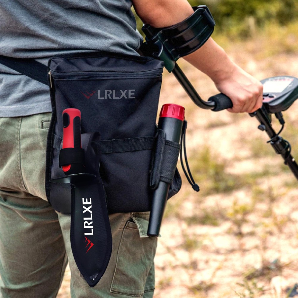 Specification: Double serrated metal detector shovel,LRLXE metal detector digger tool. Color:Black Material: Heat treated carbon steel + Nylon Sheath Size: Serrated edge digger size: 12.8Lx3.74Wx2.56H (inch) Sheath size: 12.4Lx3.8Wx0.78H (inch) Why choose LRLXE edge digger? Heavy duty serrated edge digger Sharp enough to dig deep into hard soil Sturdy enough to root out whatever you find there The oversized comfortable grip and hand guard helps in minimizing accidental injuries Can be used for gardening tool, camping, especially for metal detecting Comes with a sheath to keep the tool with you at all times by looping the sheath to your belt Durable digging tools: quickly acquire your treasures. Serrated edge digger metal detecting shovel, the perfect companion for all your digging projects, useful for gardening and excavating treasures. Serrated Edge Digger size: 12.8Lx3.74Wx2.56H (inch), Sheath size: 12.4Lx3.8Wx0.78H (inch), portable size to use and store. Rubber handle adopts ergonomic non-slip design, more fit to the palm, makes it more comfortable and easier to grasp, effectively relieve wrist pressure. The metal detector shovel comes with a high density and wear-resistance nylon sheath to protect the edges when not in use, also features a belt loop for you to attach it to your belt. Our metal detector excavator is also suitable for a variety of gardening project functions including metal detection, digging, loosening, planting, etc.