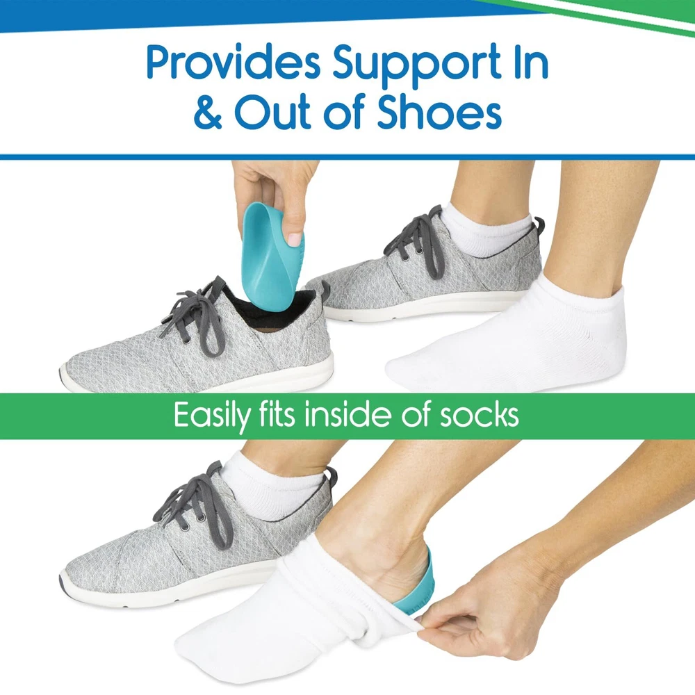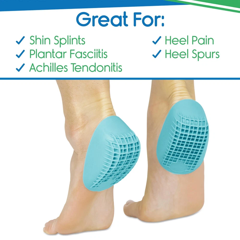 SUPPORTIVE HEEL CUSHIONING: Effectively relieving heel pain, the heel cups cushion and support the heel, promoting proper foot positioning for alleviating foot pain and fatigue. Great for athletes and those on their feet all day, the heel cups relieve pain due to heel spurs, plantar fasciitis, shin splints, Sever’s disease and more. DOUBLE WAFFLE DESIGN: Providing structured cushioning, the heel cups feature a double waffle base that is shock-absorbing, evenly distributing the pressure created with each step. The cushioning design also reduces foot strain while providing additional support for ankle muscles to further alleviate fatigue. FITS IN ANY SHOE: Easily trimmable for a customized fit, the heel cups are sized to rest on top of the existing insole in any shoe with a closed heel. Comfortably worn with or without socks, the flexible design can be worn in most shoe styles, including athletic shoes, dress shoes and boots. EASY TO CLEAN: Constructed with latex-free composite material, the heel cushions are flexible for greater durability. The unisex heel cups are easily removable and also washable for odor-free, out-of the box freshness. HSA/FSA APPROVED & VIVE : Eligible for purchase with Health Savings or Flexible Spending Account funds. Plus, enjoy the Vive 60-day unconditional for added confidence in your purchase.