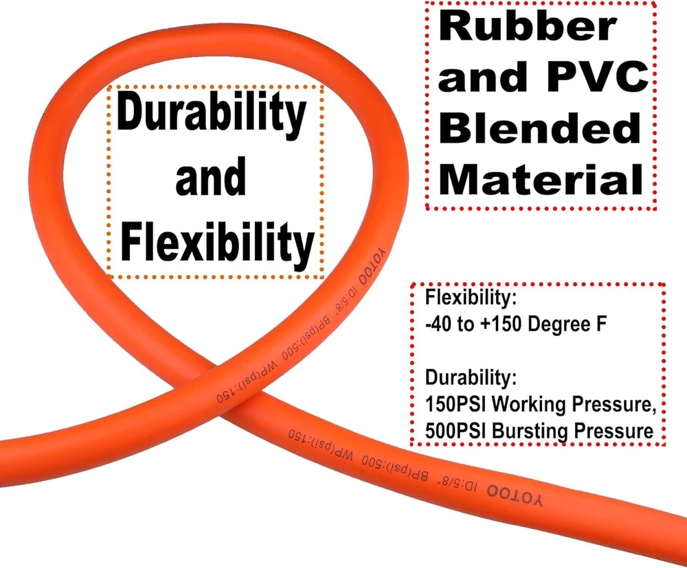 Store New Arrivals Add to Favorite View Feedback Contact Heavy Duty Hybrid Garden Water Hose 5/8-Inch by 25-Feet 150 PSI Kink Resistant, Flexible with Swivel Grip Handle and 3/4" GHT Solid Brass Fittings for Watering Plants, Backyard, on Reel, Orange Description Item model number 105018 Part Number 105018 Batteries Required? No Maximum Pressure 150 Pound per Square Inch Color Orange Material Rubber and Pvc Blended Country of Origin China Warranty Description TWO YEAR WARRANTY Item Weight 4.22 pounds Batteries Included? No Item Length 25 Feet Installation Method Screw-In Product Dimensions 300"L x 0.63"W Size 25 FT EXCELLENT MATERIAL: This garden hose is blended rubber and PVC for heavy duty, lightweight, flexibility,abrasion resistance and all weather use. EASE TO USE: Equiped with swivel grip handle for easily threading the fittings onto a hose bid. Sold Brass 3/4" GHT fittings for abasion resistance and long time use. Rubber washer for no leaking connection. EXTREMELY FLEXIBLE AND NO KINKING: Very FLEXIBLE even at -40 to 150 degree F. NO KINKING when extended. HIGH STRENGTH: 5/8 INCH inner diameter by 25 FEET long delivers up to150 PSI for maximum working pressure, 500 PSI bursting pressure. TWO YEAR limited warranty Product Description YOTOO Heavy Duty Hybrid Garden Hose 5/8" (Orange) The video showcases the product in use. The video guides you through product setup. The video compares multiple products. The video shows the product being unpacked. Specification DURABLE AND FLEXIBLE This YOTOO garden hose is made of rubber and pvc blended material. It features lightweight, durable and kink resistant. EASY TO USE This water hose installed swivel grip handle for easy to thread the fittings onto a hose bid. The rubber O ring for NO LEAKING connection. SOLID BRASS 3/4" GHT FITTINGS The fittings are solid brass 3/4" GHT for resistant abrasion and long time use. HIGH STENGTH This garden hose can withstand car rolling pass. Don't worry about people stepping on the hose. PLANTING WATERING This heavy duty water hose is suitable for garden watering. WASH FLAGSTONE WALK This lightweight garden hose is very easy to use for washing the flagstone walk. HOUSE CLEANING This water hose can be used for cleaning your house. CAR WASHING This hybrid polymer hose supports max. 500 psi, You can use this water hose to wash car under high pressure. YOTOO Heavy Duty Different Color Garden Hose Add to Cart Add to Cart Add to Cart Add to Cart Customer Reviews 4.4 out of 5 stars 1,769 4.5 out of 5 stars 2,085 4.5 out of 5 stars 2,085 4.5 out of 5 stars 2,085 Price $32.99 $ 32 . 99 $32.99 $ 32 . 99 $33.99 $ 33 . 99 $32.99 $ 32 . 99 Color Blue Gray Green Orange Hose Length 50 ft. 50 ft. 50 ft. 50 ft. Hose I.D. 5/8 in. 5/8 in. 5/8 in. 5/8 in. Fittings 3/4" GHT Solid Brass Fittings 3/4" GHT Solid Brass Fittings 3/4" GHT Solid Brass Fittings 3/4" GHT Solid Brass Fittings Swivel Handle ✔ ✔ ✔ ✔ Material Rubber and PVC Blended Rubber and PVC Blended Rubber and PVC Blended Rubber and PVC Blended ABOUT US We offer the best prices around on high quality products. Our E-store includes media such as books, movies, music and games while offering electronics, toys, sporting apparel, clothing, tools, general home, garden items and more. SHIPPING We are always working hard to ensure your package arrives as soon as possible. Please understand that some factors like weather, high postal traffic, and the performance of shipping companies are outside of our control. We offer free shipping to the lower 48 states and ship within 2 business days of payment, usually sooner. We do not accept P.O. Boxes. Please provide a physical address. For shipping outside of the continental USA, we only use eBay's Global Shipping Program.The item is shipped to KY and then sent to the rest of the world. International customers are responsible for all duties and taxes. Continue to check out in order to calculate costs for shipping the item to your country. Messages regarding eBay's Global Shipping Program MUST be directed at eBay EXCLUSIVELY. RETURNS We offer a 30-Day Return Policy on items which you are not completely satisfied with. You have the option for a full-refund or an exchange of the item. No returns are available on items shipped outside of the USA. PAYMENT We accept PayPal. CONTACT US This page content is yet to come Please ad us to your favorite seller and visit again later Thank You CUSTOMER SATISFACTION We try our very best to make sure every customer is completely satisfied. If there's a problem, message us! We're happy to help. WE ACCEPT Copyright © 2021 AutoDS. | All Rights Reserved