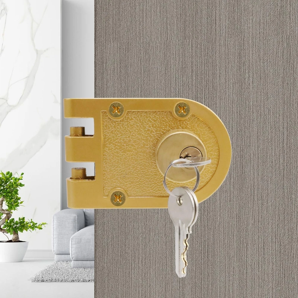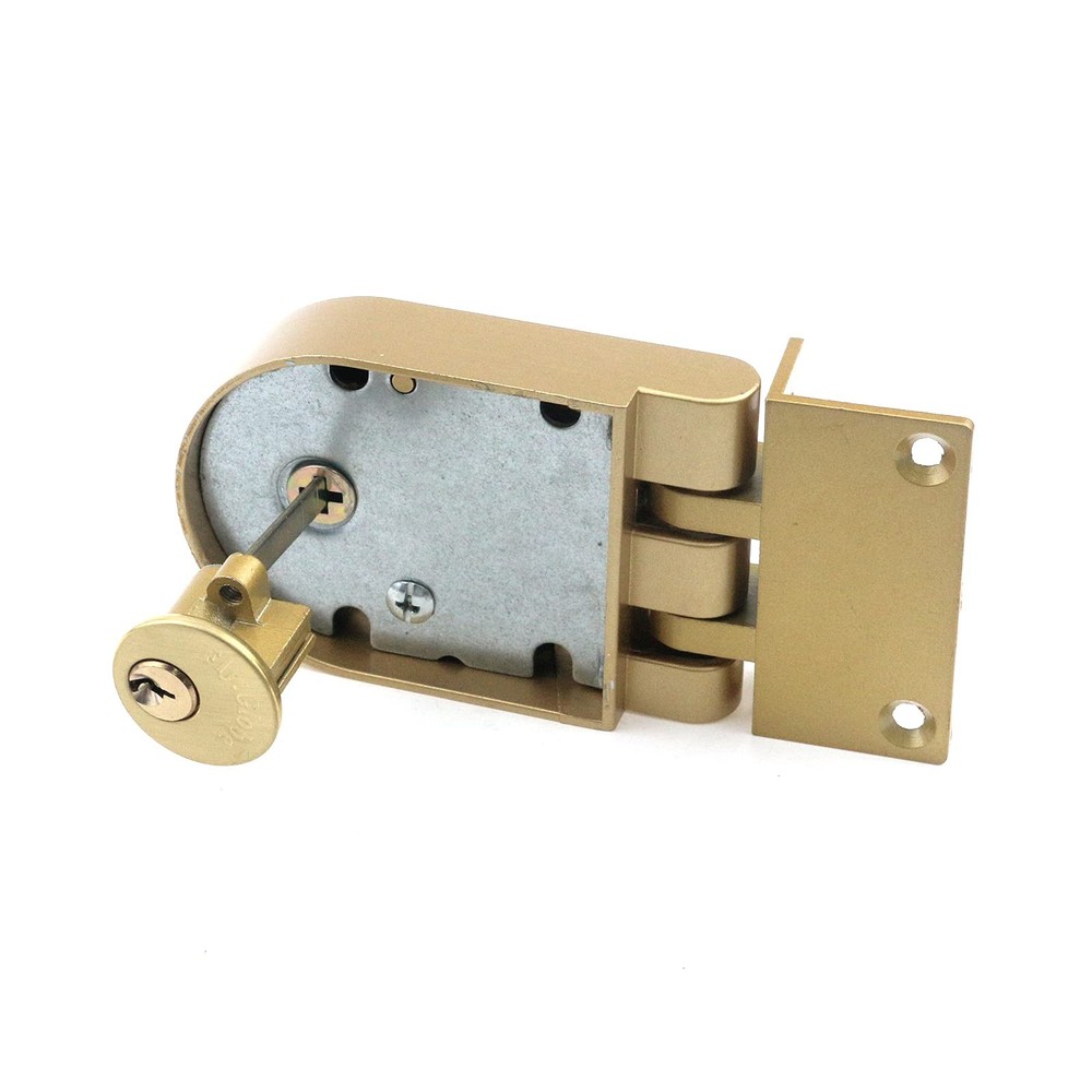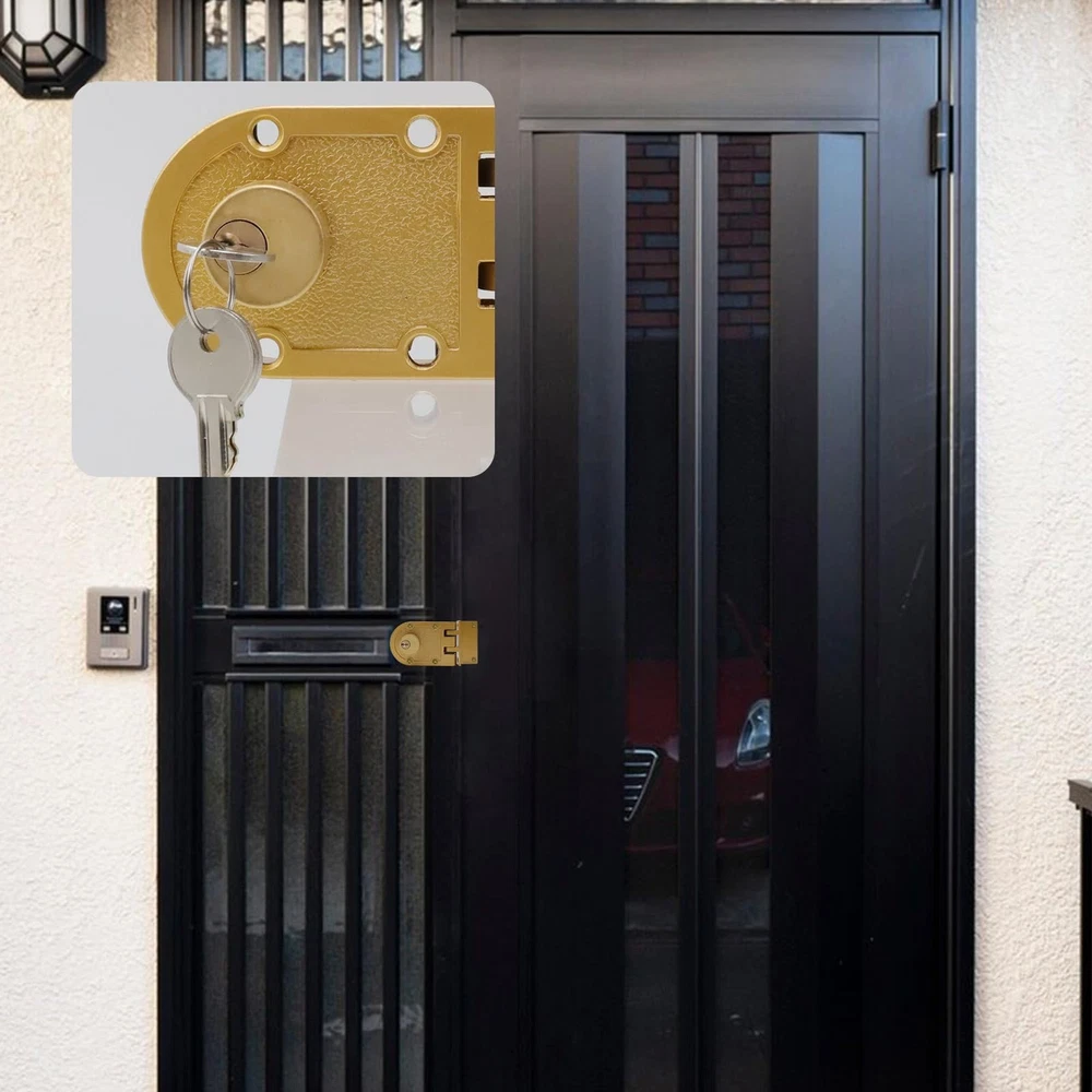 Specification: Net Weight:461g Color:Golden Material:Metal Main Body Size:109 x 73 x 46mm/4.29" x 2.87" x 1.81"(L*W*H) Package Includes: 1 x Jimmy Proof Deadbolt Lock Some Mounting Accessories Note: Due to the manual measurement,there may be small deviations. The color may have different as the difference display,please understand. Package Includes: 1 x Jimmy Proof Deadbolt Lock; Some Mounting Accessories. Fits door thickness between 1-3/8" to 2-3/8". Main Body Size: 109 x 73 x 46mm/4.29" x 2.87" x 1.81"(L*W*H). Surface installation requires one 1 1/4"(32mm) diameter holes keyed deadbolt. Hidden tamper-resistant shutter guard against force entry if cylinder is removed, provides added security to your home.