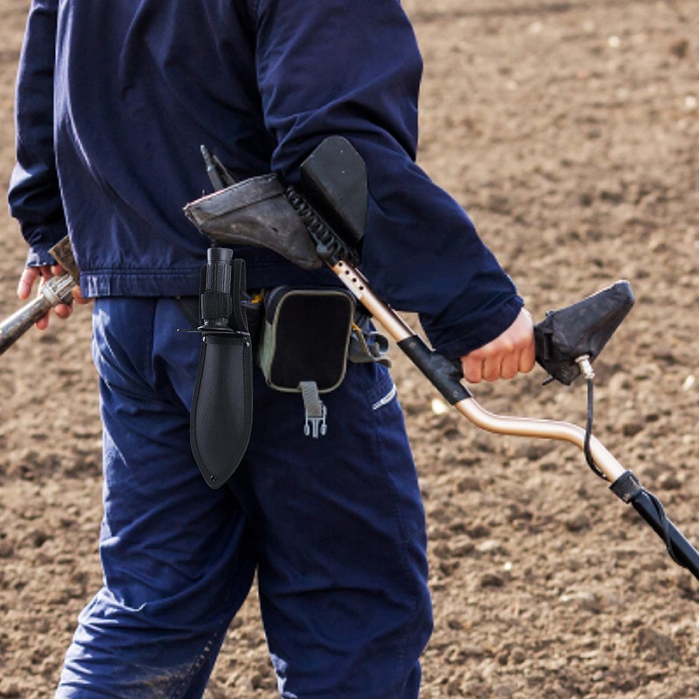 Serrated - Edge Digger Metal Detecting Shovel. Ideal for all digging projects, gardening and treasure - excavating Size: Digger - 11.6L x 3.74W x 2.4H (inch), Sheath - 12L x 3.74W x 0.98H (inch). Portable for easy use and storage Ergonomic non - slip handle. Fits palm well, comfortable and easy to grasp. Relieves wrist pressure High - density, wear - resistant nylon sheath. Protects edges when not in use. Belt loop for attaching to belt Suitable for various gardening functions: metal detection, digging, loosening, planting
