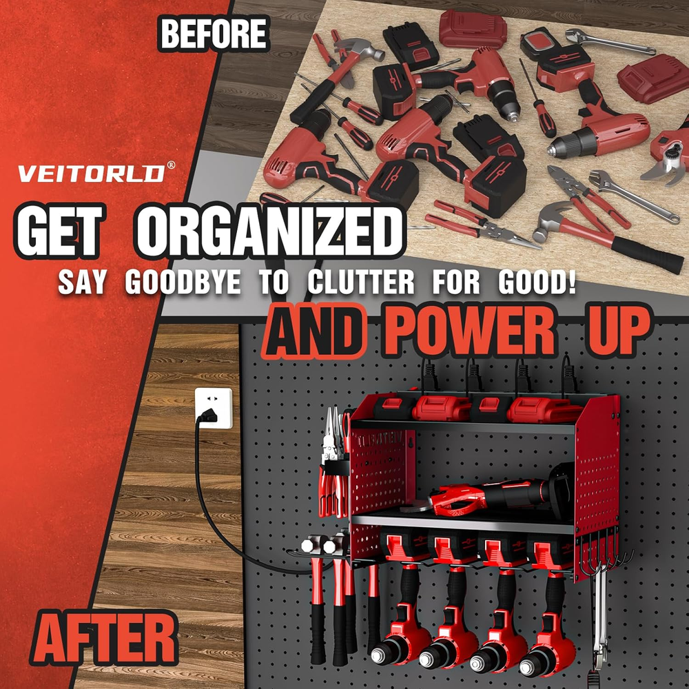 Store New Arrivals Add to Favorite View Feedback Contact Fast deliveries to the customer's home Quality customer service John Make the customers happy! Power Tool Organizer with Charging Station, 4 Drill Holders - Heavy Duty Modular Wall Mount Rack for Garage, Tool Storage Organizer - Gifts for Him Men Dad Husband Anniversary Fathers Day Description Efficient Charging Station: Keep your tools ready to go with our integrated power tool organizer wall mount, featuring 8 AC outlets with overload protection. Charge multiple devices simultaneously, boosting your work efficiency Fathers Day Gifts from Wife Daughter Son: an ideal choice among Fathers Day gifts for dads, him, men, husbands, brothers, sons, or any man in your life, maximize their garage storage with our power tool organizer blending practicality and style seamlessly Perfect Helper in Garage: Ideal for garages, workshops, homes, sheds, backyard shops and more, our garage wall organizer maximizes wall space and saves you time searching for tools. Comes in elegant packaging, making it a thoughtful gift for any man Garage Storage & Organization: Say goodbye to clutter with our garage organization designed to solve your tool organization challenges. Our tool storage features extra pegboard and hammer holders for easy access and visibility of your essential tools Sturdy and Reliable Construction: Crafted from heavy-duty metal, this tool organizer compatible with standard 16-inch wall stud spacing for durability and strength. Perfect for supporting heavy tools and work benches for garage use Customizable Storage Options: With adjustable side racks and a front panel, you can tailor this tool storage to fit your needs(Move the grid panel or side holder to your desired screw mounting holes on the pegboard for assembly) Quick and Easy Installation: Assemble your new shed organizer unit in under 15 minutes! Our utility racks comes with detailed instructions and a video guide, ensuring a hassle-free setup Holiday Gifts Guide, Xmas December Gifts for Men Who Have Everything, White Elephant Gifts, Mens Stocking Stuffers, Fathers Day Gift Ideas Product Description Best Fathers Day Gifts for Men The video showcases the product in use. The video guides you through product setup. The video compares multiple products. The video shows the product being unpacked. 1 Why Choose Veitorld 2 Super Strong 3 8-Outlet Power Strip 4 Easy to Install Stop Stressing Over Your Husband's Messy Workbench Performance Review More Veitorld Brand Power Tools Organizer Show Add to Cart Add to Cart Add to Cart Add to Cart Add to Cart Add to Cart Customer Reviews 4.6 out of 5 stars 257 4.6 out of 5 stars 257 4.7 out of 5 stars 17,925 4.7 out of 5 stars 306 4.7 out of 5 stars 17,925 4.7 out of 5 stars 2,488 Price $49.99 $ 49 . 99 $59.99 $ 59 . 99 $24.99 $ 24 . 99 $24.99 $ 24 . 99 $19.99 $ 19 . 99 $16.99 $ 16 . 99 Gifts for men ✔ ✔ ✔ ✔ ✔ ✔ Gifts for dad ✔ ✔ ✔ ✔ ✔ ✔ Gifts for husband ✔ ✔ ✔ ✔ ✔ ✔ Stocking stuffers ✔ ✔ ✔ ✔ ✔ ✔ Christmas gifts ✔ ✔ ✔ ✔ ✔ ✔ Item model number VE-GJ-03-GJJ Style Red W/Outlets Country of Origin China Batteries Included? No Room Type Garage Assembly Required Yes Product Dimensions 8.7"D x 12.6"W x 16.5"H Material Stainless Steel Included Components Utility Racks, Hardware, Charging Station Batteries Required? No Item Weight 8.95 pounds Number of Shelves 3 Special Features Detachable, Rechargeable Special Feature Detachable, Rechargeable Part Number HB-US-5 Shelf Type Hanging Shelf Mounting Type Wall Mount Color Red Recommended Uses For Product Tools Size 3 Layer ABOUT US We offer the best prices around on high quality products. Our E-store includes media such as books, movies, music and games while offering electronics, toys, sporting apparel, clothing, tools, general home, garden items and more. SHIPPING We are always working hard to ensure your package arrives as soon as possible. Please understand that some factors like weather, high postal traffic, and the performance of shipping companies are outside of our control. We offer free shipping to the lower 48 states and ship within 2 business days of payment, usually sooner. We do not accept P.O. Boxes. Please provide a physical address. For shipping outside of the continental USA, we only use eBay's Global Shipping Program. The item is shipped to KY and then sent to the rest of the world. International customers are responsible for all duties and taxes. Continue to 'check out' to calculate costs for shipping the item to your country. Messages regarding eBay's Global Shipping Program MUST be directed at eBay EXCLUSIVELY. RETURNS We offer a 30-Day Return Policy on items in which you are not completely satisfied with. You have the option of a full-refund or an exchange of the item. No returns are available on items shipped outside of the USA PAYMENT We accept PayPal. CONTACT US This page content is yet to come Please ad us to your favorite seller and visit again later Thank You CUSTOMER SATISFACTION We try our very best to make sure every customer is completely satisfied. If there's a problem, message us! We're happy to help. WE ACCEPT