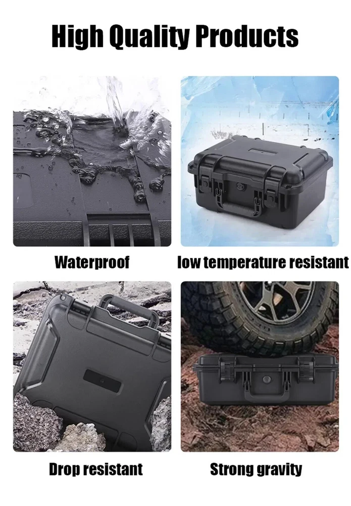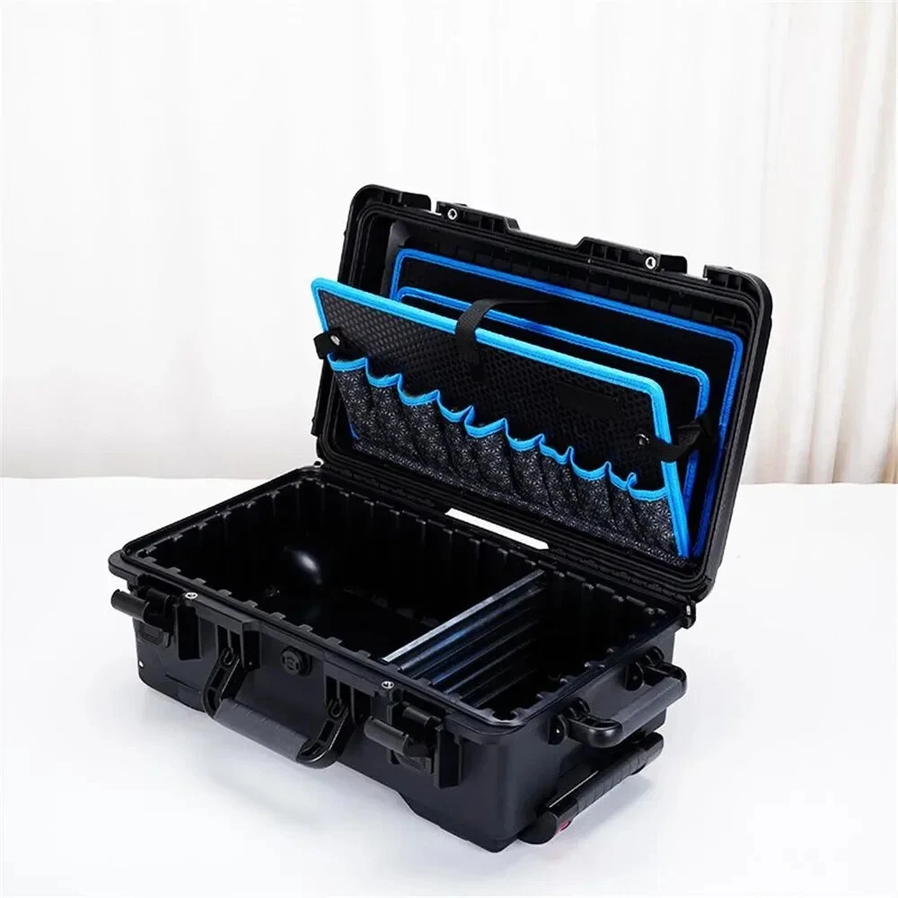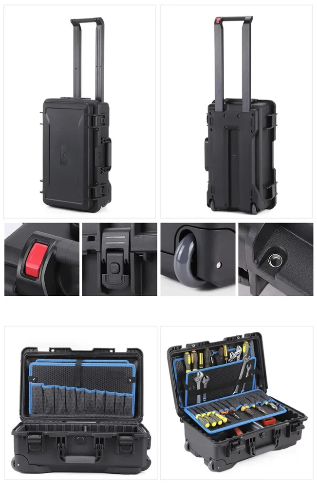 Heavy Duty Outdoor Case with Trolley Pocket Tool Boards Wheel Electric Drill Garage Storage Electrician Tools Chest Organizers Features: 100% brand new and high quality,we support retail, dropshipping, wholesale,customized impact-resistant case made of polypropylene (PP) Unlimited 30 year warranty for case shell Waterproof and dust proof case Removable lid Automatic pressure relief valve 100% Satisfaction Guarantee,If there is any problem with the use of the product, please contact me and solve the problem.For you to Resend or refund, Please don't give a low score directly.Thank you, Dear customer! Color:see pictures Material:plastic Sales Way : Retail, Wholesal,Drop Shipping Size: One Size Length:56cm(22.05in) Width:36cm(14.17in) Height:23cm(9.06in) Quantity: 1pc Size For Manual Measurement, there may be a 0 to 2 cm error, belongs to the normal phenomenon. And due to the difference between different monitors, the picture may not reflect the actual color of the item. Thank you! Package includes: 1x tool case