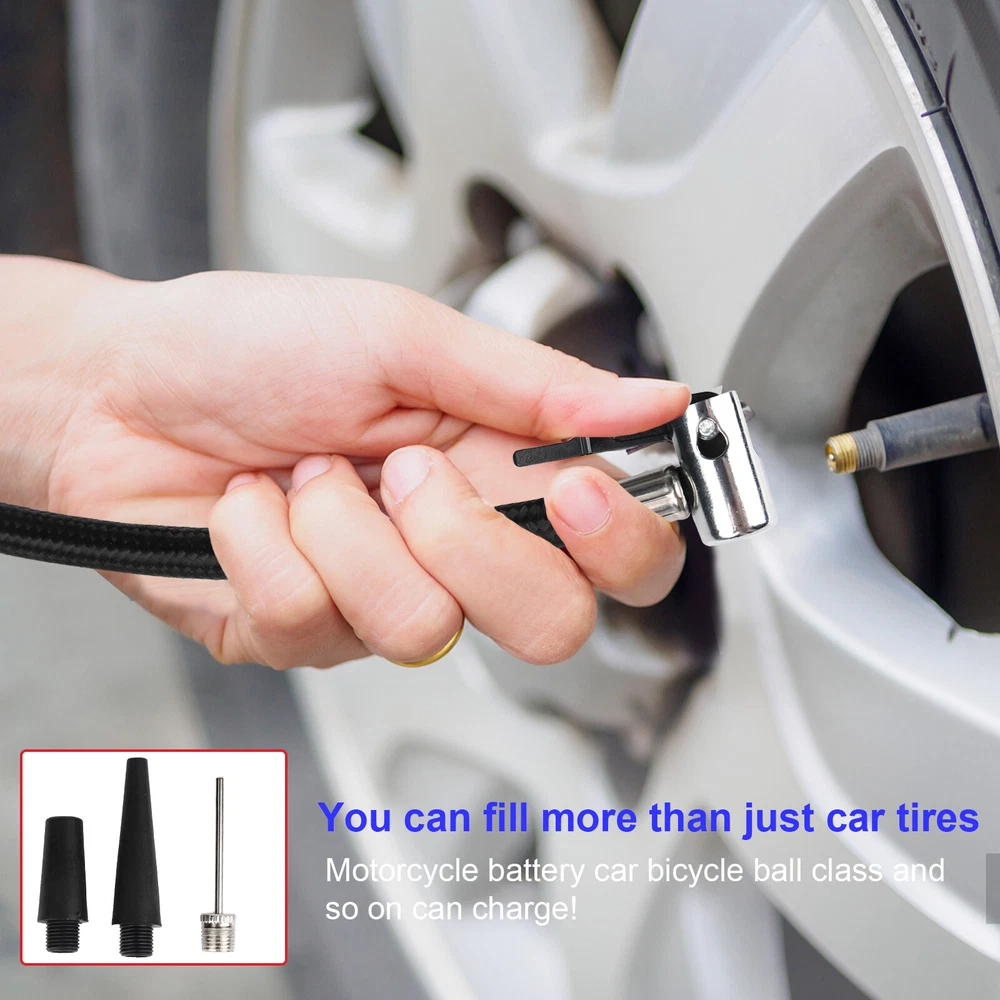 Heavy Duty Portable Air Compressor Car Tire Inflator Electric Pump Auto 12V Item Description Features: ★ Heavy duty air compressor, ideal for inflating many types of tyres including 4WD vehicles and tractors tyres. ★ Huge air flow cylinder 150PSI working pressure, can reach to the normal tire pressure quickly. ★ This lightweight mini compressor is small, compact and portable for easy storage in most vehicle types. ★ Cast metal air pump casing with radiator for better heat dissipation. ★ Supplied with tyre inflator extension adapter and other inflation accessories in the carry bag. ★ Able to inflatebike tyres, car tyres, athletic balls etc. Specification: ★ Type: 2 cylinders Air Compressor ★ Voltage range: DC 12V-13.5V ★ Max Ampere: 30Amp ★ Max Pressure: 150 PSI ★ Air Flow Rate: 70L/min ★ Weight: 2.7kg/5.95Lbs ★ Power Cable Length: 102 IN ★ Hose Length: 118 IN ★ Application: car/electric car/bicycle/motorcycle/ball/kayaking Note: ★ Strictly use it within instructed power voltage DC 12V, do not use high voltage ★ The car motor should be started before using ★ It is better to stop a while after inflating for 15 minutes to extend the lifespan of the motor ★ Generally, when inflate approximately 3 minutes; the normal tire pressure can reach 220KPA. Large tires will need longer time. If the gauge pointer rapidly rising when start inflate, means there is no air going though the tire, you must stop and start over, otherwise, the gauge and the motor will be damaged Package Include: ★ 1 x Portable Air Compressor Pump ★ 1 x Power Cord With Battery Clamps ★ 1 x Extension Air Hose ★ 3 x Inflatable Adapters ★ 1 x Carrying Bag Detail Images Shipment 1.We ship to your eBay or Paypal address. Please make sure your eBay and Paypal address is correct before you pay. 2.Items will be shipped within 1-3 business day when we received payment. 3.Delivery time depends on destination and other factors; 4.International buyers please note: a.Import duties, taxes and charges are not included in the item price or shipping charges. These charges are buyer's responsibility. We will try our best to reduce the risk of the custom duties. b.Please check with your country's customs office to determine what these additional costs will be prior to buying. Payment 1.We accept PayPal only. 2.All major credit cards are accepted through secure payment processor PayPal. 3.Payment must be received within 7 business days of auction closing. 4.We ship to your eBay address. Please make sure your eBay address is correct before you pay. Return & Refund Customer satisfaction is our first priority. We accept return within 30 days after delivery. Buyer is responsible for return shipping and insurance cost. Please email first before returning. We will return the money to you after got the return item(s). We can not refund to you if any broken or damaged of your return item. Please ensure its safety. Feedback Your feedback is very important to us. If you can't leave us a "5-Star" rating and a positive feedback, please contact us first prior before leaving feedback. We are eager to work with our customers. We believe in communication. Give us a call or send us an email, we will make things right for our buyers. Positive feedback for our buyers will be left automatically by eBay Seller Manager Pro. On Sep 2, 2024 at 19:56:23 PDT, seller added the following information: On Sep 17, 2024 at 15:36:07 PDT, seller added the following information: