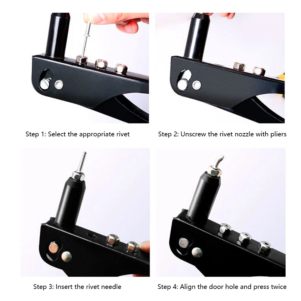 pop rivet gun tool kit rivets pop rivets pop rivet gun kit There are four different sized rivets from 2.4mm to 4.8mm which are the standard sizes for most tasks. Made with carbon steel, it is robust and will last a long time while being lightweight. Its ergonomic design makes it comfortable to use, and includes a handle lock to ensure your safety. The rivet gun set can be used in a wide range of ways including car repair, shelving, in workshops, furniture, or industrial manufacturing. Simply slide the rivet into the gun and press down. The rivet gun set comes in a portable box, so it is easy to find the right size of rivets quickly. The rivet gun kit comes with 400 pcs aluminum rivets, 4 interchangeable Nosepieces and a Wrench, 3/32 inches(2.4mm), 1/8 inches(3.2mm), 5/32inches(4.0mm), and 3/16 inches(4.8mm), each size comes with 100 pcs rivets. Features: 🔨 CARBON STEEL – The anti-rust riveter body is made from high-quality and heavy-duty carbon steel which is paired with the anti-slip ergonomic handle to facilitate effortless work whilst ensuring comfort for the user. 🔨 ERGONOMIC DESIGN – The ergonomically designed lightweight comfort grip is built to fit the hand perfectly in order to distribute force for maximum efficiency. The handle is lengthened which ensures that there is no energy wasted with each squeeze of the pop rivet gun handle. Make quick and easy work of automotive, garden furniture, elevator, instrument and house furniture tasks. 🔨 ALL IN ONE - The Rivets Gun Set includes four compatible drill bit nosepieces 3/32"(2.4mm), 1/8"(3.2mm), 5/32"(4.0mm) and 3/16"(4.8mm). These nosepieces are conveniently stored in the body of the rivet gun for ease of use and accommodates a range of riveting jobs. Payment Delivery details Return Contact us Feedback Payment We only accept the paypal payment methods. All major credit cards are accepted through secure payment processor PayPal.(* If you use e-check on PayPal, delivery may take longer, as we will hold your order until your e-check clear) Delivery details Item will be shipped within 2 business day after confirmed payment. (Not including weekend or public holidays) Please verify your address during checkout. We are not responsible for any wrong or undeliverable addresses. All items will be checked strictly before shipping and it will be shipped to your PayPal address. Estimated delivery time is 1-5 working days (Not including weekend or public holidays) Delivery times may vary particularly during peak periods or unexpected weather conditions. In event of a very unlikely slight delay, your patience would be highly appreciated. We do not provide pick up or local collection service so far. Return We accpet return within 30 Days of dispatch. For exchange buyer MUST return the defective item for 1 to 1 exchange, return cost due to buyer. For free shipping means we paid the shipping fee on your behalf, that fee will be deducted. In case return cause by wrong buy, return postage will be at buyer side also. Please contact us immediately about any your return before shipping back the Once the item has shipped the regular return policy applies. Notifying us ahead of time will help us to ensure that your return is dealt with promptly upon arrival. Contact us We guarantee 100% Buyer Satisfaction. We are increasingly expanding international markets based on high quality products, excellent service, reasonable priceboas and timely delivery. Please contact us at any time for more information.We work hard to make sure EVERY CUSTOMER 100% approvingly. Feedback Very appreciated for your support. I hope you are happy with your purchase. We maintain high standards of excellence and strive for 100% customer satisfaction! Feedback is very important to us. We request that you contact us immediately BEFORE you give us or feedback, so that we can satisfactorily address your concerns. If you have any problem, please feel free to contact us via ebay message, we will reply your email within 24 hours (except weekends and holidays). We will do our best to solve your problem as soon as possible. We appreciate your continued patience and willingness to work with us. Thank you for choosing us and have a great day!