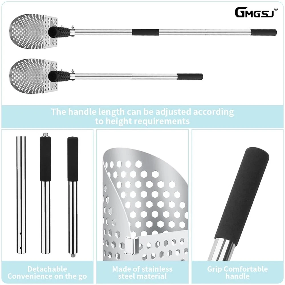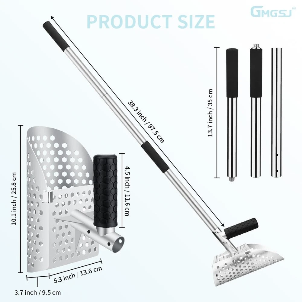 Heavy Duty Sand Scoop for Metal Detecting - Beach Screen Treasure Hunts, Sand Shovels, Metal Detector Detection Accessories, and Digging Tools Product Details Scent: Long Handle Sand Scoop Brand: GMGSJ MPN: GMW23 UPC: Does not apply EAN: Does not apply Product Dimensions: 10 x 5 x 7 inches Item Weight: 4.07 pounds Manufacturer: GMGSJ Country of Origin: China Item model number: GMW23 Made of fine quality stainless steel, wear-resistant, not easy to rust. Compact and lightweight.Light stainless steel sand spoon, very suitable for detecting sand and water metal. No need to use your hands to sift through sand.Used smallest Hexahedron Holes (8mm),It's improves the sand seeping.The holes allow sand to easily exit the scoop while keeping your treasure in. Comfortable Grip.Once your metal detector has found a target area, simply scoop the sand and shake from side to side, the sand will fall through the holes and your findings will be unveiled. This tool is great accessories for metal detection and a must-have for adults on the beach.Whether you like metal detection, digging rocks on any terrain, it can help you easily find historical relics, coins, jewelry and other hidden treasures. It is made of stainless steel, which is very durable.Easily retrieve coins and other metal objects of value.