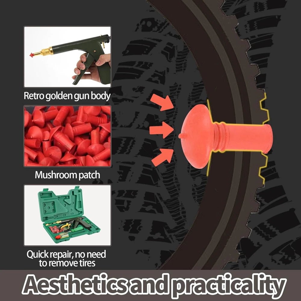 Tire Repair Kit with Plugs Mushroom Tire Plug Kit Tire Patch Kit Heavy Duty Tyre 【Automatic Repair】Puncture repair without removing the tire 【Easy to Use】The head of the mushroom plug secures the puncture from the inside and the stem seals the punctured line, providing a permanent solution This is a friendly designed product and mid-sized, which makes it portable for long journeys. 【Widely Applicable】For all tubeless tire punctures. Mushroom plugs are made from a unique combination of rubber that won't wear out over time compared to traditional piercing strips Better Sealing is provided as the Plugs act as rivets and grips the tire from inside Product Description Item model number btq-2 Country of Origin China Manufacturer Part Number btq-2 Item Weight 2.62 pounds Model btq Package Dimensions 13.11 x 7.72 x 2.01 inches Complimentary Shipping and Easy Returns Need to return something? Enjoy our 30-day hassle-free return policy! Take advantage of free shipping across all 48 contiguous states! Your order will be dispatched within 1-2 business days once payment is confirmed. Your Opinion Matters! Your happiness is our main goal! We welcome your feedback! If you encounter any problems, reach out to us right away, and we’ll be here to help. Explore the Extraordinary! Our collection showcases fascinating products that are sure to capture your attention. What surprises await you? Delve in and discover unique items that enrich your daily life. Don't miss the amazing things we have in store for you!