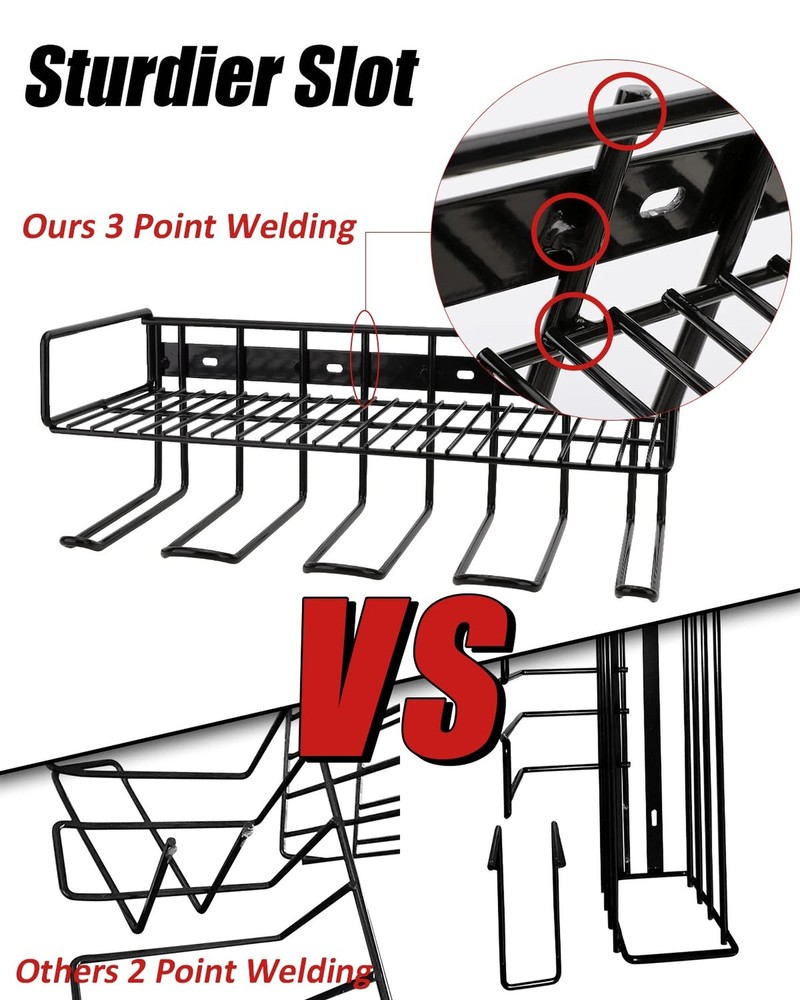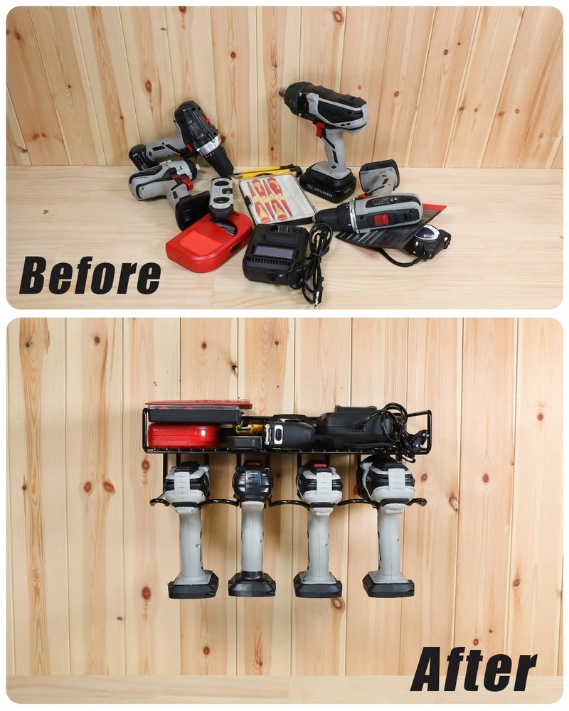 Heavy Duty Tool Organizer, 16"W x 7.48"H x 5.51"D, 4 Wall Mount Anchors, 3.95" Between Slots, Sturdy Steel Construction, Ideal for Power Tools Product Details Material: Alloy Steel Color: 1pk-2layer-BLK Special Feature: Durable,Heavy Duty Product Dimensions: 5.51"D x 16"W x 7.48"H Shelf Type: Floating Shelf Material: Alloy Steel Color: 1pk-2layer-BLK Special Feature: Durable,Heavy Duty Product Dimensions: 5.51"D x 16"W x 7.48"H Shelf Type: Floating Shelf Number of Shelves: 1 Room Type: Garage Finish Type: Powder Coated Assembly Required: No Mounting Type: Wall Mount Recommended Uses For Product: Tools Included Components: Hardware Item Weight: 1 Pounds Brand: WellMall Style: 2lyr-1Pack Shelf Weight Capacity: 80 Pounds Is Customizable: No UPC: 672352808704 672352808285 Manufacturer: ?United Innovations Part Number: Item Weight: 1 pounds Item model number: HM-DR001 Finish: Powder Coated Shape: Rectangular Item Package Quantity: 1 Number Of Pieces: 1 Special Features: Durable,Heavy Duty Usage: tool box organizer Batteries Included?: No Batteries Required?: No Date First Available: September 2, 2021 [Well Organized] WellMall power tool organizer can turn your tools mess workbench or wasted wall space into a tidy and high efficiency working place, which by a glance at the all tools on the wall mount tool holder. Especially for power tools like drills. [Much More Loading Capacity] This power tool holder with heavy duty design would help you to load maximum 100 lb tools by using all 4 wall mount anchors. This power tool storage, for top shelf max load 40 lb and below 4 tool slots with max capacity 80 lb. [Sturdier Slots] By updating with 3 point welding (others just 2 point welding), this tools organizer will help your tool rack's slots much sturdy. Preventing drill holder wall mount won't be broke and bent easily, which can protect your power tools. [Compact Design & Muti-use Workplace] 16" width, 7.48" height and 5.51" depth, WellMall tool organizers and storage holder with 4 installation holes and 3.95inch between each would be a ideal choice for mounting on the correct pegboard. Also a great choice for be mounted on the wood wall or cement wall, idea as workshop organizers and storage. [After-sales service] About any electric tool rack installation questions you can contact us at any time, and best service & help will be provided. Also this garage organization is perfect for Father's Day, and is a great option as gift for Dad, Boyfriend, Man & Brothers.
