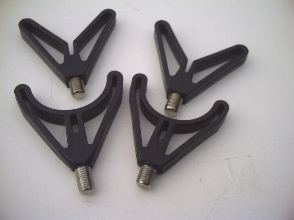 Heavy Duty V and U Rod Rest Heads. Perfect for all Buzzer Bars and Bank Sticks. Made from Heavy Duty Black Plastic. Metal Screw Thread. V Head has a Line Drop. Available in many different combinations; 1 x U Head 1 x V Head & 1 x U Head 2 x V Head & 2 x U Head V Head approx 65mm wide x 70mm high U Head approx 60mm wide x 65mm high Sorry, No Collections or Pick Ups Possible.