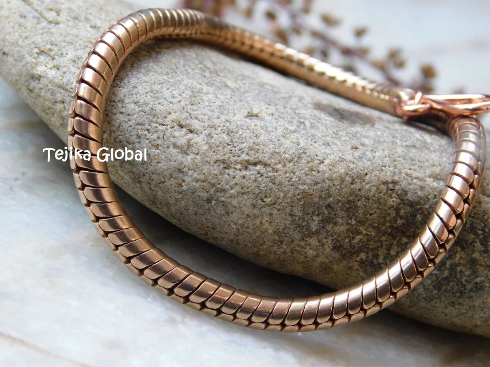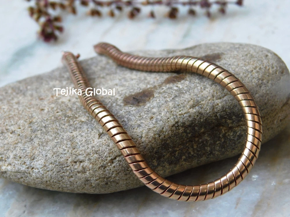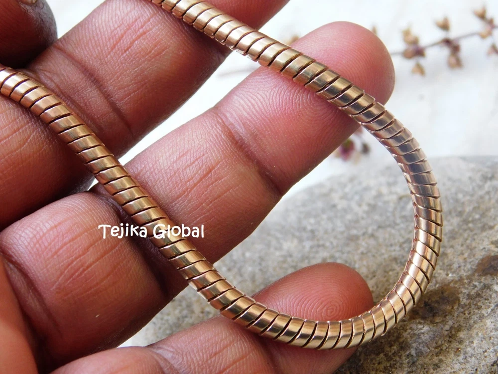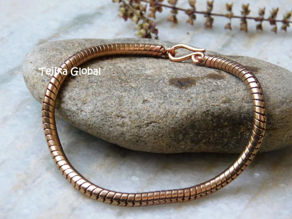 Heavy Snake Chain Link Pure Copper Bracelet 5MM Arthritis Pain Relief Bracelet, Materials : Pure Copper Bracelet Length : 6, 6.5, 7, 7.5, 8, 8.5, 9, 9.5 10 Inch, Style : Boho & hippie This heavy chain link bracelet is made of pure copper and is perfect for men who suffer from arthritis pain. The stylish design features a bold and sturdy chain that is both fashionable and functional. The brand is well-known for its high-quality jewelry, and this bracelet is no exception. The copper material is believed to have healing properties and can help alleviate joint pain and stiffness. The bracelet is ideal for everyday wear and can be worn alone or stacked with other bracelets for a trendy look. Whether you're looking for a stylish accessory or relief from arthritis pain, this copper bracelet is the perfect choice.