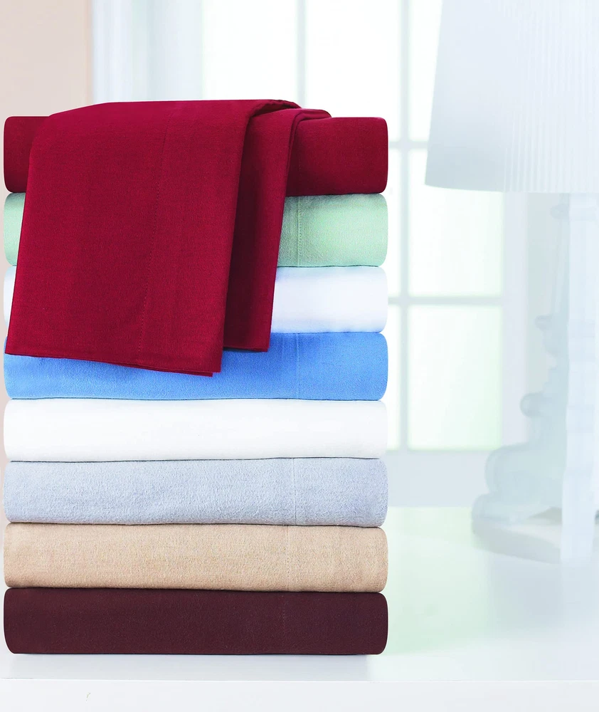 Rest well in cozy heavy weight flannel comfort with this super soft cotton sheet set. These sheets come in your choice of solid colors or prints to add the perfect accent to any bedroom decor. FABRIC: Double Brushed Cotton Flannel with velvet feel - Oeko-Tex Certification: Made in Green certification from Oeko-Tex. Tested for harmful substances and produced sustainably in accordance with Oeko-Tex guidelines. EXTRA SIZE: Oversized flat sheet and pillow cases. Fitted Sheet fits up to 16" Mattress and has elastic all around EUROPEAN CLOSURE ON THE PILLOWCASES: The pillowcase have a flap on side so the pillow hides under the flap and is not visible from the pillowcase opening. EASY CARE - Made of fine material that holds up to repeated washing. Washing Instructions: Please see sewn-in care label for care instructions. Set Includes: Twin set: flat sheet: 70" by 100", fitted sheet: 39" by 75" (fits mattresses up to 15" deep) and pillowcases: 21" by 31"