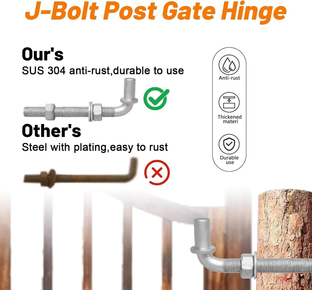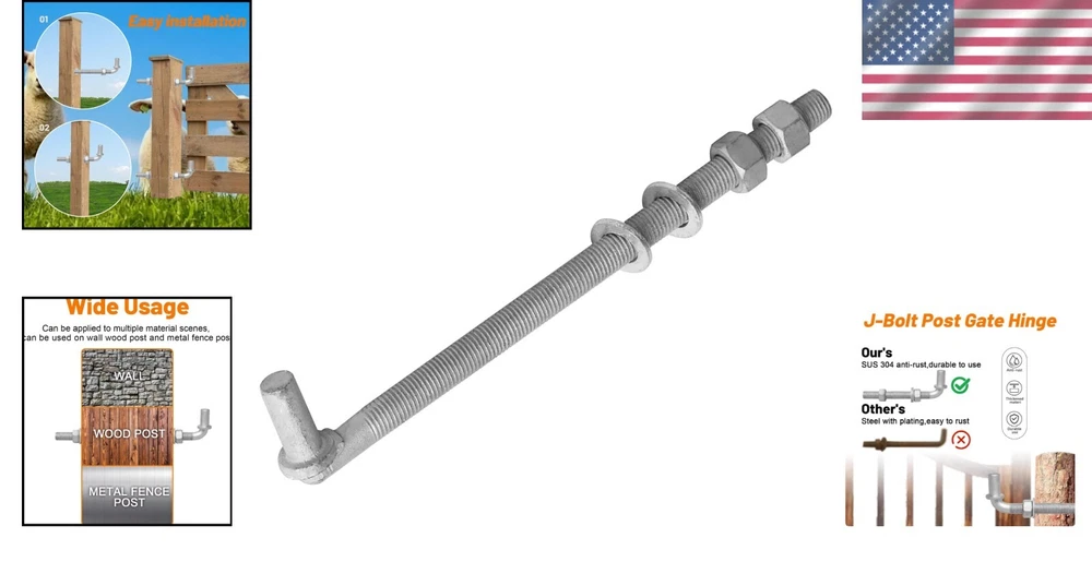 Heavy-Duty 12" J-Bolt Gate Hinges Set with Nuts & Washers - Unfinished Design ‹ › ‹ › ‹ › ‹ › ‹ › ‹ › ‹ › ‹ › Heavy-Duty 12" J-Bolt Gate Hinges Set - Includes Nuts & Washers - Unfinished Design Features: Overall length of 12" with a thread length of 9.5" for versatile installation. Gate hinge pin measures 5/8" for a secure fit. Fabricated from high-quality, durable galvanized steel. Designed for superior hardness, durability, corrosion resistance, and rust prevention. Long-lasting service life—ideal for outdoor use. Benefits: Reliable strength and durability, perfect for securing gates and fences. Easy installation process makes setup a breeze, no complicated tools required. Versatile applications for both indoor and outdoor use on various surfaces. Comes with all necessary components; no need to purchase additional items. Why choose our Heavy-Duty J-Bolt Gate Hinges? Upgrade your gate's reliability with our Heavy-Duty 12" J-Bolt Gate Hinges, crafted from premium galvanized steel to ensure exceptional durability and resistance to the elements. Each hinge is designed for strength, ensuring that your gates function seamlessly for years to come. With an easy installation process and a wide range of applications, you can trust these hinges to meet your diverse needs, whether it's securing a fence or completing a farm turnstile. Every set includes 4 hinges, accompanied by matching nuts and washers, so you have everything at your fingertips. Elevate your outdoor setup—choose our Heavy-Duty J-Bolt Gate Hinges for unmatched strength and reliability today! Shipping Free & Fast Shipping - We offer free shipping to most of the USA with a normal delivery time of 3-7 days. However, due to the current situation, additional delivery time (up to 3 weeks) may be required for some items. Alternative Carriers - We may use alternative carriers (e.g. USPS, FedEx, UPS, etc.) to ensure your package arrives safely and on time. Due to the use of multiple carriers, we are unable to provide a tracking number automatically. Handling Time - Orders are processed and shipped within 1-2 business days of receiving cleared payment. Shipping Restrictions - Shipping to Alaska, Hawaii, Puerto Rico, Guam, and other US territories may incur shipping charges or delivery restrictions. Please contact us before ordering, or your order can be refunded/cancelled. State Restrictions - There may be restrictions based on your state of purchase. For example, certain items may not be shipped to California due to state regulations. Contact for Tracking Updates - If you require tracking updates or have any concerns about the delivery of your order, please feel free to contact us, and we will be happy to assist you. Return 30-Day Hassle-Free Returns - We want you to be completely satisfied with your purchase. If you are not, you can return the item within 30 days of receiving it for a full refund or exchange. Easy Return Process - To start a return, simply contact us and we will provide you with a prepaid return shipping label and detailed instructions. Restocking Fee - There are no restocking fees for returns. However, the buyer is responsible for return shipping costs if the return is not due to a seller's error. Refund Processing Time - Refunds will be processed within 5 business days of receiving the returned item in its original condition. Payment We accept all major credit cards, PayPal, and Apple Pay for your convenience. Your payment information is secure and encrypted to ensure a safe and seamless transaction. Please complete your payment within 3 days of purchase to avoid any delays in shipping. Feedback Your feedback is extremely important to us. We strive to provide the best products and customer service possible. If you are satisfied with your purchase, please take a moment to leave us a positive review. If you have any concerns or issues with your order, please contact us before leaving negative feedback. We are committed to resolving any problems and ensuring your satisfaction. Contact Us If you have any questions or concerns, please feel free to reach out to our customer support team. You can contact us through the eBay messaging system. We are available Monday to Friday, 9:00 am to 5:00 pm EST, and we will do our best to respond to your inquiry within 24 hours. Buy it now and enjoy a pleasant shopping experience! UPC: Not Set Model: Not Set Unit Quantity: 4 Material: Steel,galvanized steel,alloy steel Suitable For: Chain Link Fence,wooden posts,walls,metal fence posts,farm turnstiles Features: Commercial,heavy-duty,durability,corrosion resistance,rust prevention,easy installation Items Included: Nuts & Washers,Nuts,Washers Brand: Unbranded Type: J-Bolt Gate Hinge Hinge Length: Not Set Color: Metallic Finish: Unfinished Item Width: Not Set Item Height: Not Set MPN: Not Set Number in Pack: 4 Item Depth: 0.625 in Country/Region of Manufacture: Not Set Manufacturer Warranty: Not Set Item Weight: 2 lb Unit Type: lb Fixings Supplied: Not Set