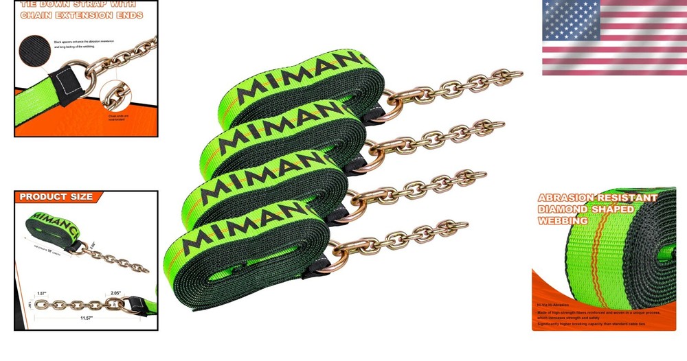 Durable Weather Resistant Tow Straps 2" x 16' with Chain Extensions - 4 Pack ‹ › ‹ › ‹ › ‹ › ‹ › ‹ › ‹ › ‹ › ‹ › ‹ › Durable Weather Resistant Tow Straps - 2" x 16" with Chain Extensions 4 Pack Features: High-Quality Polyester Webbing: Engineered to withstand the rigors of heavy-duty hauling, ensuring maximum durability and weather resistance. Exceptional Load Capacity: With a safe workload of 4,400 pounds and a high breaking strength of 13,200 pounds, these straps are designed for large, heavy loads. Heavy-Duty Chain Extensions: Comes equipped with robust 5/16" x 12" chain extensions forged from heat-treated steel alloy, offering superior corrosion resistance. Versatile Replacement Strap: Perfect as a replacement strap for 8 Point Roll Back Vehicle Tie Down Kits, adaptable for various towing and transportation applications. User-Friendly Design: Easy to install and operate, these replacement tie down straps allow you to quickly secure your cargo with minimal hassle. Why Choose Our Durable Tow Straps? Every journey begins with the right preparations. Our Durable Weather Resistant Tow Straps are the ultimate solution for professional auto transporters and anyone requiring reliable cargo security. Crafted for strength and resilience, these straps ensure that your loads arrive safely at their destination, granting you peace of mind. Whether you need to secure vehicles for transporting, manage a heavy load for a project, or simply need a dependable tie-down solution, our straps offer unmatched performance and reliability. Upgrade your towing game with the best in the market! Purchase Today! Don’t compromise on safety and durability. Order your pack of Durable Weather Resistant Tow Straps now and transport with confidence! Shipping Free & Fast Shipping - We offer free shipping to most of the USA with a normal delivery time of 3-7 days. However, due to the current situation, additional delivery time (up to 3 weeks) may be required for some items. Alternative Carriers - We may use alternative carriers (e.g. USPS, FedEx, UPS, etc.) to ensure your package arrives safely and on time. Due to the use of multiple carriers, we are unable to provide a tracking number automatically. Handling Time - Orders are processed and shipped within 1-2 business days of receiving cleared payment. Shipping Restrictions - Shipping to Alaska, Hawaii, Puerto Rico, Guam, and other US territories may incur shipping charges or delivery restrictions. Please contact us before ordering, or your order can be refunded/cancelled. State Restrictions - There may be restrictions based on your state of purchase. For example, certain items may not be shipped to California due to state regulations. Contact for Tracking Updates - If you require tracking updates or have any concerns about the delivery of your order, please feel free to contact us, and we will be happy to assist you. Return 30-Day Hassle-Free Returns - We want you to be completely satisfied with your purchase. If you are not, you can return the item within 30 days of receiving it for a full refund or exchange. Easy Return Process - To start a return, simply contact us and we will provide you with a prepaid return shipping label and detailed instructions. Restocking Fee - There are no restocking fees for returns. However, the buyer is responsible for return shipping costs if the return is not due to a seller's error. Refund Processing Time - Refunds will be processed within 5 business days of receiving the returned item in its original condition. Payment We accept all major credit cards, PayPal, and Apple Pay for your convenience. Your payment information is secure and encrypted to ensure a safe and seamless transaction. Please complete your payment within 3 days of purchase to avoid any delays in shipping. Feedback Your feedback is extremely important to us. We strive to provide the best products and customer service possible. If you are satisfied with your purchase, please take a moment to leave us a positive review. If you have any concerns or issues with your order, please contact us before leaving negative feedback. We are committed to resolving any problems and ensuring your satisfaction. Contact Us If you have any questions or concerns, please feel free to reach out to our customer support team. You can contact us through the eBay messaging system. We are available Monday to Friday, 9:00 am to 5:00 pm EST, and we will do our best to respond to your inquiry within 24 hours. Buy it now and enjoy a pleasant shopping experience! UPC: Not Set Model: Not Set Item Width: Not Set Item Length: Not Set Item Height: Not Set Item Diameter: 2 in Item Weight: 12.25 lb Unit Quantity: 4 Brand: Unbranded Type: Ratchet Tie Down Strap End Type: Chain Hook Tie Material: Polyester Breaking Strength: More than 10 MPN: Not Set Working Load Limit: 3 End Material: Steel Country/Region of Manufacture: Not Set Color: Green Manufacturer Warranty: Not Set Unit Type: ft