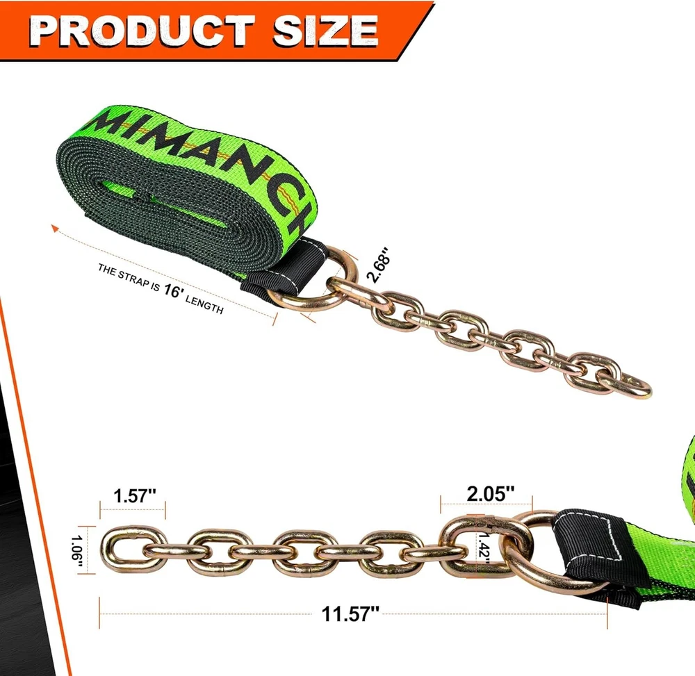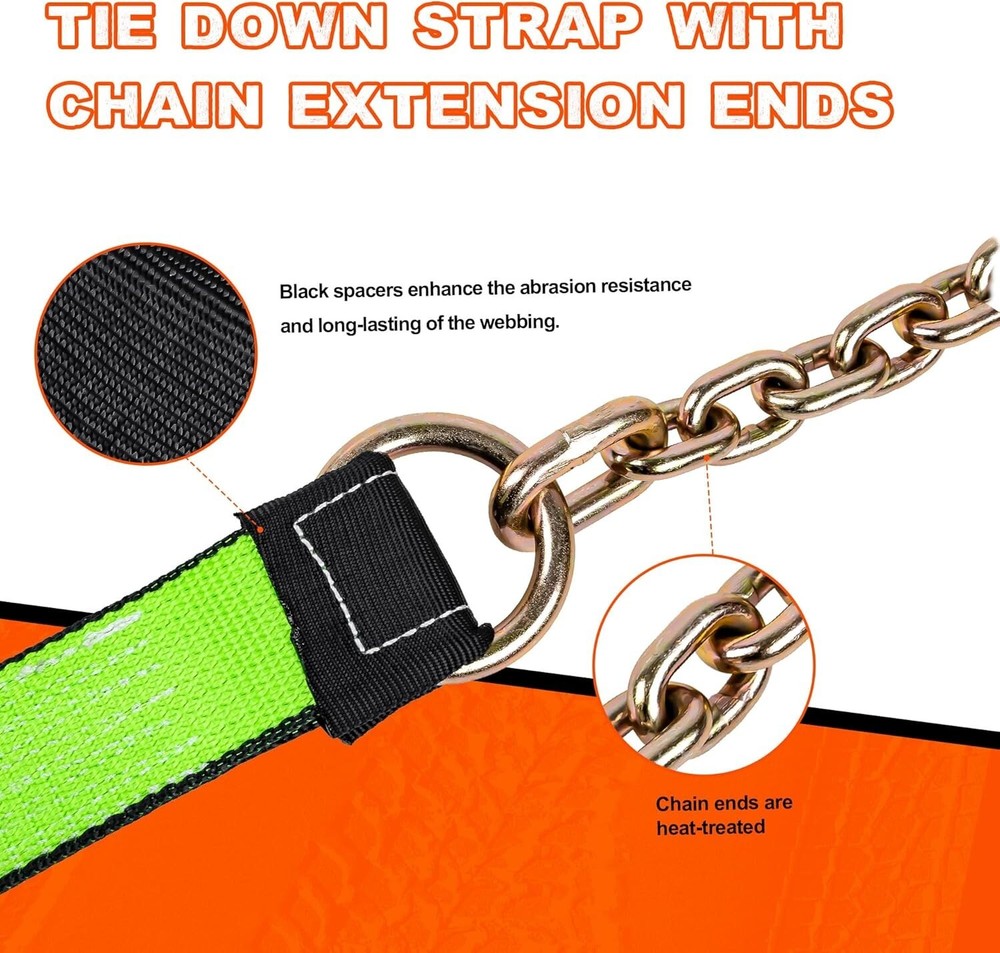 These tow straps are a lifesaver for heavy-duty jobs! The high-quality polyester webbing holds up against tough weather, and the 13,200 lb. break strength gives serious peace of mind. The included chain extensions add extra versatility, making them perfect for trucks, trailers, or farm equipment. Super sturdy and reliable—worth every penny!