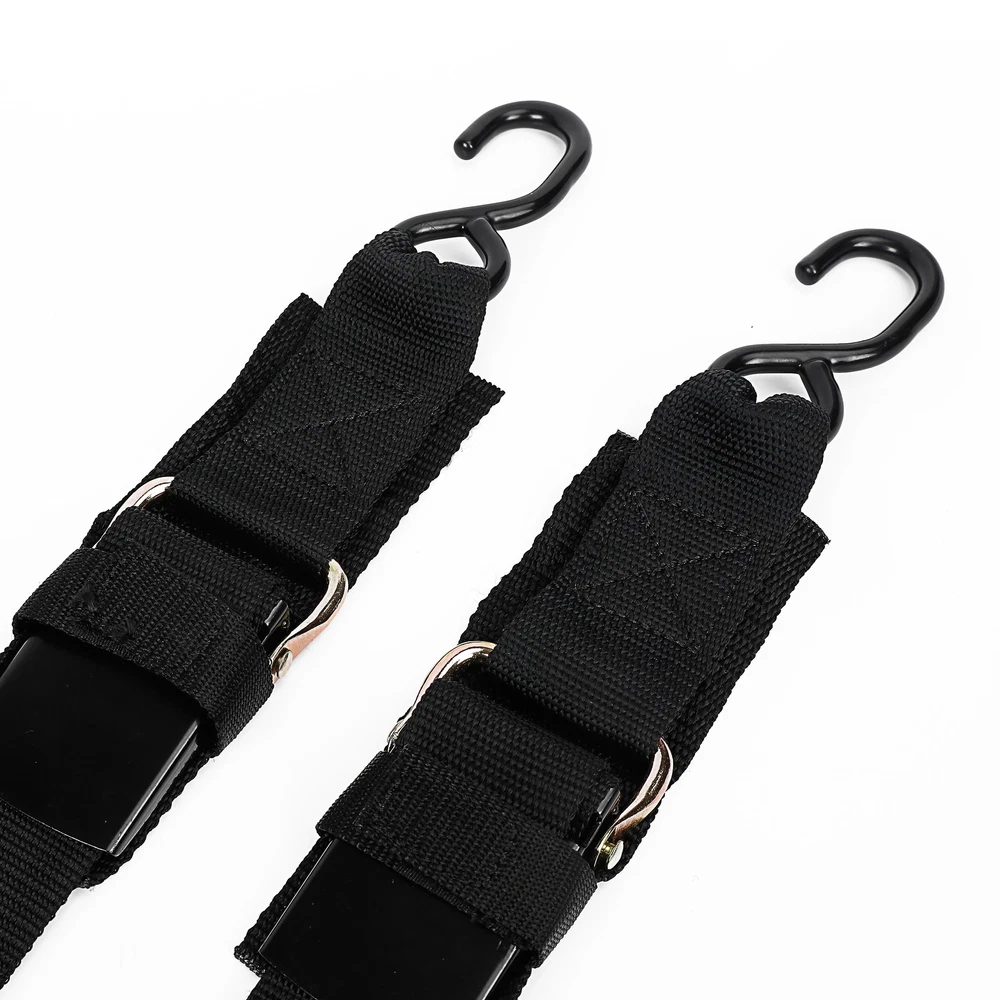Measuring 2 inches wide and 4 feet long , this tie-down strap ensures reliable boat security during transportation. With a maximum working load limit of 400 lbs and a rated capacity of 1200 lbs , it is built to handle heavy-duty applications. The durable webbing is designed to resist rot, oils, gasoline, and most chemicals , providing long-lasting protection in harsh environments. Equipped with a quick-release (over-center) buckle , the tie-down makes securing and releasing your boat fast and easy. The rubberized S-hooks offer additional protection by resisting corrosion and securely holding your load in place. Model: BT6299 Dimensions: 2-Inch width x 4-Feet length Maximum Working Load Limit: 400 lbs Rated Capacity: 1200 lbs Webbing: Resistant to rot, oils, gasoline, and most chemicals Buckle: Quick-release over-center design Hooks: Rubberized S-hooks resist corrosion for added durability