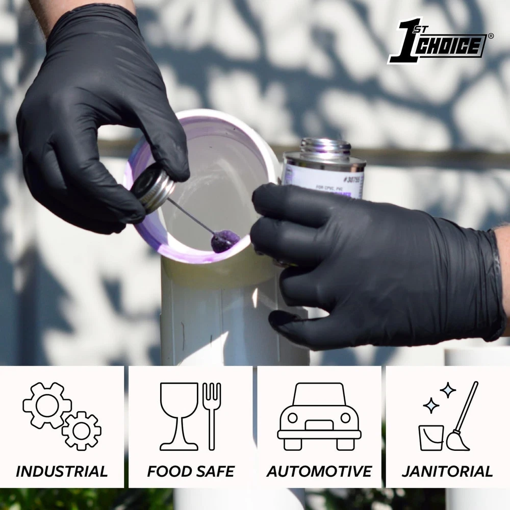 Durable 5 Mil Black Nitrile Gloves - Latex-Free and Industrial-Grade Protection ‹ › ‹ › ‹ › ‹ › ‹ › ‹ › ‹ › ‹ › ‹ › Durable 5 Mil Black Nitrile Gloves Experience unparalleled protection with our industrial-grade, latex-free black nitrile gloves. Designed to cater to those seeking durability without compromising comfort, these gloves are perfect for a variety of applications. Key Features: Extended Sizing: Available in Large, XL, and XXL, ideal for larger hands. Perfectly tailored for automotive, mechanic, and general cleaning tasks. Latex-Free Comfort: Enjoy the superior fit and feel of natural rubber gloves without the risk of latex allergies. A must-have in every cleaning supplies arsenal. Enhanced Puncture Resistance: With 3 times more puncture resistance than standard latex gloves, our 5 mil nitrile construction ensures prolonged use while delivering reliable protection from automotive chemicals and cleaning solutions. Robust Barrier: Trust in a glove that provides durable defense against grease, gasoline, and a spectrum of petroleum-based chemicals. Multi-Purpose Use: Commonly sought after for a plethora of tasks including mechanics, food prep, barbecue grilling, cleaning, and more. Perfect for the kitchen, workshop, and beyond. Why Choose Our Black Nitrile Gloves? Whether you're working in a garage, preparing food, or cleaning up after a BBQ, these gloves deliver the ultimate solution in strength and comfort. The latex-free design caters to those with allergies and ensures a snug fit for extended wear. Don’t compromise on safety and comfort. Equip yourself with our Durable 5 Mil Black Nitrile Gloves and elevate your protective gear today! Care Instructions: Hand Wash only. Shipping Free & Fast Shipping - We offer free shipping to most of the USA with a normal delivery time of 3-7 days. However, due to the current situation, additional delivery time (up to 3 weeks) may be required for some items. Alternative Carriers - We may use alternative carriers (e.g. USPS, FedEx, UPS, etc.) to ensure your package arrives safely and on time. Due to the use of multiple carriers, we are unable to provide a tracking number automatically. Handling Time - Orders are processed and shipped within 1-2 business days of receiving cleared payment. Shipping Restrictions - Shipping to Alaska, Hawaii, Puerto Rico, Guam, and other US territories may incur shipping charges or delivery restrictions. Please contact us before ordering, or your order can be refunded/cancelled. State Restrictions - There may be restrictions based on your state of purchase. For example, certain items may not be shipped to California due to state regulations. Contact for Tracking Updates - If you require tracking updates or have any concerns about the delivery of your order, please feel free to contact us, and we will be happy to assist you. Return 30-Day Hassle-Free Returns - We want you to be completely satisfied with your purchase. If you are not, you can return the item within 30 days of receiving it for a full refund or exchange. Easy Return Process - To start a return, simply contact us and we will provide you with a prepaid return shipping label and detailed instructions. Restocking Fee - There are no restocking fees for returns. However, the buyer is responsible for return shipping costs if the return is not due to a seller's error. Refund Processing Time - Refunds will be processed within 5 business days of receiving the returned item in its condition. Payment We accept all major credit cards, PayPal, and Apple Pay for your convenience. Your payment information is secure and encrypted to ensure a safe and seamless transaction. Please complete your payment within 3 days of purchase to avoid any delays in shipping. Feedback Your feedback is extremely important to us. We strive to provide the best products and customer service possible. If you are satisfied with your purchase, please take a moment to leave us a positive review. If you have any concerns or issues with your order, please contact us before leaving negative feedback. We are committed to resolving any problems and ensuring your satisfaction. Contact Us If you have any questions or concerns, please feel free to out to our customer support team. You can contact us through the eBay messaging system. We are available Monday to Friday, 9:00 am to 5:00 pm EST, and we will do our best to respond to your inquiry within 24 hours. Buy it now and enjoy a pleasant shopping experience! Unit Quantity: 100 Glove Size: L Material: Nitrile Rubber