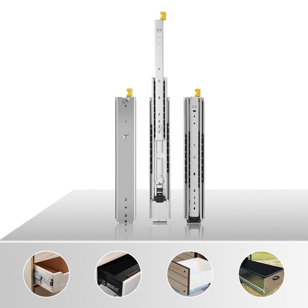 These heavy-duty drawer slides are a game-changer! The smooth ball-bearing glide makes opening and closing effortless, even with heavy loads. The sturdy cold-rolled steel construction feels premium and durable, while the locking mechanism adds extra security. Perfect for workshop drawers or heavy storage—no more sticking or wobbling. Installation was straightforward, and they've held up perfectly under daily use. Definitely worth the upgrade!