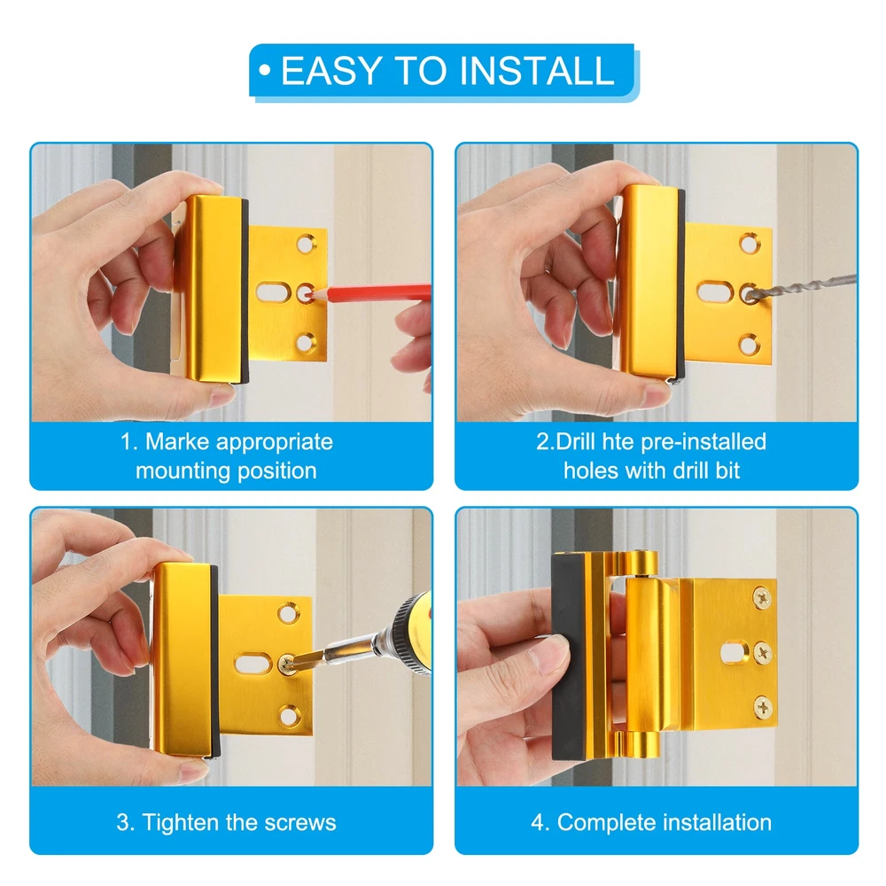 Document The high-security door reinforcement locks help prevent doors from being knocked away enhancing your home security and keeping you and your family safe! Make sure none of the doors can be opened from the outside.SpecificationColor: BrownMaterial: aluminum AlloyMaximum Withstand Capacity: 800 LbsMounting Plate Size: 63.5 x 56 x 1.95 mm/ 2.5 x 2.2 x 0.08 inch (L*W*Thickness)Lock Part Size: 76 x 25.4 x 35 mm/ 2.99 x 1 x 1.38 inch (L*W*H)Screw Mounting Distance: 20mm/ 0.79 inchScrew Length: 28.9mm/ 1.14 inchPacking List: 1 x Door Reinforcement Lock with 4 ScrewsAdvantage1. The security door lock is made of aluminum alloy with electroplating technology on the surface which is rust-proof moisture-proof corrosion-resistant comfortable to touch durable and has a long service life.2. The home anti-theft door lock is a tamper-resistant child-safe lock that prevents unauthorized entry through lock bumping. Designed to withstand up to 800 pounds of force when opening an interior door it enhances home security and prevents doors from being knocked away keeping your family safe.InstructionEquipped with 4 pieces of 28.9mm(1.13") screws and operation manual to help ensure an easy and quick installation.To unlock pinch the top and bottom of the door lock. Then slide the lock sideways along the door towards the hinge direction until it can be pulled outward.NOTE: Please measure the door plate thickness before ordering. Home Security Door Lock Aluminum Reinforcement Lock Withstand 800Lbs Brown The high-security door reinforcement locks help prevent doors from being knocked away enhancing your home security and keeping you and your family safe! Make sure none of the doors can be opened from the outside. Specification Color: Brown Material: aluminum Alloy Maximum Withstand Capacity: 800 Lbs Mounting Plate Size: 63.5 x 56 x 1.95 mm/ 2.5 x 2.2 x 0.08 inch (L*W*Thickness) Lock Part Size: 76 x 25.4 x 35 mm/ 2.99 x 1 x 1.38 inch (L*W*H) Screw Mounting Distance: 20mm/ 0.79 inch Screw Length: 28.9mm/ 1.14 inch Packing List: 1 x Door Reinforcement Lock with 4 Screws Advantage 1. The security door lock is made of aluminum alloy with electroplating technology on the surface which is rust-proof moisture-proof corrosion-resistant comfortable to touch durable and has a long service life. 2. The home anti-theft door lock is a tamper-resistant child-safe lock that prevents unauthorized entry through lock bumping. Designed to withstand up to 800 pounds of force when opening an interior door it enhances home security and prevents doors from being knocked away keeping your family safe. Instruction Equipped with 4 pieces of 28.9mm(1.13") screws and operation manual to help ensure an easy and quick installation. To unlock pinch the top and bottom of the door lock. Then slide the lock sideways along the door towards the hinge direction until it can be pulled outward. NOTE: Please measure the door plate thickness before ordering. Hot Item Payment 1.We accept eBay payment . 2.Payment must be received within 7 business days of auction closing. Shipping 1.We ship to your eBay or Paypal address. Please make sure your eBay and Paypal address is correct before you pay. 2.Items will be shipped within 1-3 business day when we received payment. 3.Delivery time depends on destination and other factors. Description Policy Home Security Door Lock Aluminum Reinforcement Lock Withstand 800Lbs Brown The high-security door reinforcement locks help prevent doors from being knocked away enhancing your home security and keeping you and your family safe! Make sure none of the doors can be opened from the outside. Specification Color: Brown Material: aluminum Alloy Maximum Withstand Capacity: 800 Lbs Mounting Plate Size: 63.5 x 56 x 1.95 mm/ 2.5 x 2.2 x 0.08 inch (L*W*Thickness) Lock Part Size: 76 x 25.4 x 35 mm/ 2.99 x 1 x 1.38 inch (L*W*H) Screw Mounting Distance: 20mm/ 0.79 inch Screw Length: 28.9mm/ 1.14 inch Packing List: 1 x Door Reinforcement Lock with 4 Screws Advantage 1. The security door lock is made of aluminum alloy with electroplating technology on the surface which is rust-proof moisture-proof corrosion-resistant comfortable to touch durable and has a long service life. 2. The home anti-theft door lock is a tamper-resistant child-safe lock that prevents unauthorized entry through lock bumping. Designed to withstand up to 800 pounds of force when opening an interior door it enhances home security and prevents doors from being knocked away keeping your family safe. Instruction Equipped with 4 pieces of 28.9mm(1.13") screws and operation manual to help ensure an easy and quick installation. To unlock pinch the top and bottom of the door lock. Then slide the lock sideways along the door towards the hinge direction until it can be pulled outward. NOTE: Please measure the door plate thickness before ordering. Hot Item Payment 1.We accept eBay payment . 2.Payment must be received within 7 business days of auction closing. Shipping 1.We ship to your eBay or Paypal address. Please make sure your eBay and Paypal address is correct before you pay. 2.Items will be shipped within 1-3 business day when we received payment. 3.Delivery time depends on destination and other factors.