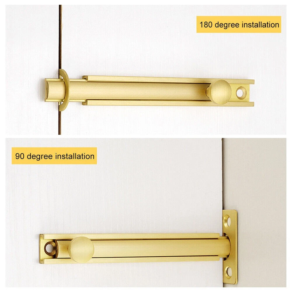 Beschreibung Features: *Color and Size Options:This barn slide bolt latch is available in two colors, black and gold, allowing you to choose the product that matches your home decor. It also comes in three size options: 2inch, 3inch, and 4inch, providing flexibility for different door sizes. *Easy Installation: The latch can be easily installed and removed without the need for any tools. Screw the bolt into the door frame using a screwdriver(not included), making it a convenient and hassle-free solution for securing your home. *Sturdy and-Resistant:Crafted from high-quality brass, this door latch is designed to resist and rust, long-lasting durability. You can rely on its sturdiness and reliability to keep your doors secure for years to come. *Secure and Reliable: This concealed gate latch offers reliable security for your doors. With its sturdy construction and, you can trust that your will be effectively protected against theft and intrusion. Specifications: *Product Name:Barn Door Latch Lock *Material:Brass *Options:Black 2inch,Black 3inch , Black 4inch,Gold 2inch,Gold 3inch,Gold 4inch *Size:Approx. 2inch, 3inch, 4inch 2inch Length:50mm Extendable length:11mm Hole spacing:40mm 3inch Length:75mm Extendable length:11mm Hole spacing:65mm 4inch Length:100mm Extendable length:25mm Hole spacing:86mm *Color:Black, Gold Package Content: set of Barn Door Latch Lock Note: . The real color of the item may be slightly different from the pictures shown on website caused by many factors such as brightness of your monitor and light brightness. 2. Please allow slight manual measurement deviation for the data. POLICES Shipping Payment WARRANTY We only ship to confirmed ebay Order addresses. Please comfirm that your Order address is in line with your shipping address. Please kindly note that the c ombined shipping is not provided because the shipping fee is calculated by weight. Also, the each additional item means exactly the the same color and size. It takes about 7 -15 working days to US; about 10-30 working days to other countries. Transit time may be a little delayed because of the bad weather and customs inspection . If you do not receive your item within 30 working days since payment finished, please contact us immediately for further assistance. Payment must be completed within 5 days. If you have any problems about payment, please contact us via ebay message. We strive for 100% customer satisfaction! Positive Feedback is very important to us. If you have any questions, p lease feel free to contact us via "Ask seller a question" . We will reply your email within 24 working hours.