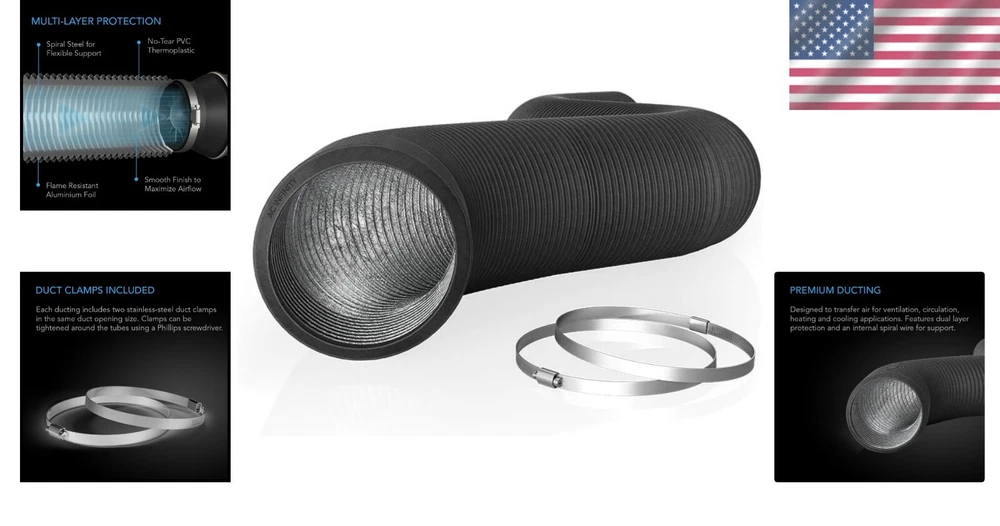 Heavy-Duty Flexible Aluminum Ducting - 10'' Diameter, 25ft for Exhaust Needs ‹ › ‹ › ‹ › ‹ › ‹ › ‹ › ‹ › Heavy-Duty Flexible Aluminum Ducting Perfect for all your exhaust needs! Specifications: Diameter: 10 inches Length: 25 feet Includes: Two stainless steel 10" duct clamps Features: Designed for ventilation applications including HVAC, dryer, grow rooms, and tents. Four-layer design makes it more durable and resistant to leaks, tears, and cuts. Steel-wire spiral structure is flexible and easy-to-install in hard to reach places. Constructed of Aluminum and thermoplastic, allowing you to shorten the tube for various applications. Benefits: Durable and long-lasting construction ensures reliable performance. Leak-resistant design saves energy and minimizes concerns about air quality. Flexibility allows for easy maneuvering and installation in tight spaces. Versatile usage, suitable for various environments and applications. Why choose our Heavy-Duty Flexible Aluminum Ducting? When it comes to exhaust needs, you deserve a solution that offers both performance and durability. Our Heavy-Duty Flexible Aluminum Ducting is precisely engineered to meet your ventilation requirements, be it for your HVAC system, dryer, or grow tent. With its four-layer design, you can trust in its resilience against leaks and cuts, while the steel-wire spiral lets you install it even in challenging locations with ease. Experience peace of mind with a ducting solution that is both flexible and robust. Invest in our Heavy-Duty Flexible Aluminum Ducting today and ensure optimal airflow for your specific needs! Shipping Free & Fast Shipping - We offer free shipping to most of the USA with a normal delivery time of 3-7 days. However, due to the current situation, additional delivery time (up to 3 weeks) may be required for some items. Alternative Carriers - We may use alternative carriers (e.g. USPS, FedEx, UPS, etc.) to ensure your package arrives safely and on time. Due to the use of multiple carriers, we are unable to provide a tracking number automatically. Handling Time - Orders are processed and shipped within 1-2 business days of receiving cleared payment. Shipping Restrictions - Shipping to Alaska, Hawaii, Puerto Rico, Guam, and other US territories may incur shipping charges or delivery restrictions. Please contact us before ordering, or your order can be refunded/cancelled. State Restrictions - There may be restrictions based on your state of purchase. For example, certain items may not be shipped to California due to state regulations. Contact for Tracking Updates - If you require tracking updates or have any concerns about the delivery of your order, please feel free to contact us, and we will be happy to assist you. Return 30-Day Hassle-Free Returns - We want you to be completely satisfied with your purchase. If you are not, you can return the item within 30 days of receiving it for a full refund or exchange. Easy Return Process - To start a return, simply contact us and we will provide you with a prepaid return shipping label and detailed instructions. Restocking Fee - There are no restocking fees for returns. However, the buyer is responsible for return shipping costs if the return is not due to a seller's error. Refund Processing Time - Refunds will be processed within 5 business days of receiving the returned item in its original condition. Payment We accept all major credit cards, PayPal, and Apple Pay for your convenience. Your payment information is secure and encrypted to ensure a safe and seamless transaction. Please complete your payment within 3 days of purchase to avoid any delays in shipping. Feedback Your feedback is extremely important to us. We strive to provide the best products and customer service possible. If you are satisfied with your purchase, please take a moment to leave us a positive review. If you have any concerns or issues with your order, please contact us before leaving negative feedback. We are committed to resolving any problems and ensuring your satisfaction. Contact Us If you have any questions or concerns, please feel free to reach out to our customer support team. You can contact us through the eBay messaging system. We are available Monday to Friday, 9:00 am to 5:00 pm EST, and we will do our best to respond to your inquiry within 24 hours. Buy it now and enjoy a pleasant shopping experience! UPC: Not Set Unit Quantity: 25 feet Smart Home Compatibility: Universal Control Style: None Power Source: None Compatible Product: Universal,HVAC,Dryer,Grow Rooms,Tents Mounting: None Material: Aluminum,Thermoplastic Smart Home Protocol: None Compatible Model: None Features: Flame Resistant,Durable,Leak Resistant,Tear Resistant,Cut Resistant,Flexible,Easy to Install Items Included: Duct Clamps Protection Properties: None Resistance Properties: None Brand: Unbranded Programmability: Non-Programmable Model: Not Set Cool Stages: None Color: Black Sensor Technology: None Thermostat Shape: None Thermostat Programmable Days: None Voltage Type: None Battery Size: None Voltage: None System Switching: None Display Size: None MPN: Not Set Compatible Brand: Not Set Number of Periods per Programmable Day: None Heat Stages: None Wire Configuration: None Year Manufactured: Not Set Country/Region of Manufacture: Not Set Manufacturer Warranty: Not Set Unit Type: Unit
