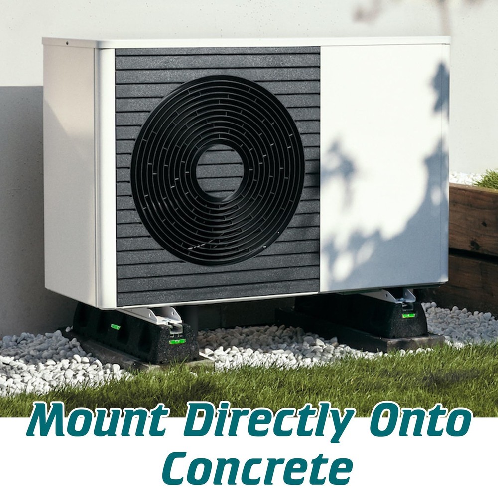 Floor Mounting Base Kit for Mini Split Air Conditioners Condensers Heat Pump System,Anti-Vibration Shock Absorbing Rubber Mounting Ground Stand.Support Up to 1100 lbs,9,000-36,000 BTU.anti-vibration pads made of strong rubber,provide sturdy support for air conditioner,perfect fixing and damping effect under heavy pressure to bear.These anti-vibration pads for mini split,help minimizes vibrations.revent the movement of the air conditioning unit, keeping it in a stable position [UNIVERSAL DESIGN]:Mini Split Air Conditioner Pad suitable for most brand outdoor Ductless Mini Split Air Conditioner Condenser,Heat Pump System,Cooling Only unit.supports up to 1100 pounds for all 2 pcs [DURABLE MATERIAL]:Our anti-vibration pads made of strong rubber,provide sturdy support for air conditioner,perfect fixing and damping effect under heavy pressure to bear.it works more efficient than other all through rubber pads [PROTECT EQUIPMENT]:Reduce structural damage caused by vibration and noise,prolong your equipment life [STABLE MOUNTING PAD]: These anti-vibration pads for mini split,help minimizes vibrations.revent the movement of the air conditioning unit, keeping it in a stable position 【DIMENSIONS】 17 -1/4" x 5" x 2-1/2'' for each base,can be directly installed in concrete or equipment pad.built-in leveler to ensure perfectly horizontal mounting