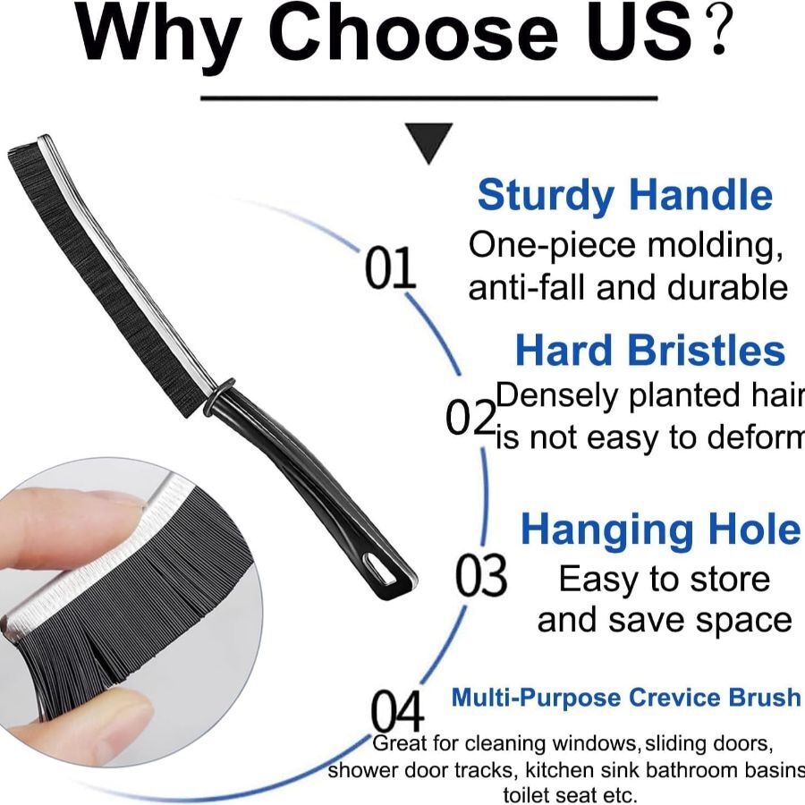 About this item Hard-Bristled Efficiency: Equipped with a robust hard-bristled brush head, this crevice gaps cleaning brush ensures maximum cleaning efficiency. The durable bristles effectively agitate and loosen stubborn dirt, allowing you to effortlessly scrub away the toughest stains and build-up. Experience the satisfaction of a thorough and deep clean every time. Durable Construction, Comfortable Grip: This hard bristle brush for cleaning is built to last, with a sturdy structure and ergonomic design. Its slim and elongated shape effortlessly reaches tight gaps and crevices, while the comfortable grip ensures easy and comfortable cleaning. Versatile Cleaning Tool: This small spaces cleaning brush is a must-have multifunctional cleaning tool that excels at tackling hard-to-reach areas and tight spaces. Whether it's narrow gaps, dead corners, or deep crevices, this crevice cleaning brush is specifically designed to remove dirt, dust, and grime with ease, leaving your surfaces spotless and immaculate. Safe for Any Surface: Worried about damaging delicate surfaces? Fear not! Our crevice cleaning tool brush is engineered to be safe for use on a wide range of materials. From bathroom tiles and kitchen countertops to window tracks and sliding door grooves, you can confidently clean without the risk of scratches or abrasions. Easy to Clean and Store: Cleaning up after cleaning is hassle-free with our small crevice cleaning brushes. Simply rinse the gap brush under running water or give it a quick wipe to remove any residue. Its compact size and ergonomic design make it effortless to store. Hang it up, tuck it away, or keep it within reach for easy access whenever you need to conquer those hard-to-reach areas. Dimensions: 9"L x 0.8"W x 0.8"H