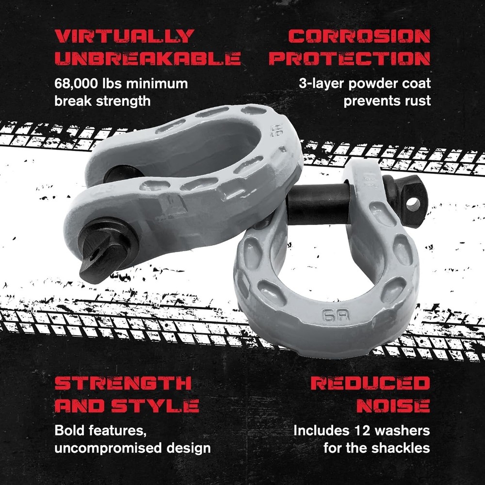 These heavy-duty D-ring shackles are a game-changer for off-road recoveries! With an insane 68,000 lbs breaking strength and corrosion-resistant coating, they handle anything you throw at them. The quick connections make recovery smooth, while the rugged build and bright color options add both reliability and visibility. Perfect for serious adventurers who need trustworthy towing gear.