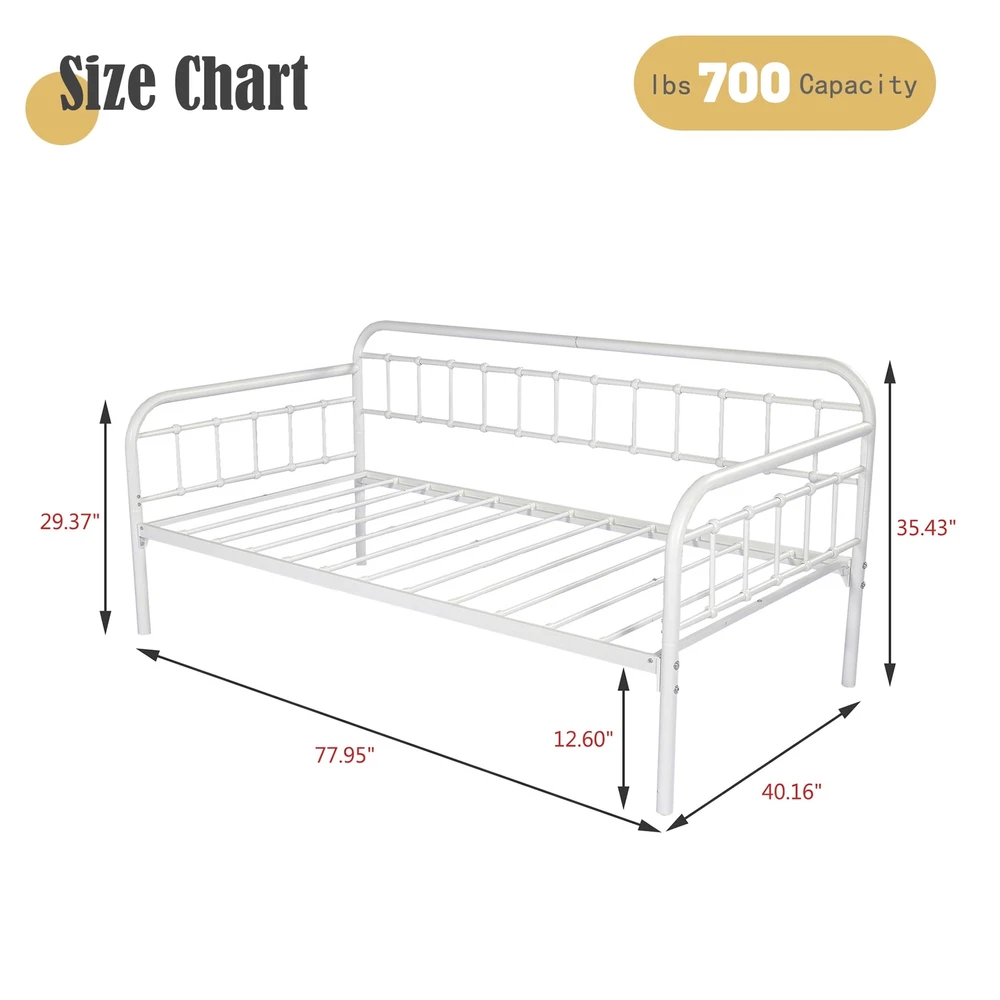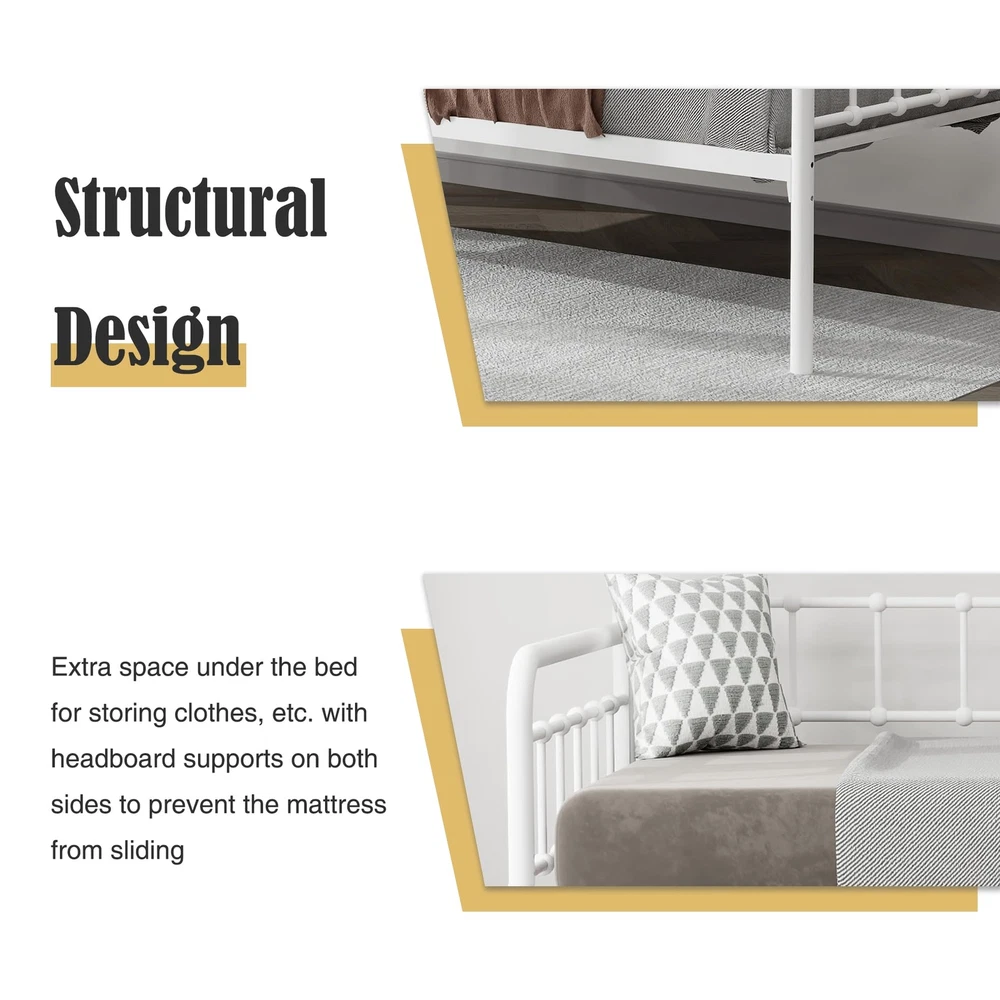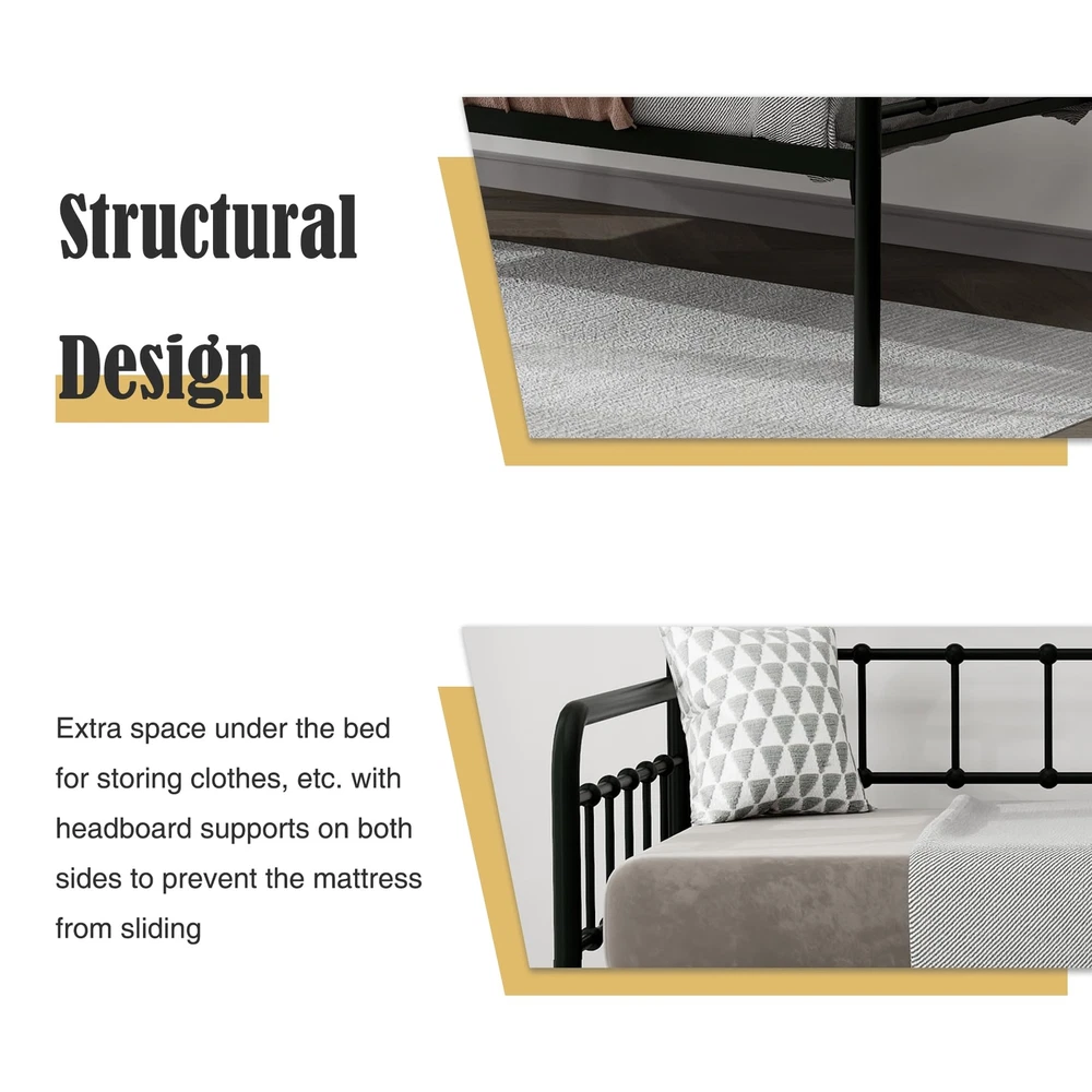 Heavy-Duty Steel Frame:Sturdy Support for Daybed Accommodates Twin Size Mattress