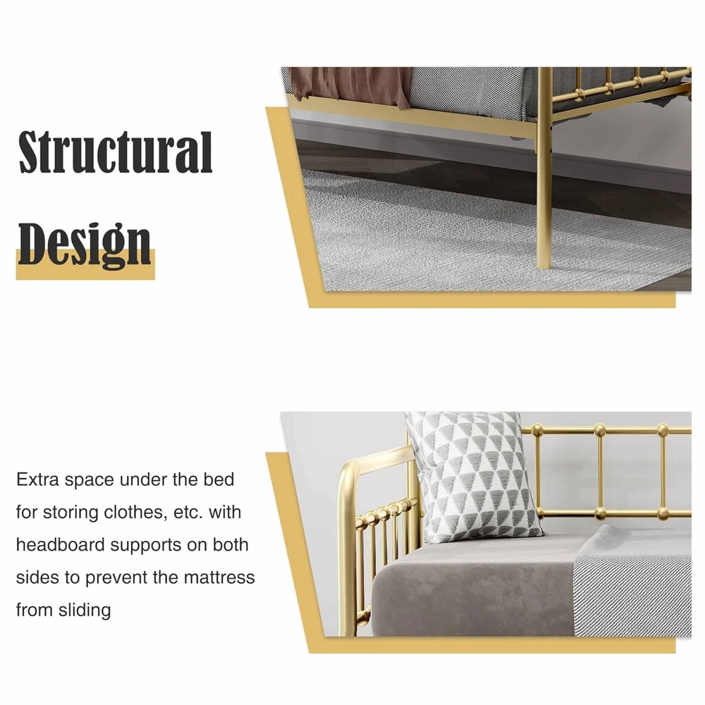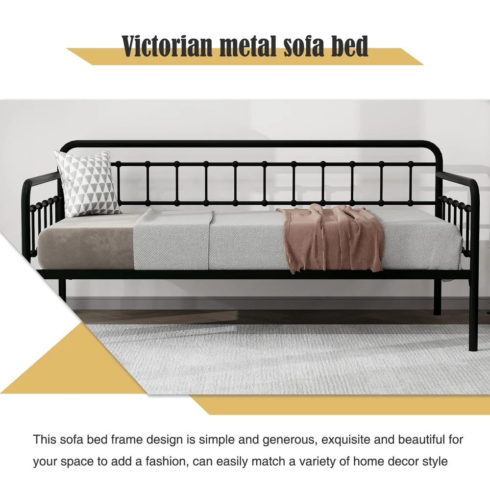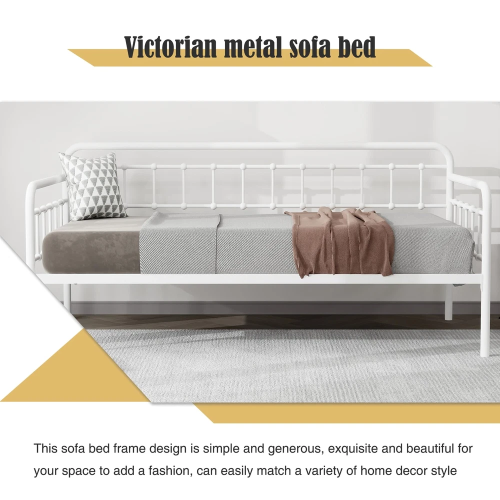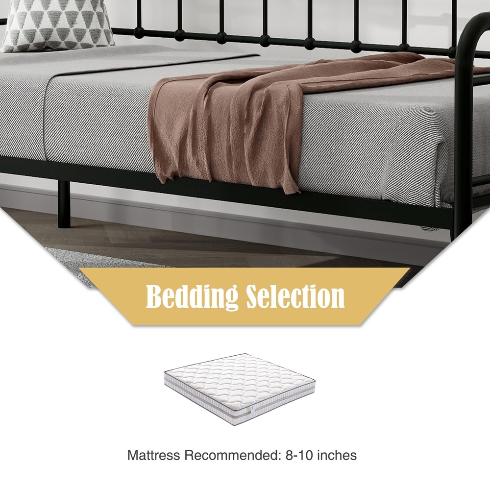 Heavy-Duty Steel Frame:Sturdy Support for Daybed Accommodates Twin Size Mattress