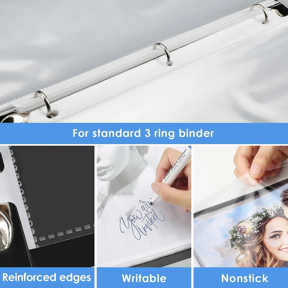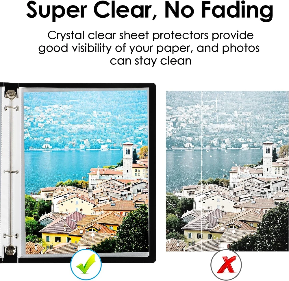 Heavyweight 3 Mil and Durable: Each sheet protector can hold 8.5 x 11 inches( letter size) sheet of paper, 3mil thickness, more durable than ordinary paper protectors. Top Loading: Easy top loading feature on clear sheet protectors provides a wider top opening, so paper is easy to slide in and take out. Transparent: Reinforced holes on the plastic sheets for three-ring binder, clear design offers complete transparency for easy viewing. Excellent Material: Made of high quality polypropylene, it is the excellent plastic paper sleeves for binders. Wide Application: Paper protector is ideal for keeping recipes, photos, important documents, certificates. Page protector keeps them from the wear and tear. Product Description KTRIO Clear Sheet Protector Series Add to Cart Add to Cart Add to Cart Add to Cart Add to Cart Add to Cart Add to Cart Customer Reviews 4.7 out of 5 stars 1,143 4.7 out of 5 stars 31,773 4.6 out of 5 stars 2,171 4.7 out of 5 stars 4,067 4.6 out of 5 stars 957 4.6 out of 5 stars 1,053 4.7 out of 5 stars 622 Price $5.99 $ 5 . 99 $5.99 $ 5 . 99 $5.64 $ 5 . 64 $12.88 $ 12 . 88 $25.99 $ 25 . 99 $5.49 $ 5 . 49 $6.99 $ 6 . 99 Features Storage photos, documents Storage photos, documents Non-glare, storage paper Storage photos, documents Storage photos, documents Classify documents Storage playbill, paper Color Clear Clear Clear Clear Clear Clear pocket & Colored tabs Clear Size 8.5 x 11 inch 8.5 x 11 inch 8.5 x 11 inch 8.5 x 11 inch 8.5 x 11 inch 8.5 x 11 inch 5.5 x 8.5 inch Material Durable PP Material Durable PP Material Durable PP Material Durable PP Material Durable PP Material Durable PP Material Durable PP Material Package 30 Pack 50 Pack 50 Pack 200 Pack 500 Pack 2 Sets 60 Pack