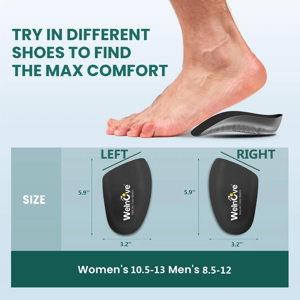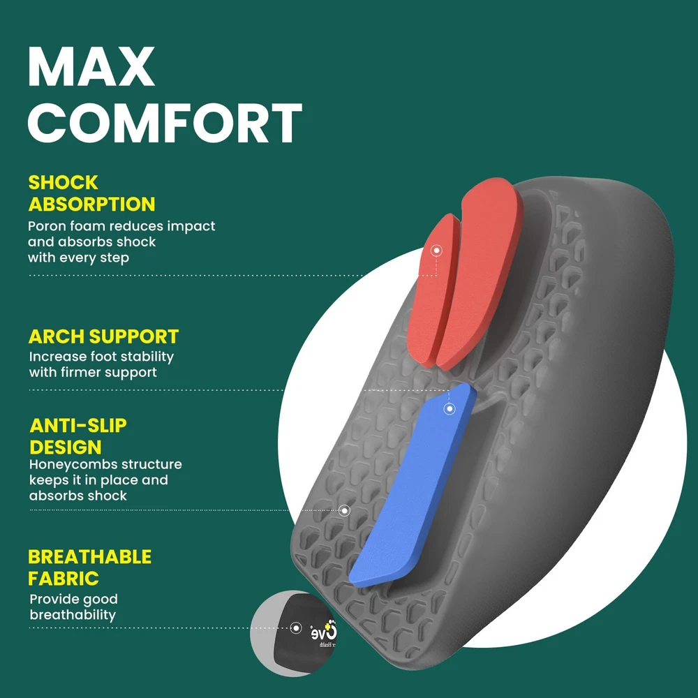 INSTANT RELIEF - Looking for a way to get rid of those pesky foot pains and discomforts? Look no further than our high-quality heel cushion inserts cups! Our specially designed gel heel spur inserts are the perfect solution for anyone suffering from heel pain, plantar fasciitis, flat feet, heel spurs, bone spurs, Achilles tendonitis, and other foot problems. With our shock-absorbing heel inserts, you can enjoy instant relief from discomfort and get back to your daily routine without missing a beat. MAX COMFORT - shoe inserts for plantar fasciitis also offer maximum comfort throughout the day thanks to our unique design featuring soft gel and premium poron foam. The ultra-cushioning for the heel and arch ensures that you are getting the support you need to stay comfortable all day long. Additionally, our gel heel inserts gradually improve your condition by applying therapeutic acupressure to your heel, reducing pain in an all-natural way. ANTI-SLIP - Our plantar fasciitis insoles are also anti-slip, thanks to the honeycomb design that ensures the gel heel inserts stay firmly in place. The carefully crafted design not only ensures that the inserts stay put, but also adds an extra layer of comfort and support to your feet, making it easier to get through the day without any discomfort. DURABLE - Made from premium, durable materials, our plantar fasciitis heel inserts are perfect for long-term daily use in all occasions. Especially for those who stand for long periods of time, our inserts provide the support and cushioning you need to stay comfortable and pain-free. VERSATILE - Our gel heel cups for heel pain are also versatile and easy to use. The heel cushion cups can be switched from shoe to shoe, ensuring that you always have the support you need, no matter what type of shoe you are wearing. The large size fits women’s 10.5-13 and men’s 8.5-12, making them the perfect solution for anyone looking for instant relief from foot pain and discomfort.