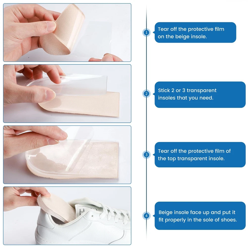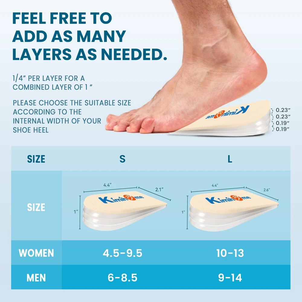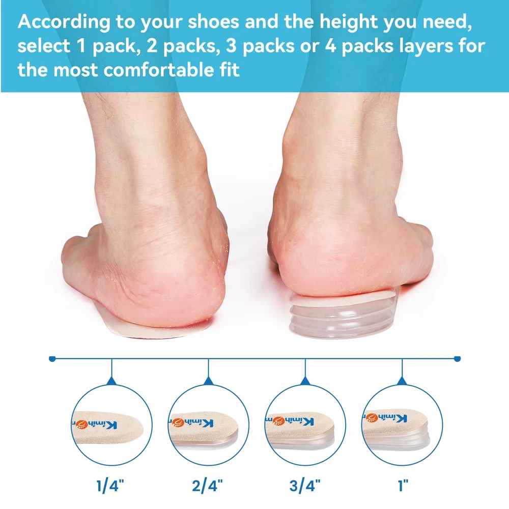 Heel Lift Inserts for Women Shoes - Adjustable Gel Shoe Heels Insert Wedge for Women Uneven Legs Leg Length Discrepancies Adjustable Heel Lifts - Our shoe lifts offer adjustable designs to effectively address leg length discrepancy, ensuring a balanced gait and improved posture. Tailored to individual needs, the heel inserts provide a comfortable walking experience.It is an affordable alternative to expensive item. Premium Materials for Optimal Comfort - Crafted from high-quality soft silicone and breathable fabric, our heel lifts offer superior comfort and support. The gel heel lift cushions the feet, relieves pain caused by heel spurs and sports injuries. Helpful for achilles tendonitis,plantar fasciitis and uneven Legs, while the fabric keeps feet dry and comfortable. Customizable Elevation - Our Height Increase Insoles allow you to customize the elevation to suit your preferences. Whether for subtle or significant height increases, they provide the perfect amount of elevation for any occasion. Secure Fit with High-Grip Gel - Our heel lifts feature the self-adhesive gel that prevents moving in shoes, and don’t cause crowding, ensuring a secure and stable fit. They fit well in high heel shoes, dress shoes, boots, sports shoes, canvas shoes, sandals, sneakers and other shoes. Risk-Free Purchase: We stand behind the quality and performance of our heel lifts with a risk-free purchase , Our commitment to exceptional ensures that you can with confidence,try our heel lifts for transformative comfort and posture benefits!