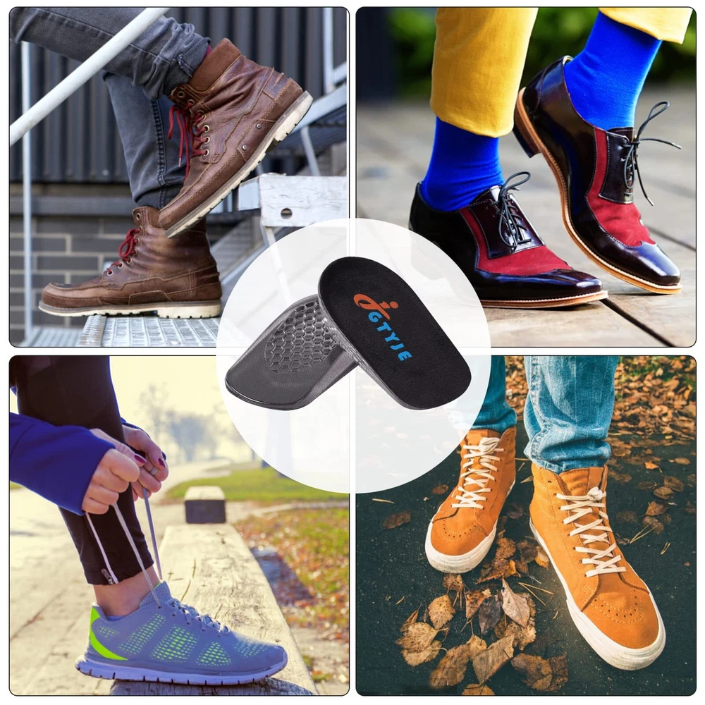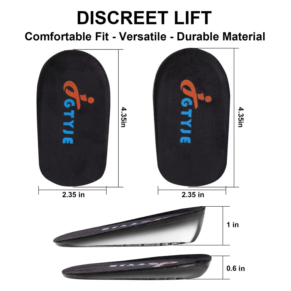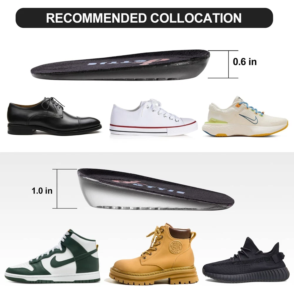 Invisible Design: The heel lifts for shoes with increased height is an invisible design, no one will know the secret of increasing height. It is very suitable for meetings, appointments, weddings, special events or any event with cameras. High Quality: Height increase insoles made of soft and durable medical grade gel material with sweat wicking function and non-slip top fabric for a fresh feeling and comfort when you’re in the car, walking, or on the go. Shock Absorption: The shoe lift inserts cellular Mesh design and high elastic silica gel are used to evenly distribute pressure and have shock absorption effect. This design is more stable, decompresses and prevents the insole from sliding around inside the shoe. Fits Most Shoes: These heel cushions inserts are available in 3 sizes for men and women and fit most types of shoes, such as running shoes, formal shoes, boots, sneakers, work shoes, etc. Choose from 1.5cm, 2.5cm or 3.5cm depending on your shoes and desired height for the most comfortable fit. After-sales Service:If not completely satisfied with our heel pads, you will get or by emailing us,no question asked.