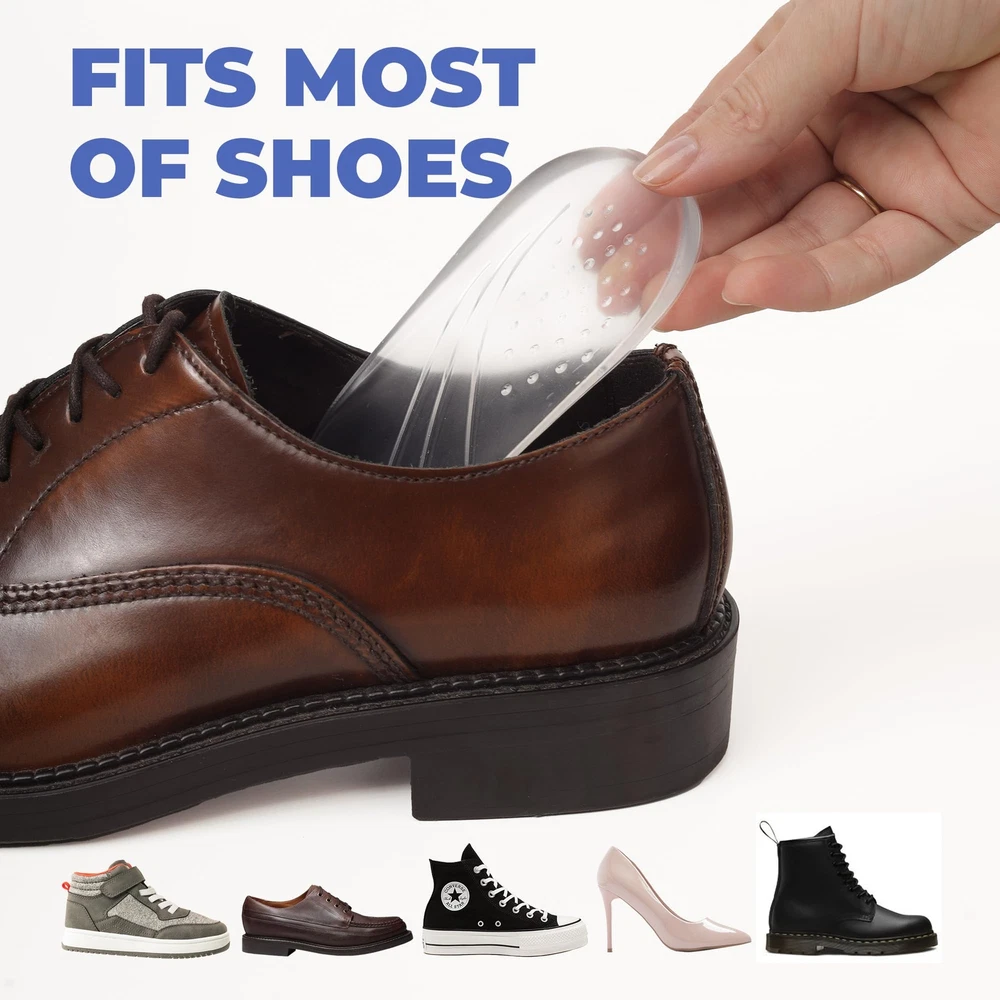 Pain Relief & Posture Correction: These adjustable heel wedge inserts provide targeted support to relieve knee pain and improve foot alignment, ideal for conditions like bow legs, knock knees, and overpronation Ergonomic Heel Support: Designed to fit the natural curvature of your heel, these insoles offer stable support that wraps around your heel, reducing fatigue and discomfort from prolonged standing or walking Customizable Layering: Includes three layers – a 0.45" top layer and two 0.2" layers – to let you customize the height and support level. Add or remove layers to achieve the perfect alignment and comfort Durable & Adhesive Design: Made with quality materials, each layer adheres securely to stay in place, offering a stable solution for daily use Complete Set for Alignment Correction: Comes with a pair of adjustable orthopedic heel wedges, suitable for both medial and lateral adjustments to support healthy posture and balanced walking