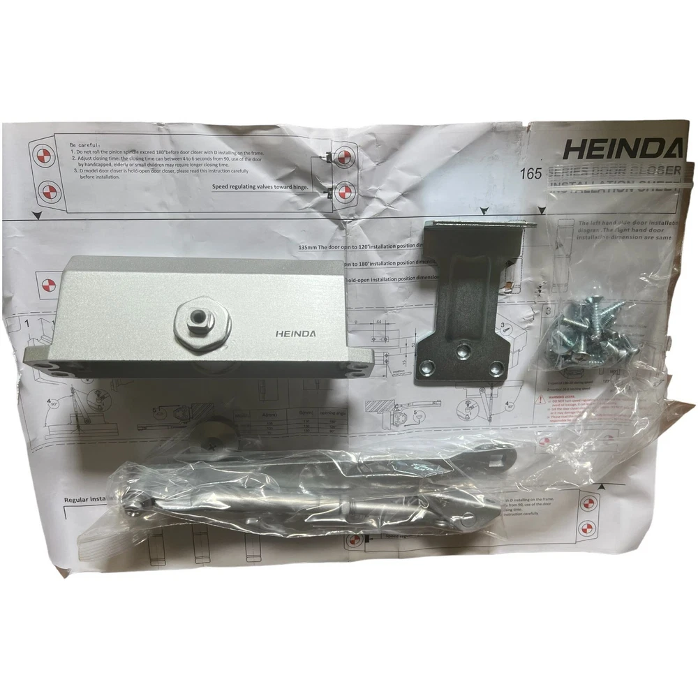 The Heinda 165 Series Door Closer: Upgrade the functionality and safety of your aluminum doors with the Heinda 165 Series Door Closer. This overhead door closer is engineered to provide smooth and controlled closing for a wide range of aluminum doors, enhancing security and convenience. Key Features: Advanced Control: The Heinda 165 Series Door Closer ensures controlled and gradual closing of aluminum doors, preventing abrupt slamming and potential damage to the door or frame. Universal Compatibility: Designed for aluminum doors, this closer is versatile and suitable for various door configurations, making it an ideal choice for commercial and residential settings. Durability: Crafted with high-quality materials, the Heinda 165 Series Door Closer is built to withstand regular use and provide long-lasting performance, reducing the need for frequent replacements. Adjustable Closing Speed: Tailor the closing speed to your preference using the adjustable closing speed feature. This allows for customization based on door size and usage frequency. Sleek Aesthetics: With its sleek and unobtrusive design, this door closer seamlessly integrates with the overall aesthetics of aluminum doors, preserving the visual appeal of your space. Easy Installation: The Heinda 165 Series Door Closer comes with easy-to-follow installation instructions and hardware, making the setup process hassle-free. Elevate the functionality and safety of your aluminum doors with the Heinda 165 Series Door Closer. Enjoy controlled and secure door closing, enhanced aesthetics, and a durable solution that meets the demands of everyday use. Whether for commercial or residential applications, this door closer is designed to deliver reliable performance and peace of mind.