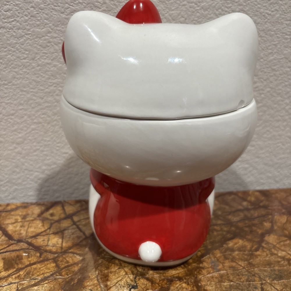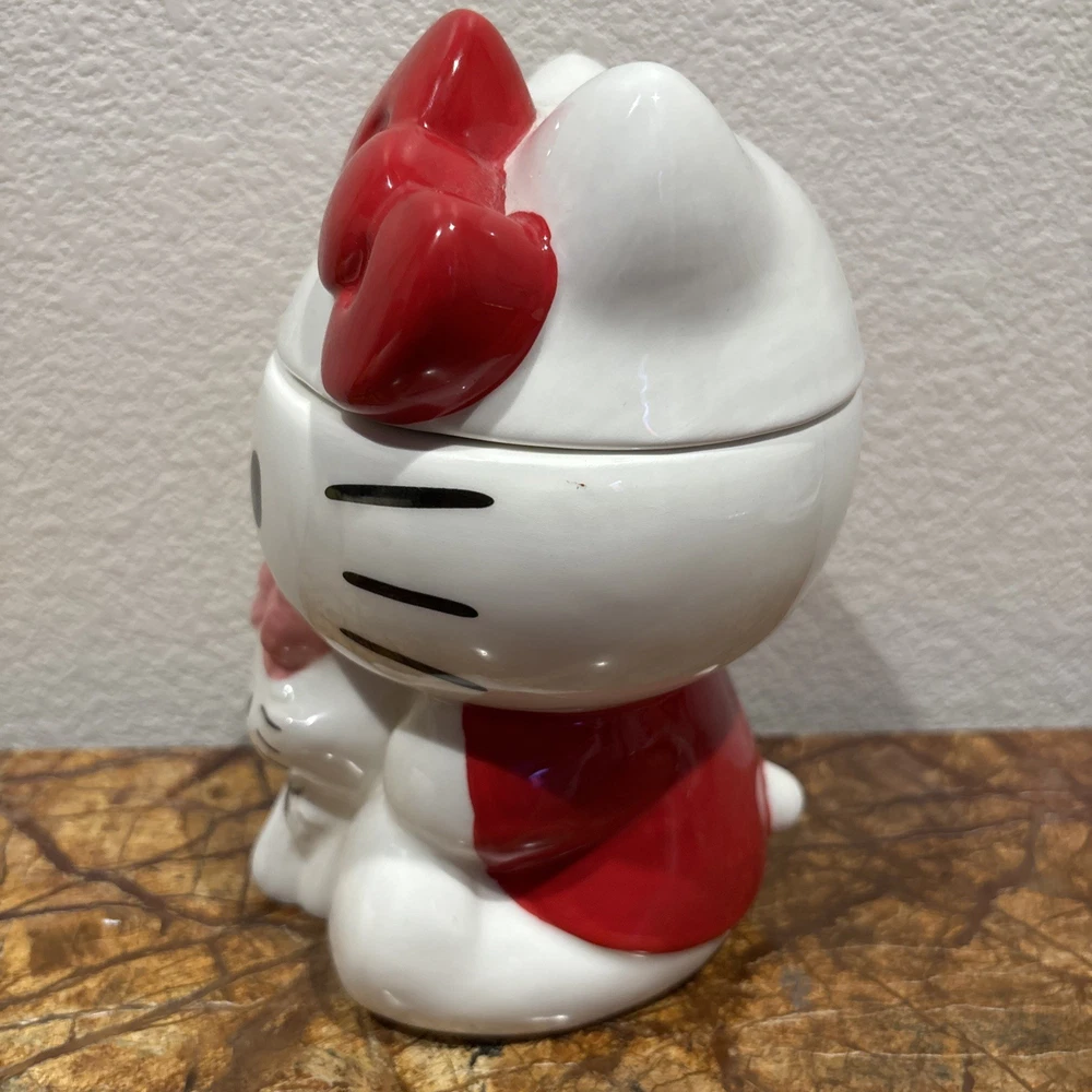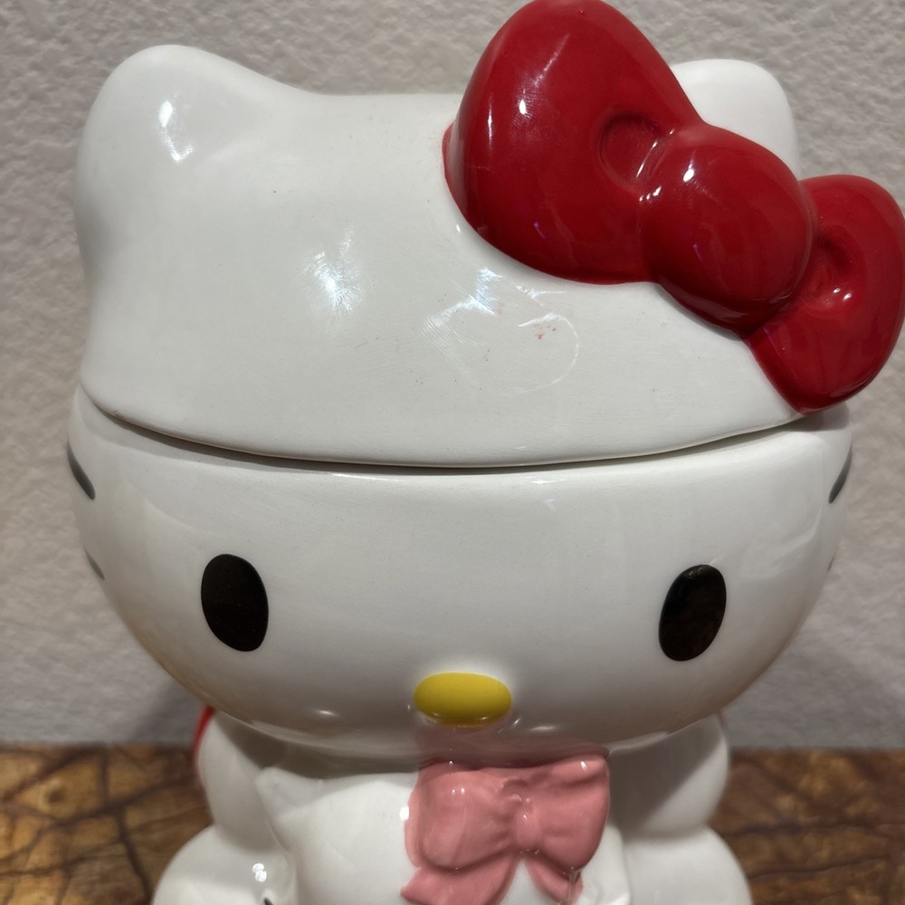 Number of Items in Set:1Handmade:NoNumber of Jars Included:1Item Length:5”Shape:CartoonsItem Height:8”Number of Compartments:1Brand:Hello KittyAntique:NoSize:MediumNumber in Pack:1Item Width:7”Color:White/RedSet Includes:LidFeatures:With LidVintage:NoMounting:Free StandingCountry of Origin:ChinaFranchise:Hello KittyTime Period Manufactured:2024Style:ModernCharacter:Hello KittyOriginal/Licensed Reproduction:OriginalType:Cookie JarDepartment:AdultMaterial:Ceramic & PorcelainLid Type:Place On