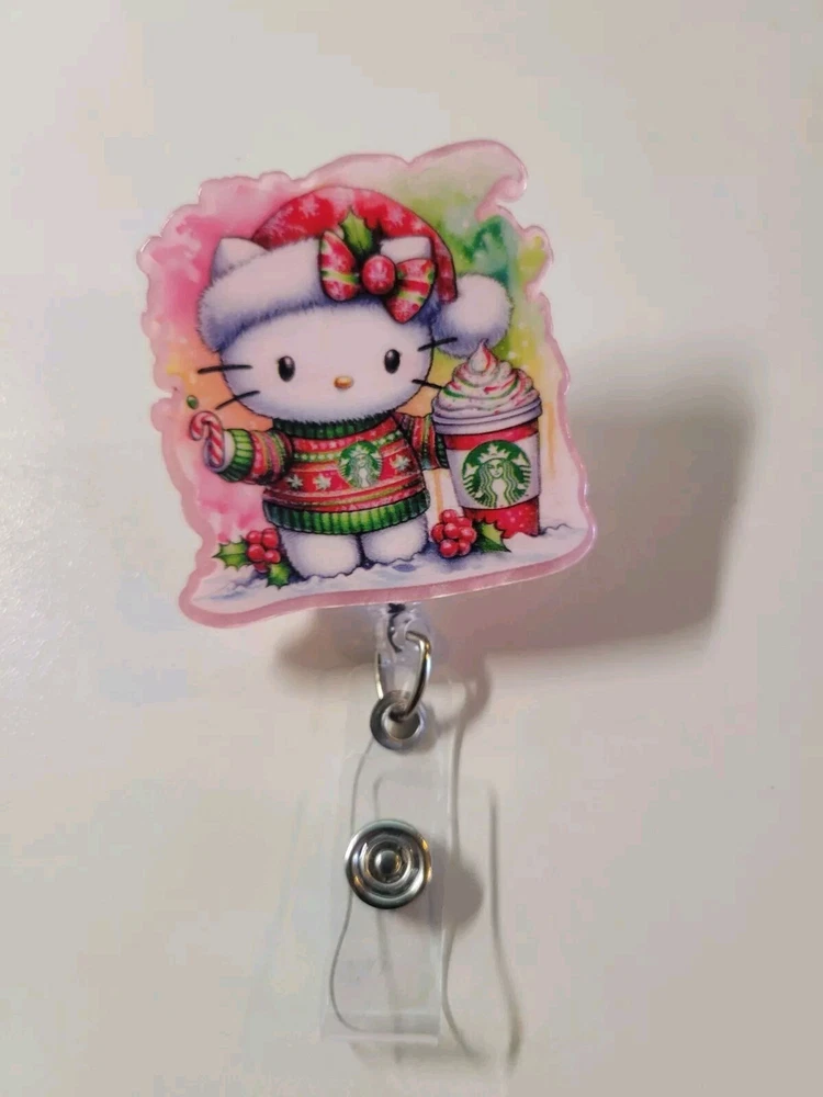 Hello Kitty Starbucks Coffee Retractable Badge Reel